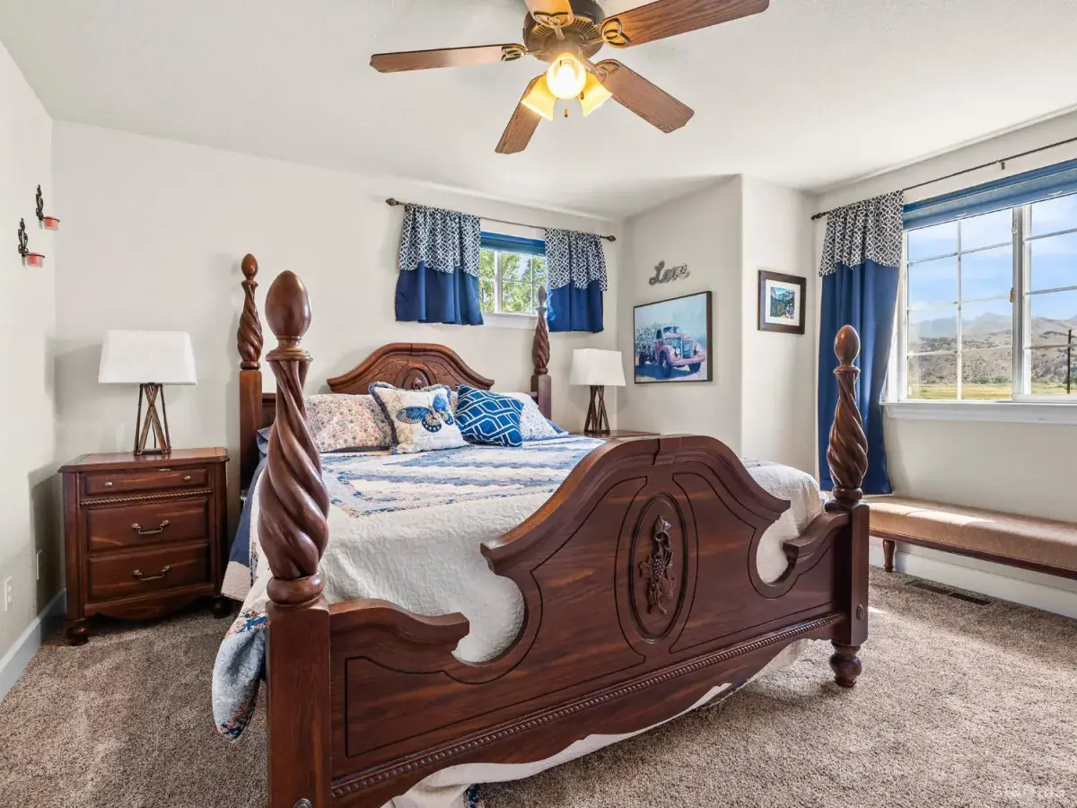 Welcome to your private paradise in the serene center of Antelope Valley. This stunning farmhouse is situated on a private 5 acres; offering breathtaking panoramic mountain & valley views, and the comfortable living of a meticulously maintained home. Just moments from the West fork of the Walker River, this property is located in a prime community for those seeking rural, agricultural, or charming country living – with ease of access to Highway 395, Grocery Stores within 35 minutes, and proximity to the best of nature’s amenities. This spectacular home features 4 sizable bedrooms, 2.5 bathrooms- with a spacious and functional layout throughout. The large kitchen boasts custom cabinetry, stainless steel appliances, a large pantry with bonus appliance storage, and gorgeous granite countertops. The living area is exceptionally comfortable; where you’ll cozy up next to dual fireplaces in the Winter, or admire the stunning valley views and feel the breeze through the French doors in the Summer. The lower level interior features the primary bedroom; complete with a tremendous ensuite bathroom, and adjoining bonus study – conveniently connected by the shared gas fireplace. Also showcasing a full laundry room, formal dining area, separate office, and additional downstairs bedroom. The upper level contains two additional bedrooms, a full bathroom, an added loft area, and a large bonus storage room not included in the square footage of this home. This property offers a beautifully landscaped yard with lush lawn and mature trees, gated front entrance, an oversized 2 car garage, and ample space to add a barn, arenas, agricultural, gardens, workshops, or more! The wrap-around porch is an ideal spot for entertaining guests, and makes for the perfect place to enjoy the surrounding majestic views of the Eastern Sierra Mountains & Sweetwater Mountain Range. This valley offers proximity to nearby hiking trails, fishing the Walker River, World Class Skiing of Lake Tahoe & Mammoth, Yosemite National Park, Boating at Topaz Lake, & enjoying the culture of downtown Gardnerville! This parcel includes 5 acres of water right shares for irrigation, perfect to start your very own hobby farm. This beautiful farmhouse offers nothing but peaceful country living. Don’t miss your opportunity to own this stunning Coleville home.