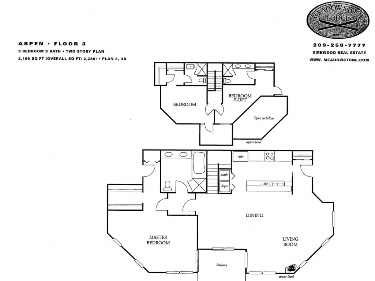 Meadow Stone Lodge is a distinguished community of 33 luxurious residences at the base of Kirkwood Ski Resort, nestled adjacent to the protected Kirkwood meadow. The architecture, inspired by the Arts & Crafts movement and designed by The Babcock Design Studios, combines rugged elegance with rustic charm. Expansive use of stone and heavy timber showcases exceptional craftsmanship and the superior quality of concrete and steel construction. It is just steps to the Cornice Express and to the meadow’s cross-country and snowshoe trails for all the skiing your heart desires!This spacious 4-bedroom, 3 and 1/2 bath residence, comfortably sleeps 10 guests. Decorated with mountain-style charm, the home exudes warmth and a true alpine feel. The chef’s kitchen boasts granite slab countertops and stainless-steel appliances, and a long granite bar counter, ideal for entertaining after a day of skiing or hiking. Large divided-light windows and two private balconies – one at the living and master level, the other at the upper bedroom level – with log railings offer a refreshing cross-breeze and spectacular views. Peek through your living room window for a glimpse of the chairlifts and swift access to the mountain. Enjoy a spacious living area and adjoining master suite while guests and children rest, sleep or play in the three upstairs bedrooms. The river-rock fireplace with log mantle and the tucked away boot bench and hooks for hanging wet parkas is the finishing touch for your delightful ski-home-away-from-home. Meadow Stone Lodge #312 is one of only two condominiums at the top of the Aspen building. The experience is private and residential. At the ground level of the same building, enjoy an exclusive Owner’s Club with fitness center, sauna, and lounge with a kitchen and a media/game center. The building is all concrete for superior quality and soundproofing. Property is sold furnished and turn-key and has been meticulously well maintained. One assigned underground parking space in the Larkspur building with overflow parking at the street level of the Aspen building.Enjoy access to the near-by Kirkwood Recreation Center and Owner’s Club (KCA) with outdoor pool and Jacuzzis, and indoor sauna, steam, fitness center, massage services, bar and lounge. HOA dues include the KCA monthly as well. It is customary for the buyer to pay the 3% of purchase price real estate transfer fee to the KCA.