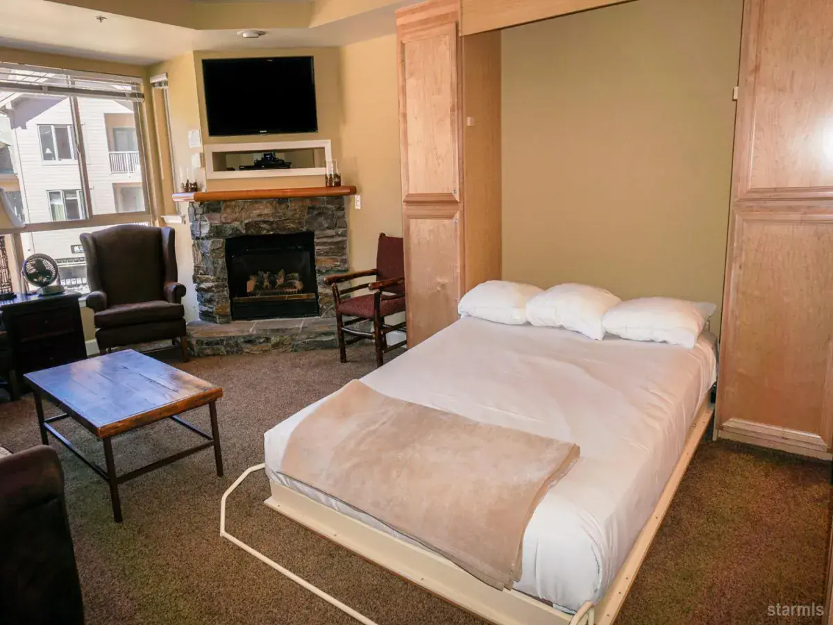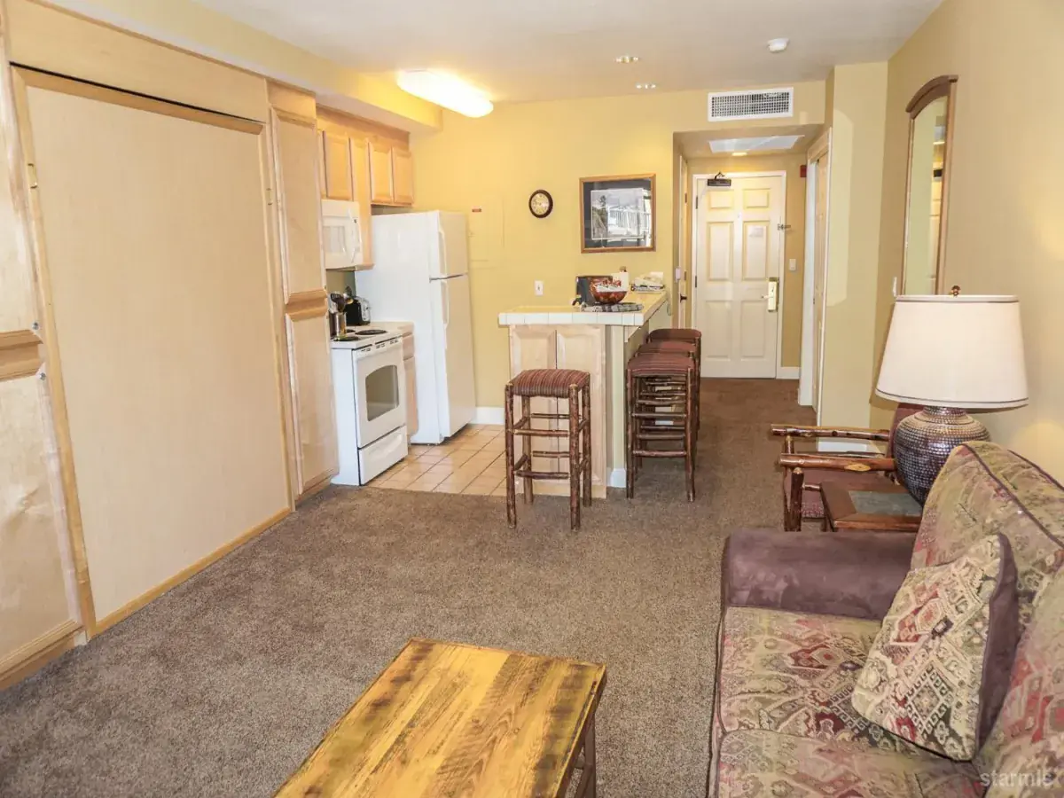 True Ski-In/Ski-Out Studio in the Heart of KirkwoodDoor 224 – 1/4th share – II. Own a prime piece of Kirkwood with this true ski-in/ski-out 1/4 timeshare, fee-simple ownership, offering 13 weeks per year and resort-class amenities. Maximize your value with this low cost unit by invoking the Space Available option when the building is less occupied to enjoy Kirkwood on your off weeks!Located in the ultimate central spot, this property is just steps from 5 chair lifts and the Village Plaza, with intimate views of Kirkwood’s vibrant core. This fully furnished, Studio sleeps up to 4 guests, featuring a Queen Murphy bed and a sofa sleeper. The Mountain Club amenities include a fitness room, hot tub and sauna, and laundry facilities on each floor for added convenience. Utilities, maintenance, and building insurance are all included in the dues. As a quarter-share owner, you’ll have access to your own parking space in the underground garage, plus a during-stay 1st floor locker and permanent garage locker for personal belongings within the building.Additionally, an optional membership with Interval International provides access to worldwide vacation exchanges. Kirkwood Community Association (KCA) Membership offers exclusive access to pool-side activities, hot tubs, fitness equipment, steam & sauna rooms, and private events. It’s customary for buyers to pay a 3% RETF fee for KCA membership.Ask about space available and maximize your time in Kirkwood during periods when the building has lower occupancy! Come for the winter fun, stay for the summer retreat! Every 4 years, you get the two weeks over Christmas break! Experience the best of Kirkwood with this turnkey, hassle-free ownership opportunity!Photos shown are of a similar adjacent unit.