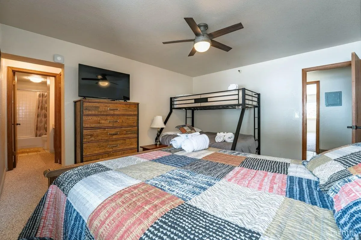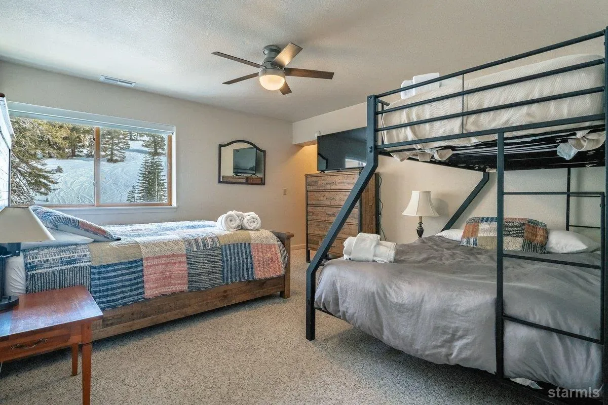 Two bedroom ski in ski out condo on the 4th floor with sweeping, unobstructed views of Kirkwood. And on the south side too where you can bask in abundant sun and full-on mountain views after an exhilarating day on the slopes. Very close to Chair 1 which then takes you to front side or the back side lifts. And right out the main entrance are numerous summer hiking and mountain biking trailsThe spacious living area has its own full bath, dining area, bar counter, fireplace, balcony and Murphy bed. And each bedroom has its own bath and is furnished to sleep 5 people. Thus, the entire condo can sleep up to 12 people. A great way for two families to enjoy an economical ski condo. In addition, there are only two condos on each floor of Whiskey Towers, creating an ambiance of residential privacy.If renting your condo is your preference, it’s easy to rent as is, or you can turn the condo into three active rental with just three new locks. You can easily create two private lockout bedrooms, plus a living room/kitchen lockout studio. This gives you three independent, rentable or owner-use spaces all under one roof. Host friends and family without sacrificing personal space or enjoy a hybrid retreat with income flexibility during different seasons.Enjoy access to the near-by Kirkwood Recreation Center and Owner’s Club (KCA) with outdoor pool and Jacuzzis, and indoor sauna, steam, fitness center, massage services, bar and lounge. (It is customary for the buyer to pay the 3% real estate transfer fee to the KCA.) And during the winter, the large common deck with the next door 7800 Bar and Grill, is a great way to meet your neighbors, or simply enjoy some music, sun and views. Life is pretty magical on the 4th floor at 7,800 feet – come check it out!