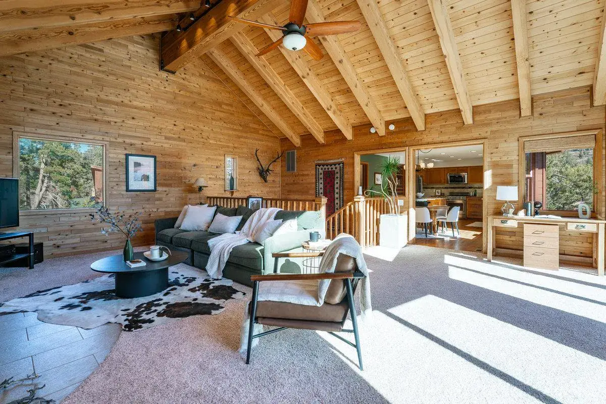 Meadow-Front Kirkwood Chalet Walk to Lifts, Wide-Open Views. Abundant open space surrounds this unique and unmatched listing. Set on level ground at the edge of the meadow with sweeping mountain vistas, this standalone cabin pairs a prime, quiet-street location with thoughtful updates throughout. Southern exposure warms the great room and sun deck, cross-country trails start outside the door, and it’s an easy walk (or quick shuttle) to Timber Creek, followed by a short downhill stroll home. Approximately 2,100 sq. ft., the home features a vaulted great room with exposed beams and a cedar ceiling, a fully remodeled kitchen (Dacor/Bosch/Electrolux) with granite and natural stone surfaces, shaker cabinetry, and wood floors, and remodeled baths with granite and travertine, including motion-activated, under-lit vanity cabinets. Three bedrooms are located on the entry level, including a spacious, remodeled primary suite with a cedar-lined walk-in closet, window seat, and thermostatically controlled propane stove. The home sleeps up to ten, with two queen bedrooms, a triple-bunk room, and a quality pull-out sofa in the great room. Additional features include a mudroom with bench and closet, a dedicated ski closet and boot holders, and an unfinished basement/workshop area with power and lighting. Recent updates include a new metal roof, new slider and fixed windows opening to the sunny deck, a new water heater, new light fixtures, like-new carpet, and oak hardwood flooring. Two new free-standing propane stovesone in the living room and one in the primary suiteprovide efficient, cozy heat. The property also includes fire-wise crawl-space vents, original construction plans, and an outdoor Level-2 EV charging outlet. The level lot sits on quiet Hawkweed Way, protected from day-visitor parking and resort bustle, with direct southern exposure for natural light and winter warmth. Green space adjacent to the home overlooks a meadow stream beneath big, starry night skies, with miles of groomed Nordic trails (including dog-friendly sections) right out front. From the front door, it’s a walk to the lifts or a quick shuttle to Timber Creek, followed by an easy downhill walk home. Each sunrise will delight and each sunset will soothe; the star-filled sky will astound, and the full-moon magic will enchant. Hiking, biking, fishing, and boating all await as the seasons turnit’s all yours, this home on a quiet cul-de-sac, at the hub of it all.