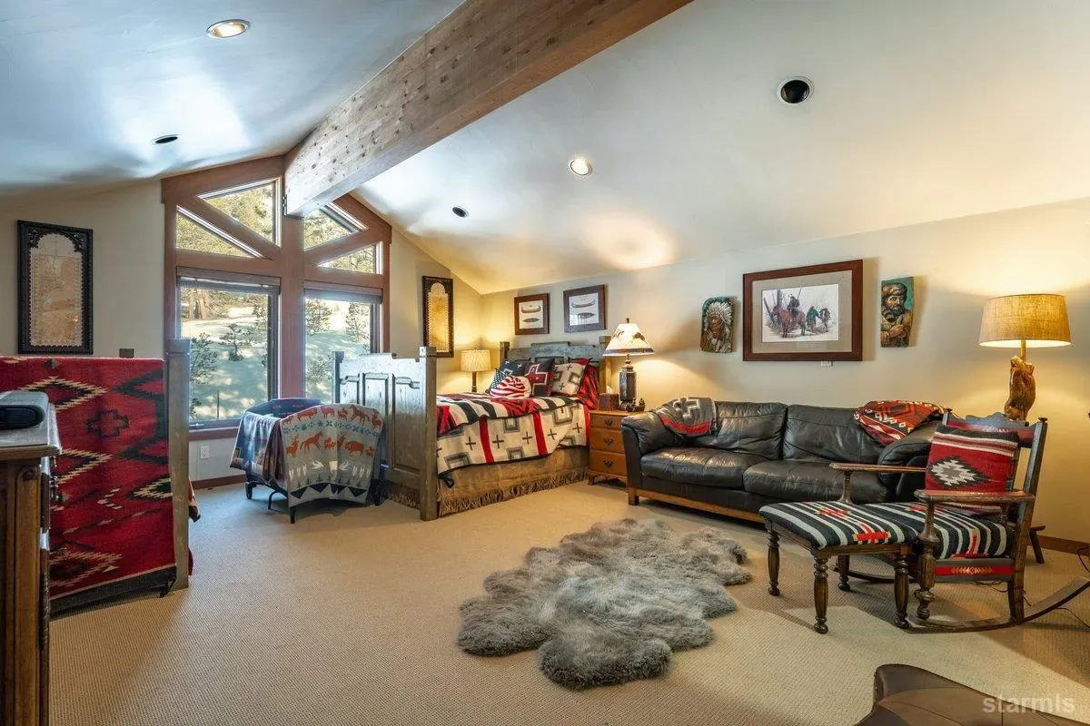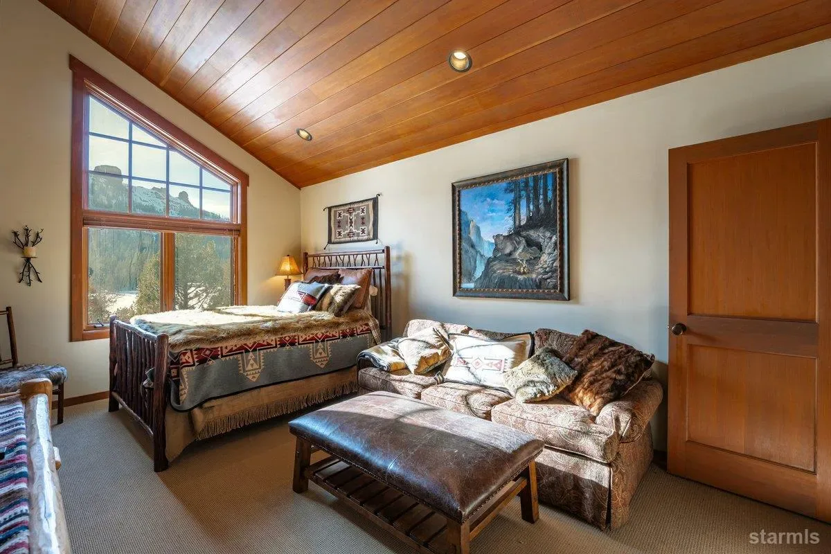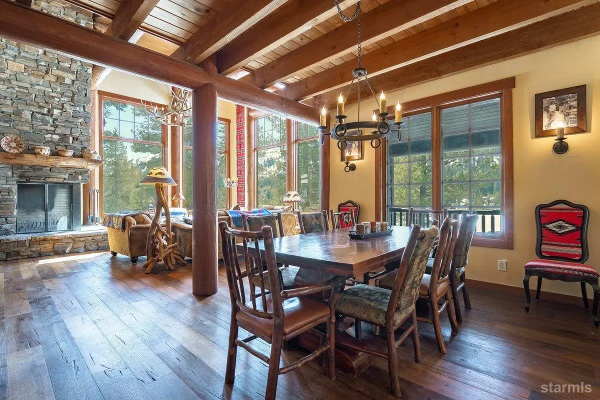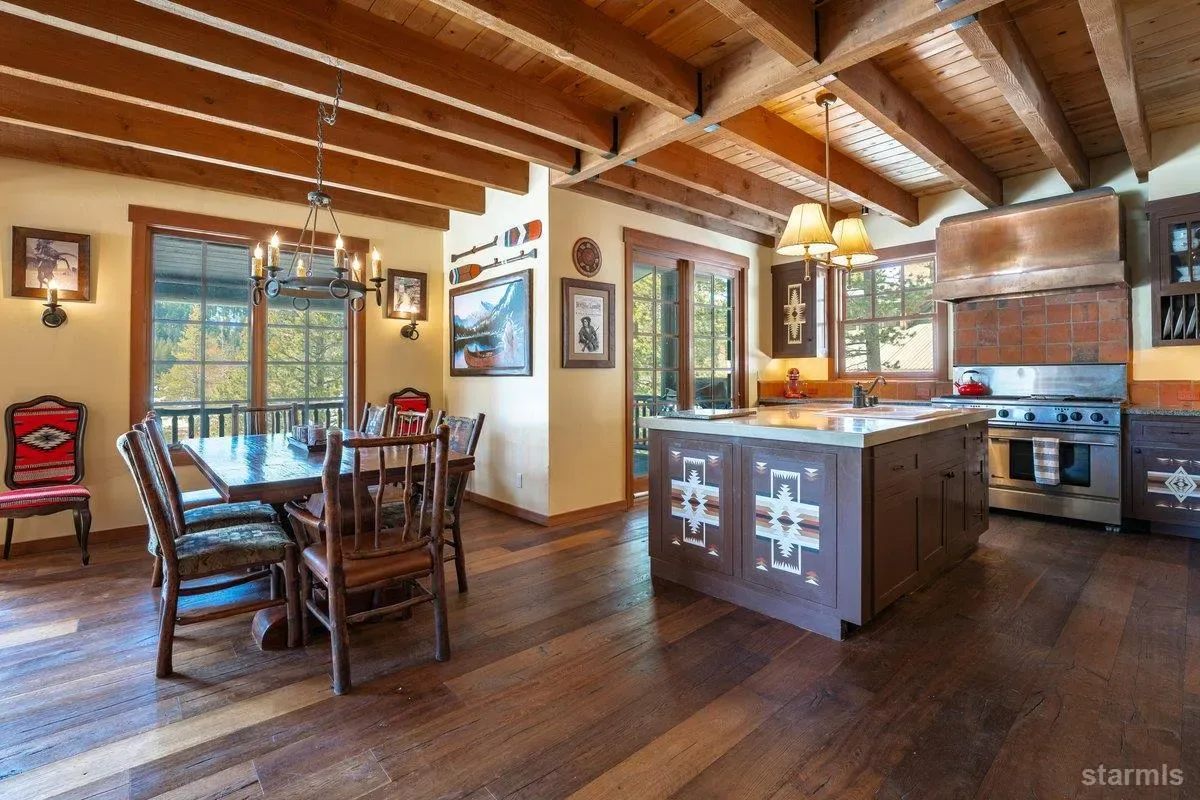 A timeless mountain home with a South Western flair! Bordering the meadow and in the heart of East Meadows, quiet solitude and open space beckon. In the summer, imagine walking out your front door onto the meadow for a late afternoon hike or heading a quarter mile east on a short single track trail to Caples Lake for hiking, fishing or swimming. In the winter, numerous cross country trails are also calling your name for walking, snowshoeing and cross country skiing. As well as, door-to-ski lifts shuttle bus service for a full day of adventure on the slopes.Then, after a long day on the slopes or in the forest, image relaxing in front of floor to ceiling windows, with sun pouring in over the mountains shouldered in snow or wildflowers. The wood fire crackles and warms as you eat and drink with friends and family. Or perhaps, a retreat into the master suite for a soak in your large tub with views, cozying up afterwards with a book by the master’s fireplace.The dining area joins the living space to the kitchen and the spaces evenly flow. Plenty of counter space for a group of chefs in the kitchen and bar stools for apres-ski or summer hors d’oeuvres. With four bedrooms, including a large upstairs second master suite, there is plenty of room for extended family and friends.Abundant storage throughout. Two fireplaces. Two-car garage. Two covered balconies. Charming entry way with bench for boot removal and coat rack. Quality craftsmanship throughout and sold fully furnished and decorated and with a fully supplied kitchen.