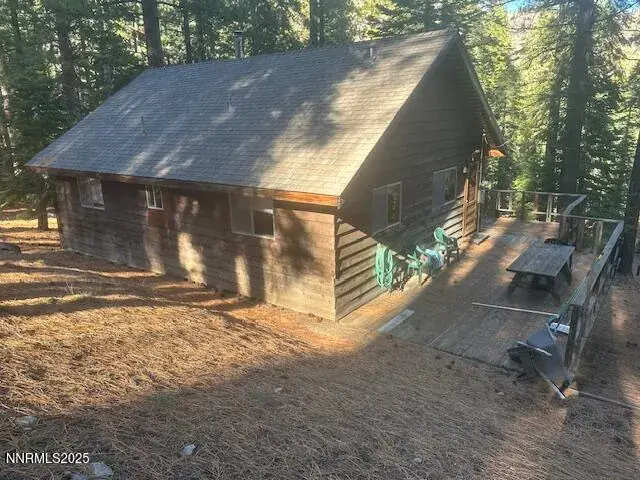 Charming cabin in the woods, backing onto forest service land! This cozy home offers an open, inviting great room layout with a warm wood stove, and a kitchen with plenty of storage and counter space. It has two nicely sized bedrooms and a bathroom with a walk-in shower. Outside, a deck provides the perfect spot to soak in the peace and serenity of the surroundings. Located in a “summer home” neighborhood, the community water system runs from late April or early May through October or November, depending on the weather. While you can enjoy the cabin year-round, it can’t be used as a full-time primary residence. In the off-season, you’ll need to bring your own water, and there’s no snow removal on Shay Creek Road in winter—but from the main road, it’s just a short snowshoe in. Only a quick walk to great fishing, scenic hiking trails, a waterfall, and Grover’s Hot Springs. Quaint downtown Markleeville is just a few miles away, offering restaurants and a general store, with Lake Tahoe, Carson Valley, and endless outdoor recreation nearby.