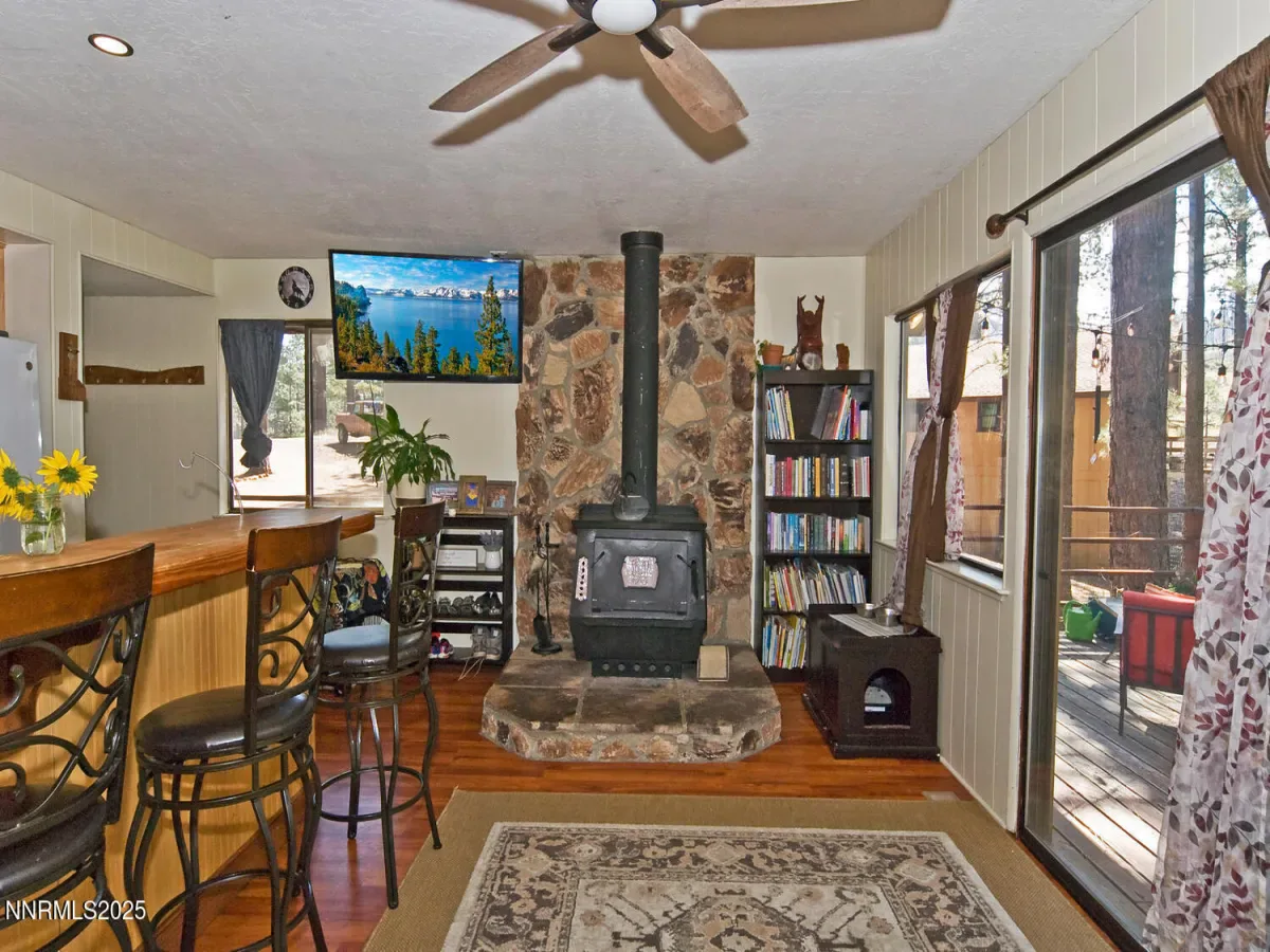 This cozy and comfortable, recently updated home would make the perfect second home getaway or full-time year-round residence. It has an open floor plan with an updated kitchen, dining area and living room all flowing together. There is a free-standing wood burning stove on a rock hearth and slider to an expansive back deck. It has two decent sized bedrooms and a full bathroom, as well as a 1 car garage. Step out onto the private deck to enjoy beautiful tall pines and a peaceful meandering seasonal creek below. This property backs to a large privately owned parcel with no homes behind, which gives you a true sense of privacy. Located almost at the end of Pleasant Valley Road, you are within a short walking distance to a beautiful hiking trail and fishing. This is a great central location with only a short drive to Grover Hot Springs, downtown Markleeville and incredible restaurants! There is an abundance of trout fishing lakes and rivers nearby and all essential amenities in the Carson Valley, NV. This home is also central to Lake Tahoe, ski resorts, golf courses and tons of BLM and Forest Service lands. This is an ideal location for the outdoor enthusiast!