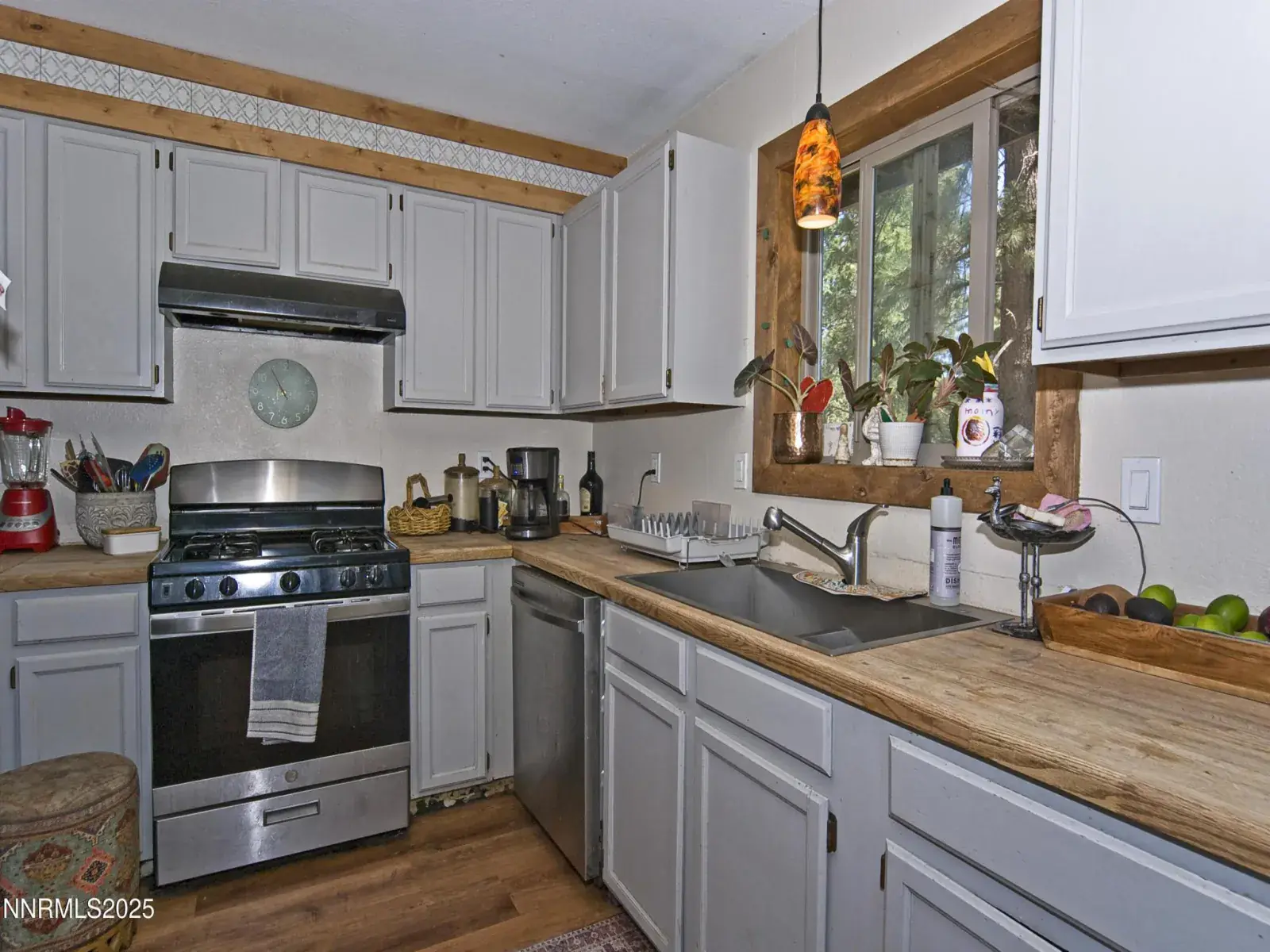 Nice home with many recent upgrades & a brand new roof! Located at the end of a short cul-de-sac, this home backs to a large privately owned parcel of land, with no houses behind, only beautiful forest. Kitchen, dining and living room are located on the main level & downstairs are 3 bedrooms and 2 bathrooms. The living room has a free-standing wood stove on a rock hearth. 1 car oversized garage. Underneath the driveway is a spacious storage area. Recent upgrades include: All new double pane windows, life-proof wood floors throughout, newer exterior and interior paint, butcher block countertops, on demand hot water heater, recent new sliding glass exterior doors, new toilets and vanities.