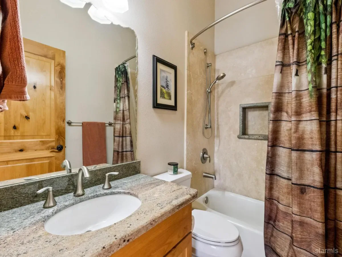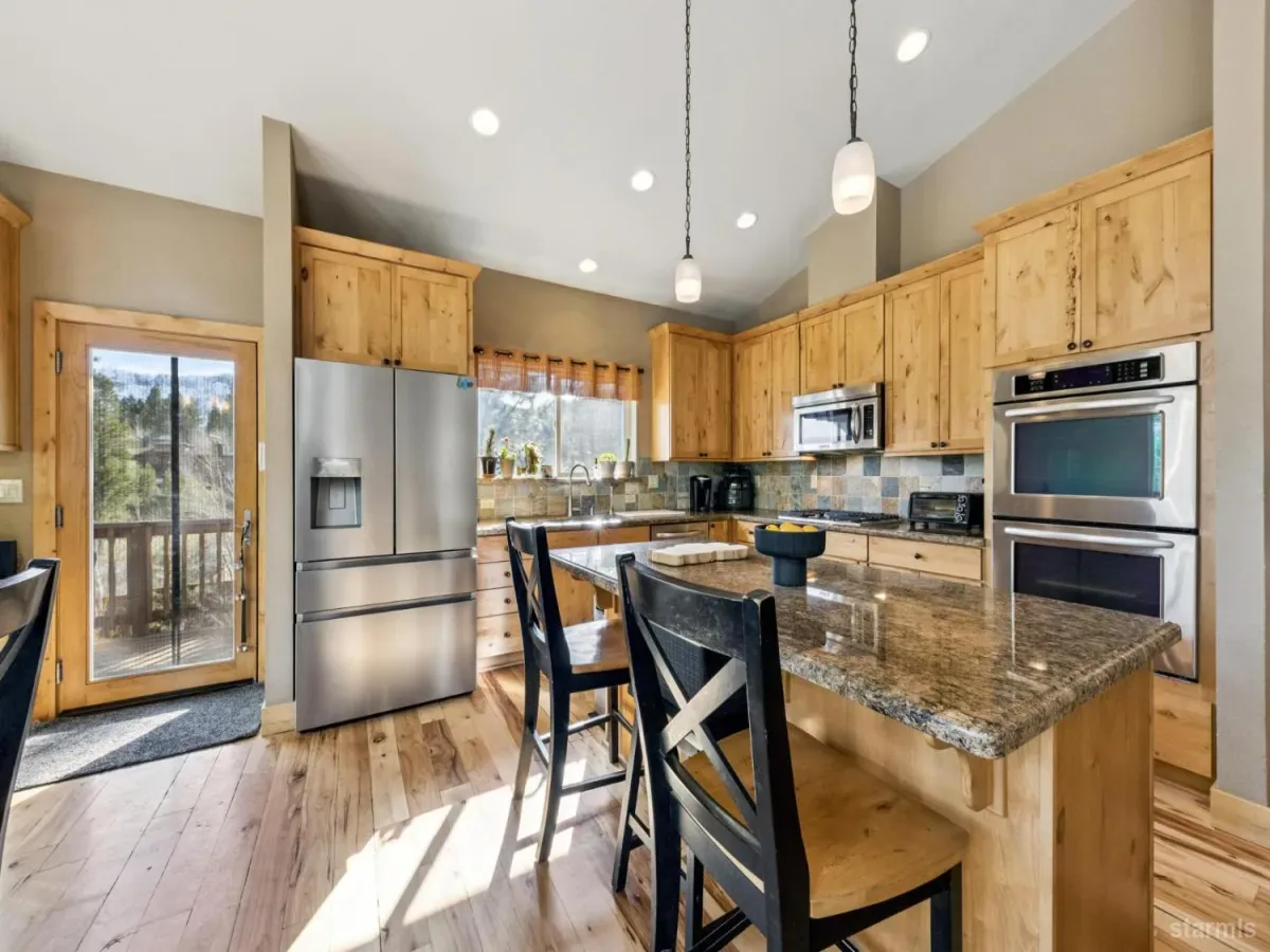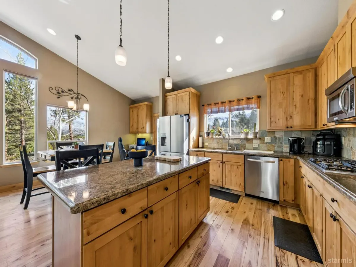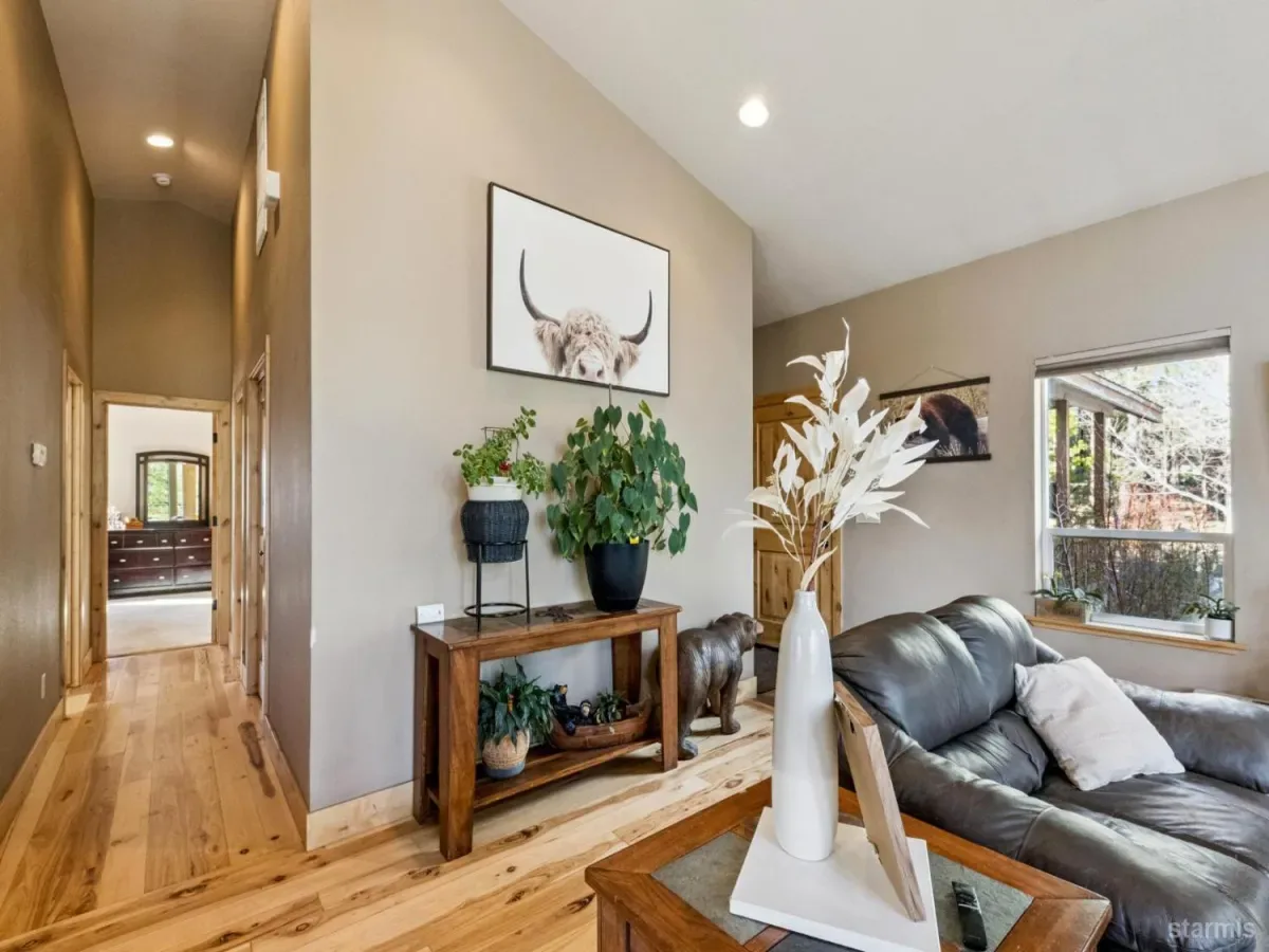 Located in the desirable neighborhood of Mountain View Estates, this Tahoe retreat blends natural surroundings with thoughtfully designed interiors, creating a home that feels both grounded and elevated. Inside, warm wood accents, generous windows and easy flowing layout invite the outdoors in. Amazing views and an abundance of sunlight give this home a cozy, warm feel. Entry level living with a secondary den downstairs accompanied by a private bedroom and half bath make this home perfect for hosting guests or multigenerational families. The kitchen is both functional and inviting, ready for everything from casual breakfasts to cozy evenings with friends and family. Enjoy watching the sunset over the mountains from your back deck after a day at the lake. The home also offers ample storage with an oversized garage and walk-in crawl space where you can keep bikes, kayaks, and just about anything. Whether you are looking for a full-time residence or a weekend getaway, this home delivers a lifestyle thats less about rushing and more about savoring -fresh air, quiet moments, and year round adventure right outside your door.