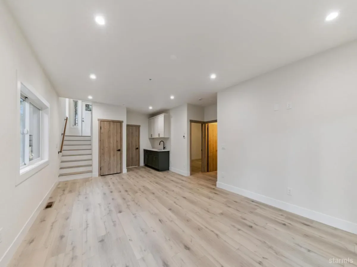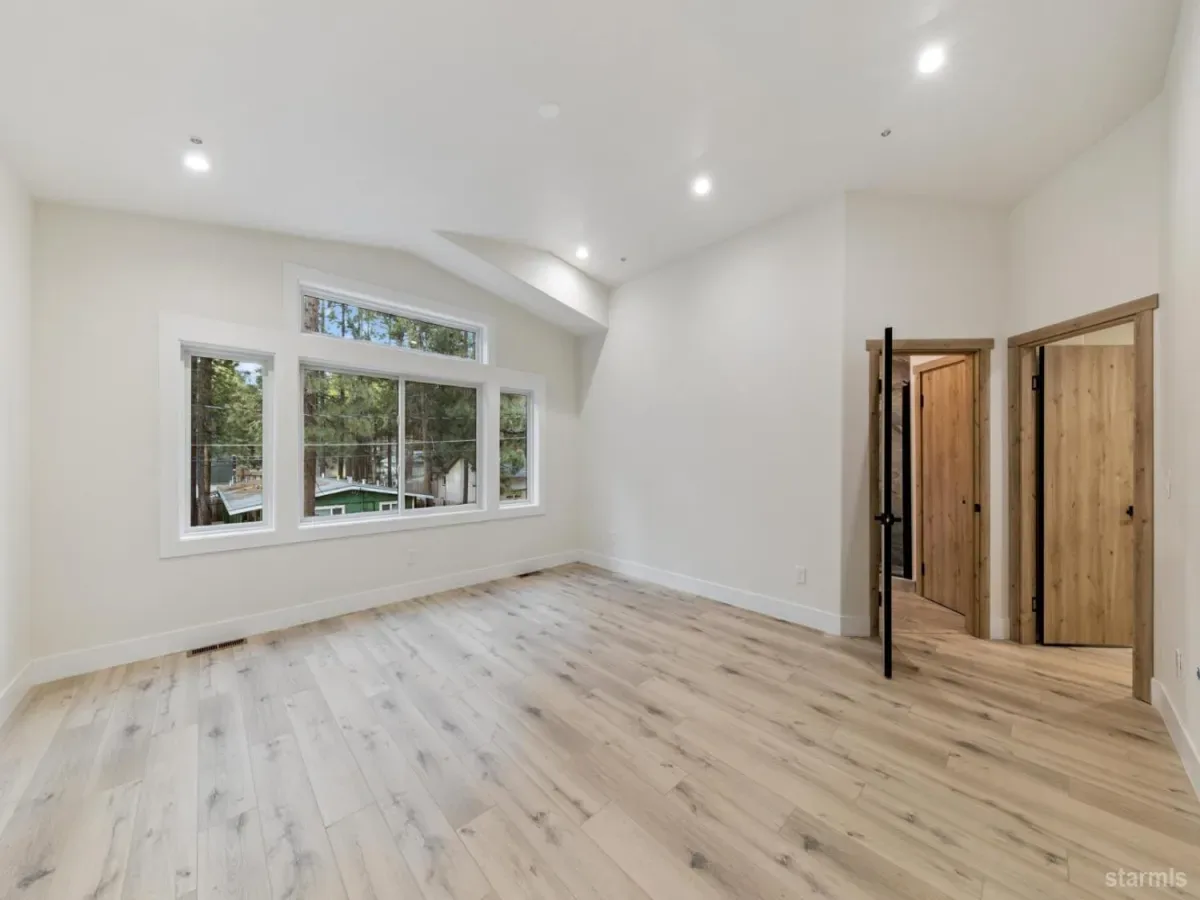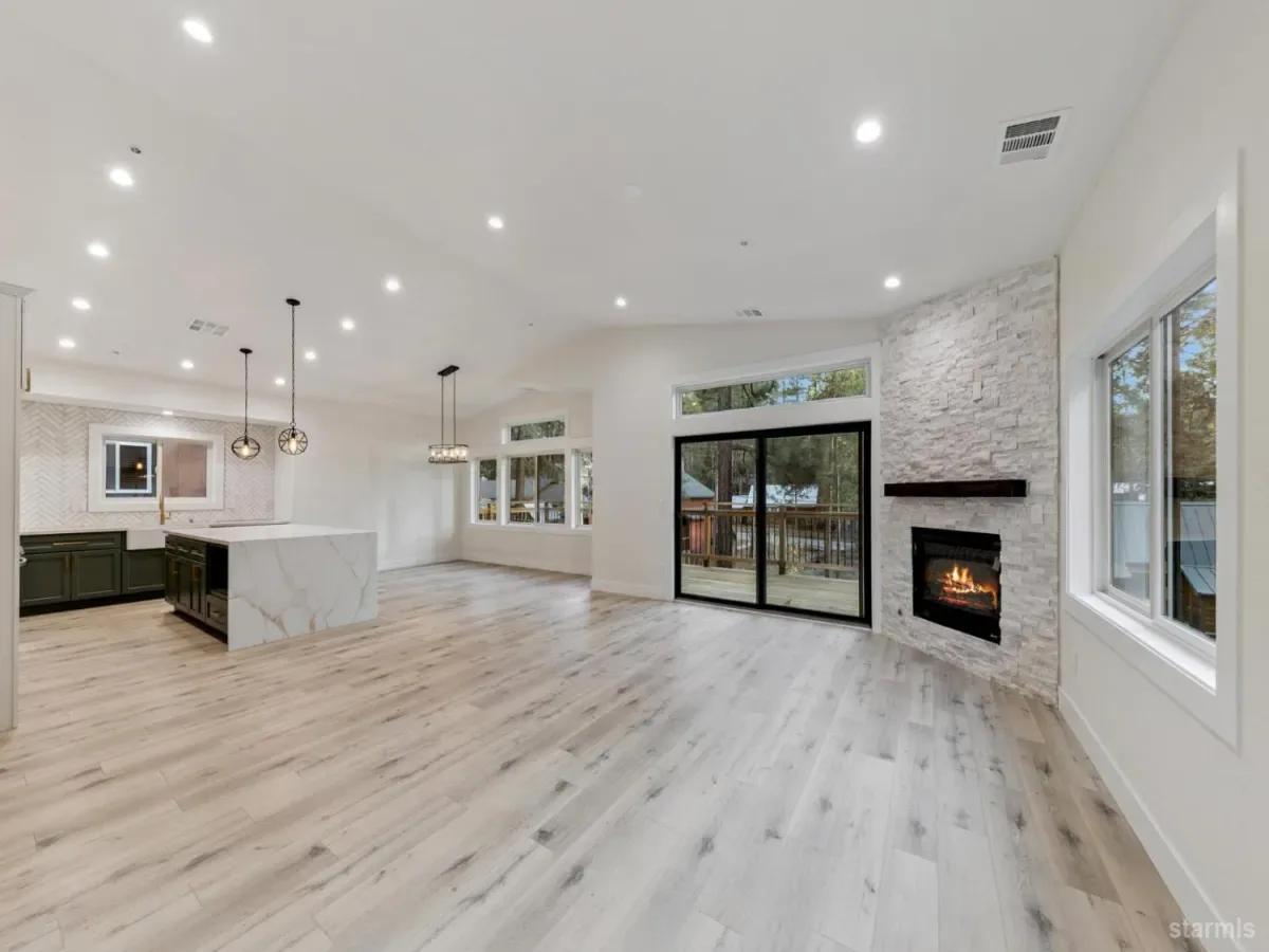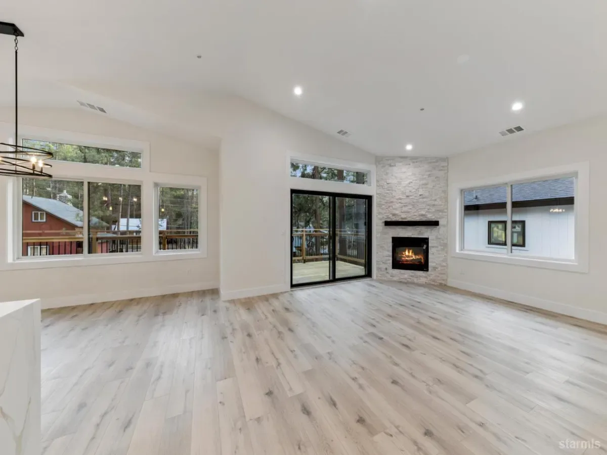Brand new in Pinewood Terrace, just beneath Heavenly and minutes from Heavenly Village, the Gondola and casino corridor, this one strikes a rare balance of access and privacy. Set near the end of a quiet cul de sac and backing to a vacant USFS lot, the setting feels more tucked away than you would expect this close to the action, with added afternoon light from the rear.From the street, the design stands out with a crisp modern mountain profile, contrasting fiber cement siding, black Andersen windows, warm wood soffits and a paving stone driveway. Inside, the split level entry opens to a dramatic two story foyer and an upstairs great room with vaulted ceilings, wide plank luxury vinyl flooring, expansive glass and a floor to ceiling stone fireplace. A massive redwood deck extends off the living area and looks out over the forested backdrop.The kitchen keeps pace with a large waterfall island, slab quartz, full height herringbone backsplash, custom cabinetry, brushed gold hardware and fixtures, stainless appliances and a walk in pantry. Upstairs, the primary suite offers generous space, a striking bath with soaking tub, separate shower, dual vanity and a large walk in closet.Downstairs, a second living area with wet bar adds flexibility for a game room, media room or overflow space, along with 2 additional bedrooms, another full bath and access to the 2 car garage. High efficiency systems include a modern furnace and tankless hot water.For buyers with one eye on income potential, the timing here matters as the City’s updated VHR program rolls out. The same builder also has another newly completed home next door, creating a rare chance for friends, family or investors to secure adjacent properties near Heavenly.