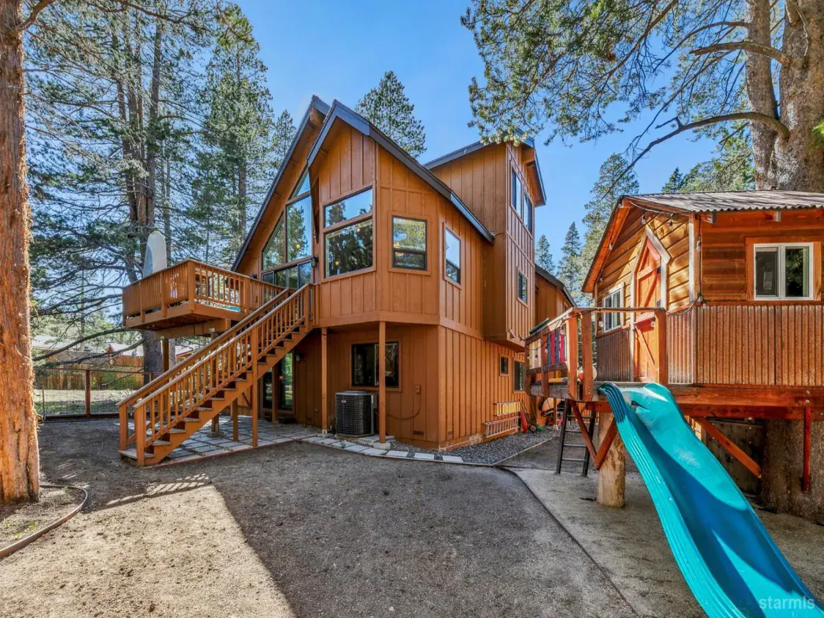 Mountain Living Meets Tahoe LuxuryTucked beside tranquil US Forest Service land, this beautifully crafted Tahoe mountain retreat offers the rare blend of privacy, space, and upscale alpine living. Designed with comfort and craftsmanship in mind, this home welcomes you with a spacious great room, soaring vaulted ceilings, and rich log and wood accents that echo the natural beauty of the surrounding forest.The heart of the home is the gourmet kitchen, perfect for entertaining or quiet evenings in. A generous center island, gas cooktop, double ovens, granite countertops, and knotty alder cabinetry set the stage for inspired cooking. Just off the kitchen, you’ll find a walk-in pantry with integrated laundry, streamlining both storage and daily routines.A stunning spiral staircase leads to a versatile loft ideal as a second living area, home office, or even a fitness space. The primary suite offers an impressive retreat with three closets, a jetted soaking tub, walk-in shower, and dual vanities.Downstairs, a cozy family room and three well-appointed guest bedrooms provide ample space for family and friends. Practical touches include a large mudroom connecting to the garage perfect for stashing snow gear after a day on the slopes or trails.Outside, kids (and the young at heart) will love the charming tree house, while everyone can enjoy nearby Lake Baron, trails, and some of the area’s top golf courses. And yes, central A/C is included for year-round comfort.