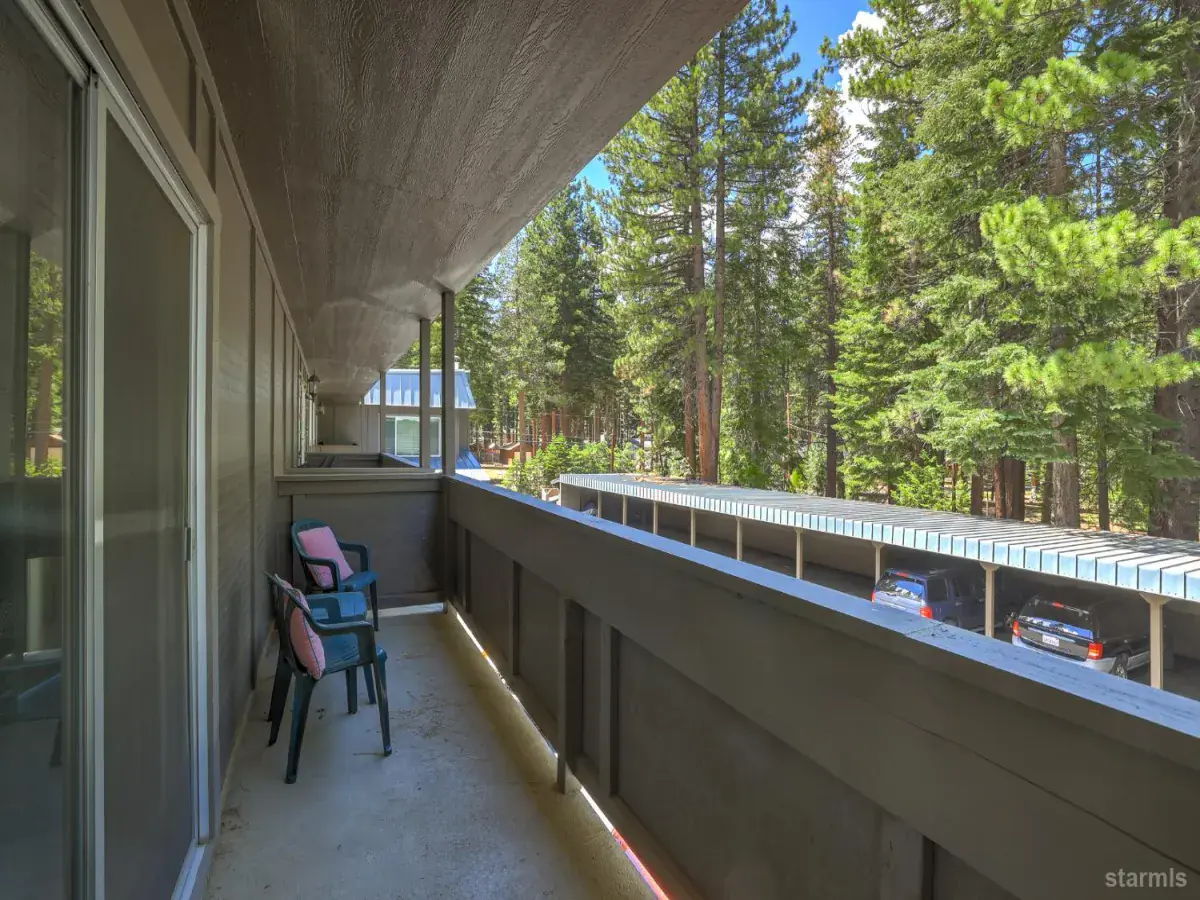Well maintained condo located in the Le Chateau complex just steps away from forest lands perfect for hiking, biking, cross country skiing and snow shoeing. This 2 bedroom 1 bath upstairs unit has been so enjoyed by this family for their second home for many years. Sold with all lovely furnishings included, it is move-in ready! The spacious living room is open to the kitchen with dining area. Off of the living room is a nice covered deck to sit and enjoy some forest views. Both bedrooms are very spacious with large closets and large hall closet area. What is a bonus feature with the Le Chateau Complex is that there is a covered designated carport with extra storage. Walk right down the street to the Bonanza Community Park with barbecues, picnic tables, basketball courts and playground equipment. Located close to the lake and Pope Beach, restaurants and shopping at the Y area of town. Just 10 minutes from Heavenly Ski Resort, casinos at Stateline and 3 golf courses, this condo is ready for year round enjoyment!