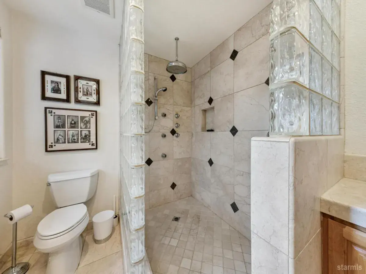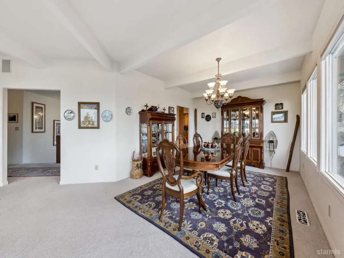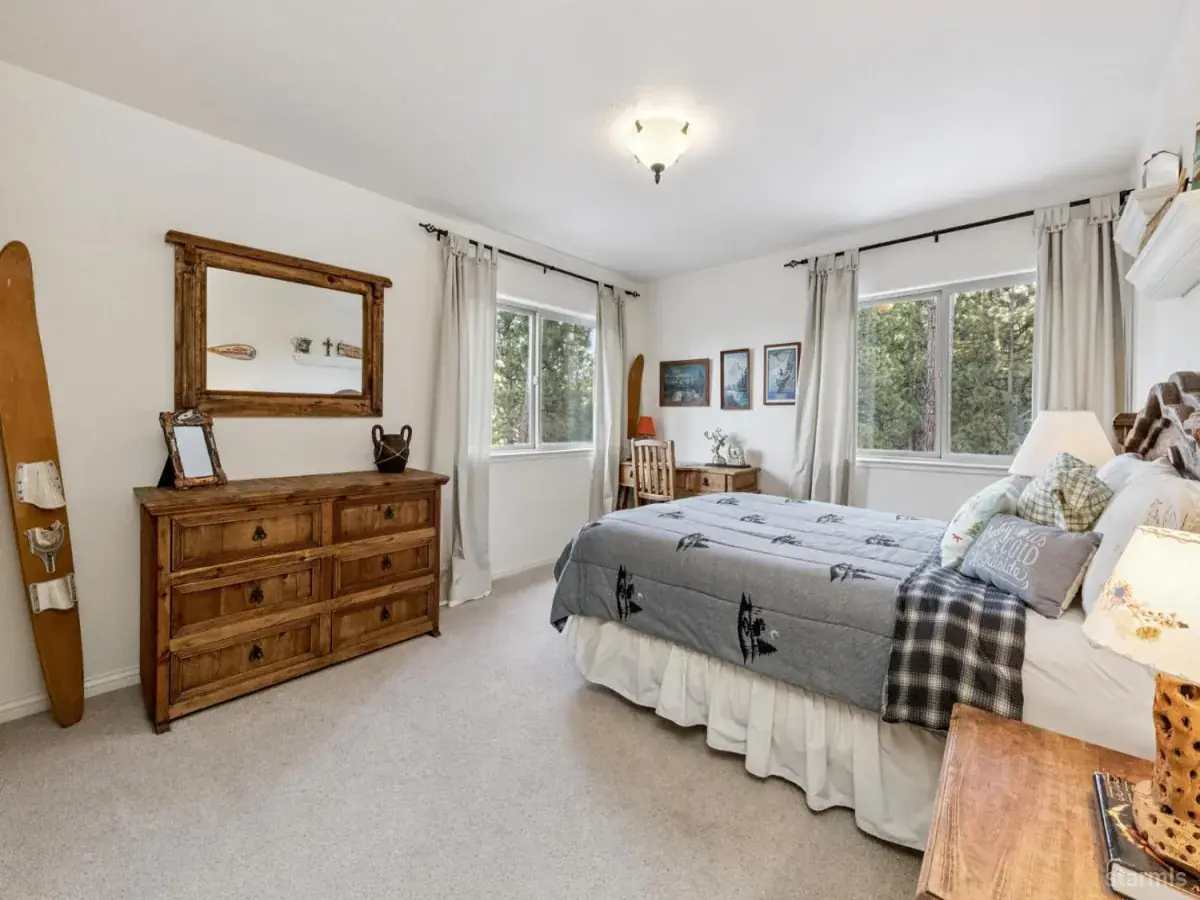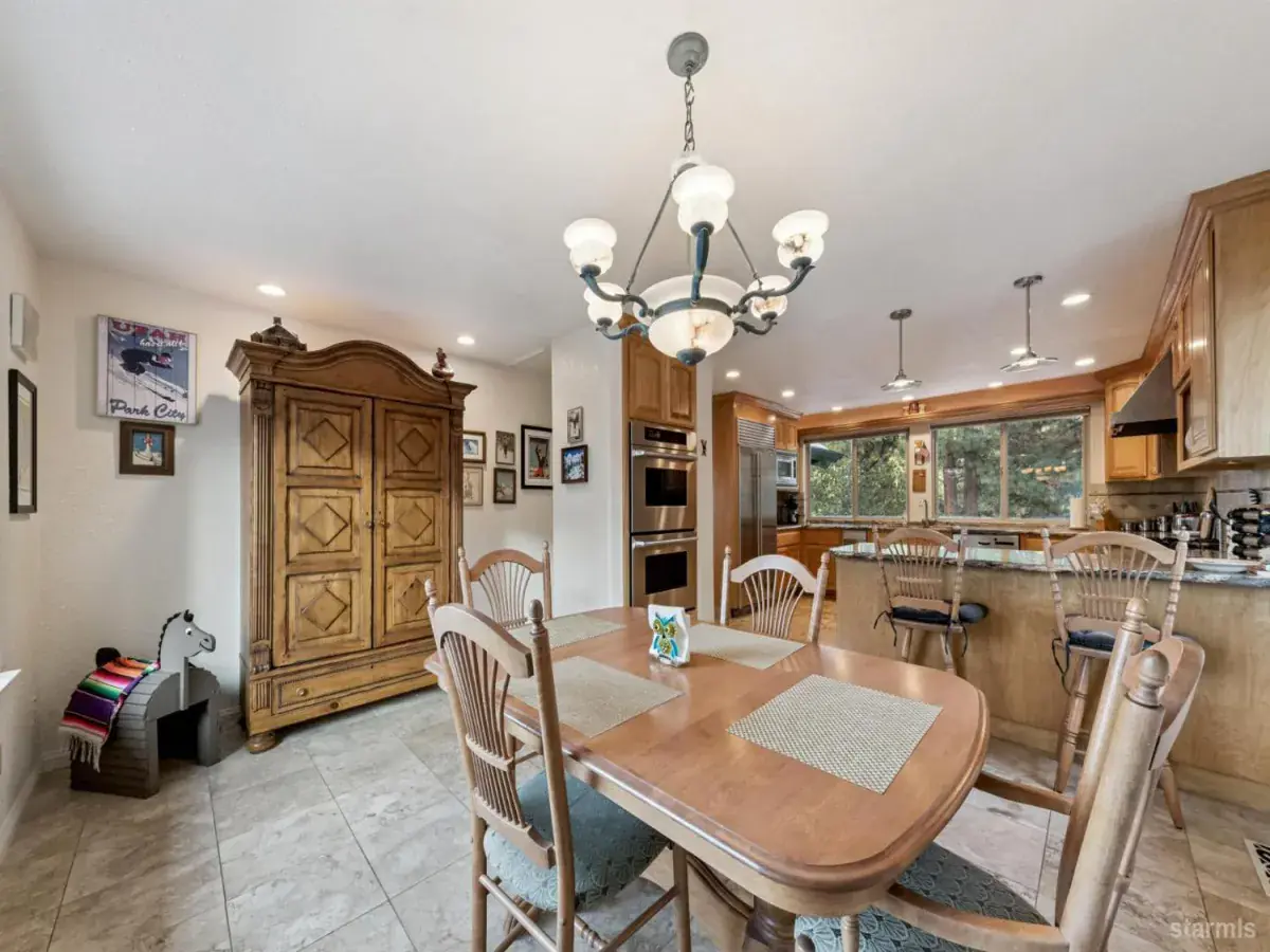 Tucked at the very end of a quiet dead-end street beneath the California base of Heavenly, this is one of those locations that simply should not exist anymore. While surrounded by mid-town convenience, the setting feels remarkably removed, bordered by a natural greenbelt of USFS land and granite boulder outcroppings that wrap the property in forested calm. – – The parcel spans approximately 0.37 acres and offers an unusually expansive driveway with room for 8 to 10 vehicles, in addition to a two-car garage. It is a rare combination of scale, usability, and setting for this part of town. – – The home itself is exceptionally well built, anchored by substantial concrete block construction that delivers a sense of permanence and strength, softened by rustic cedar siding and classic mountain character. The architecture follows the contours of the land, pressing against granite at the sides and opening dramatically to the rear, where sweeping lake views define the experience. – – Upper-level living was designed to capture those views from nearly every room, with expansive rear decks wrapping the entire back of the home. Sightlines stretch from the southern end of Lake Tahoe across the basin to the downtown casino core, all enjoyed in near silence, with little more than wind through the trees and wildlife nearby. – – The main living area is generous and open, centered around a large fireplace and flowing naturally into a semi-formal dining space. The kitchen is equally well appointed, featuring a built-in Sub-Zero refrigerator, gas cooktop, double wall ovens, warming drawer, peninsula seating, and a breakfast nook positioned to take in the lake views. – – The upper level also includes two bedrooms, highlighted by a spacious primary suite with a well-finished bath, dual vanity, and a large walk-in shower with rain head and body sprays. – – A traditional mountain pub-style family room anchors the lower level, complete with an open fireplace framed in antique brick, a coffered ceiling and billiards at center stage. A true walk-behind bar includes a bar sink, mini dishwasher, dual under-counter beverage refers, liquor display cabinets, and an etched Lake Tahoe mirror that feels straight out of a private lodge. – – Two additional bedrooms and a full bath complete the lower level, along with a large mechanical and storage room ideal for gear. The garage includes an alcove mudroom designed for skis, boards, and wet winter days. – – This is a legacy-caliber property in one of the most premium micro-locations near Heavenly, particularly compelling for buyers who prioritize skiing access without sacrificing summer livability.