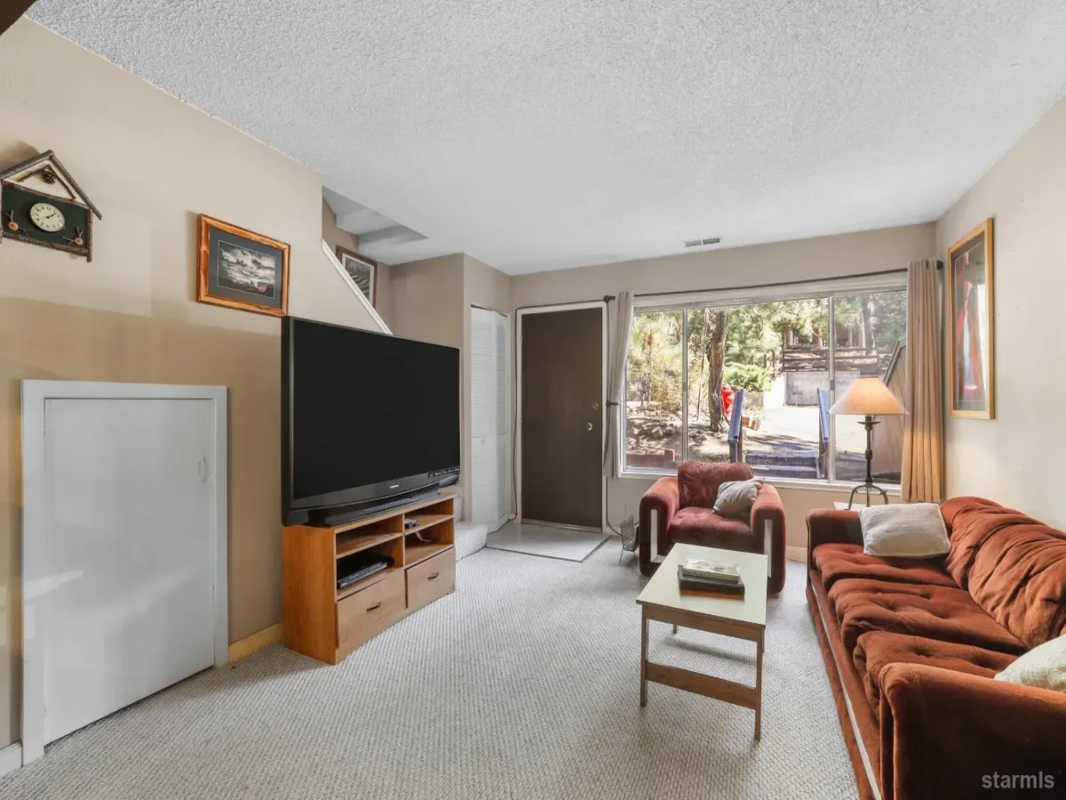 Excellent location for this furnished 2 bedroom 1 1/2 bath condo located at the top of Ski Run Blvd. and within walking distance to Heavenly Ski Resort. This 2 story unit has a great floor plan with a large uncovered deck at the front entry. Your assigned parking stall is right in front of your unit with extra guest parking stalls across the driveway. As you enter there is a spacious living room with open wood burning fireplace, breakfast bar area plus room for a small dining table. The kitchen has nice ceramic tile counters and new vinyl flooring as well as new vinyl flooring in the front entry way and all new carpet throughout the living area and bedrooms. There is also a 1/2 bath , closet area with a stack washer & dryer and nice sunny deck off of the kitchen. Upstairs are 2 spacious bedrooms with large closets and updated bath with a tub/shower combo. Lots of storage in the exterior storage closet off of the front deck area, two closets in the front bedroom, hall coat closet and storage under the interior stairs. Being sold with all furnishings included this condo is perfect as a second home or even a primary residence as surrounded by wonderful bike trails, forest lands and within walking distance to all of the great restaurants along Ski Run Blvd. Just 5 minutes to the lake and beach park and 5 minutes to Stateline NV and casinos. Great new price!