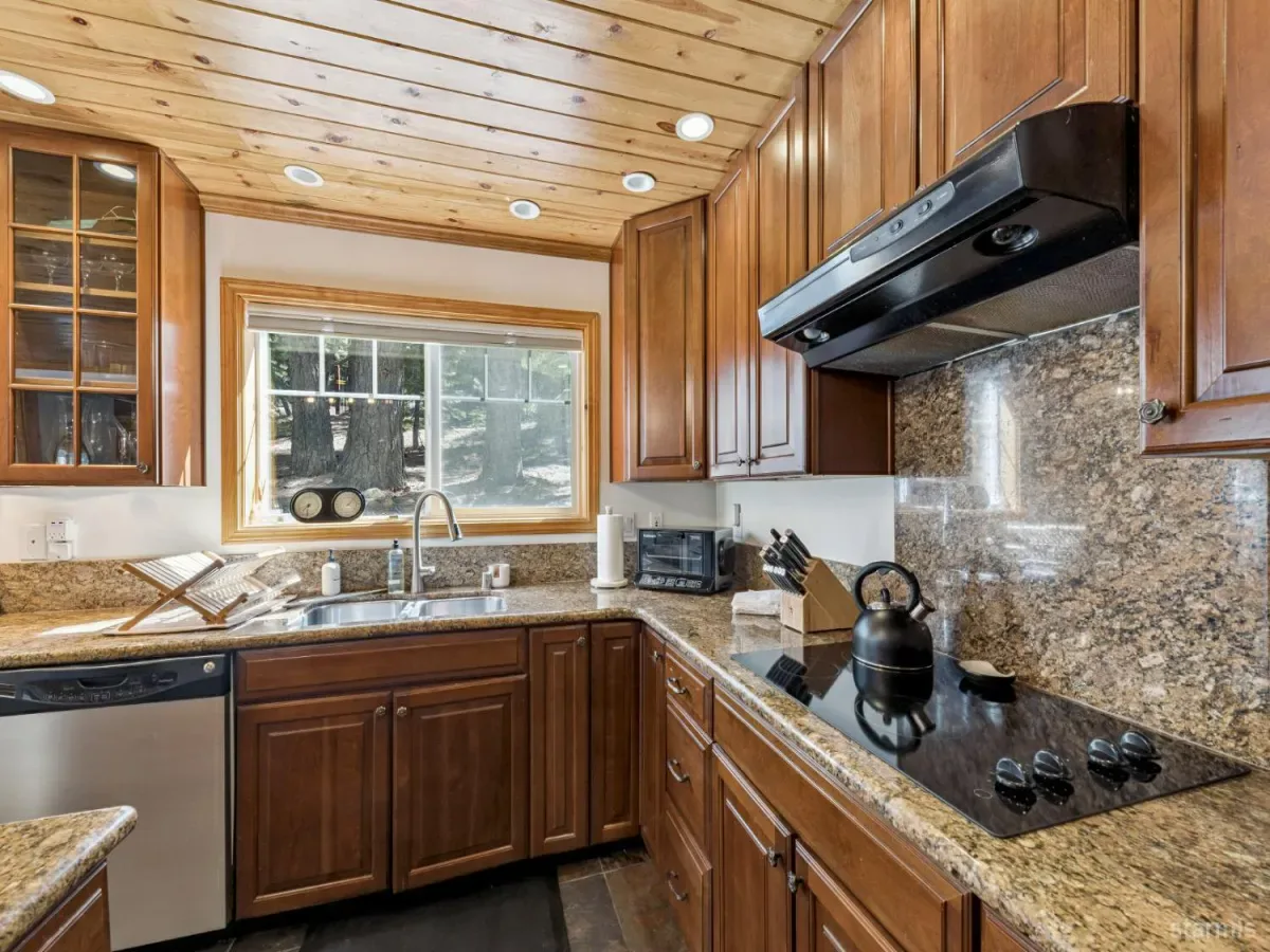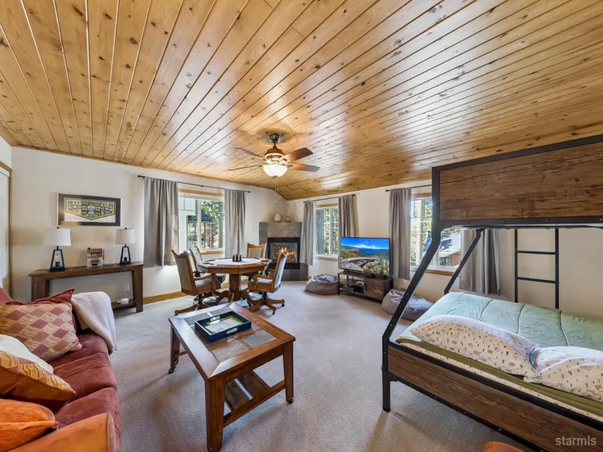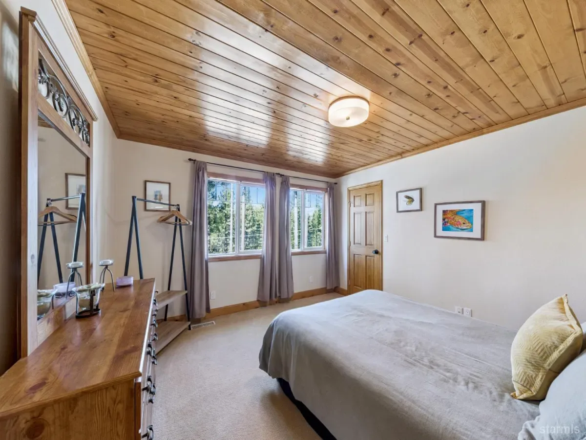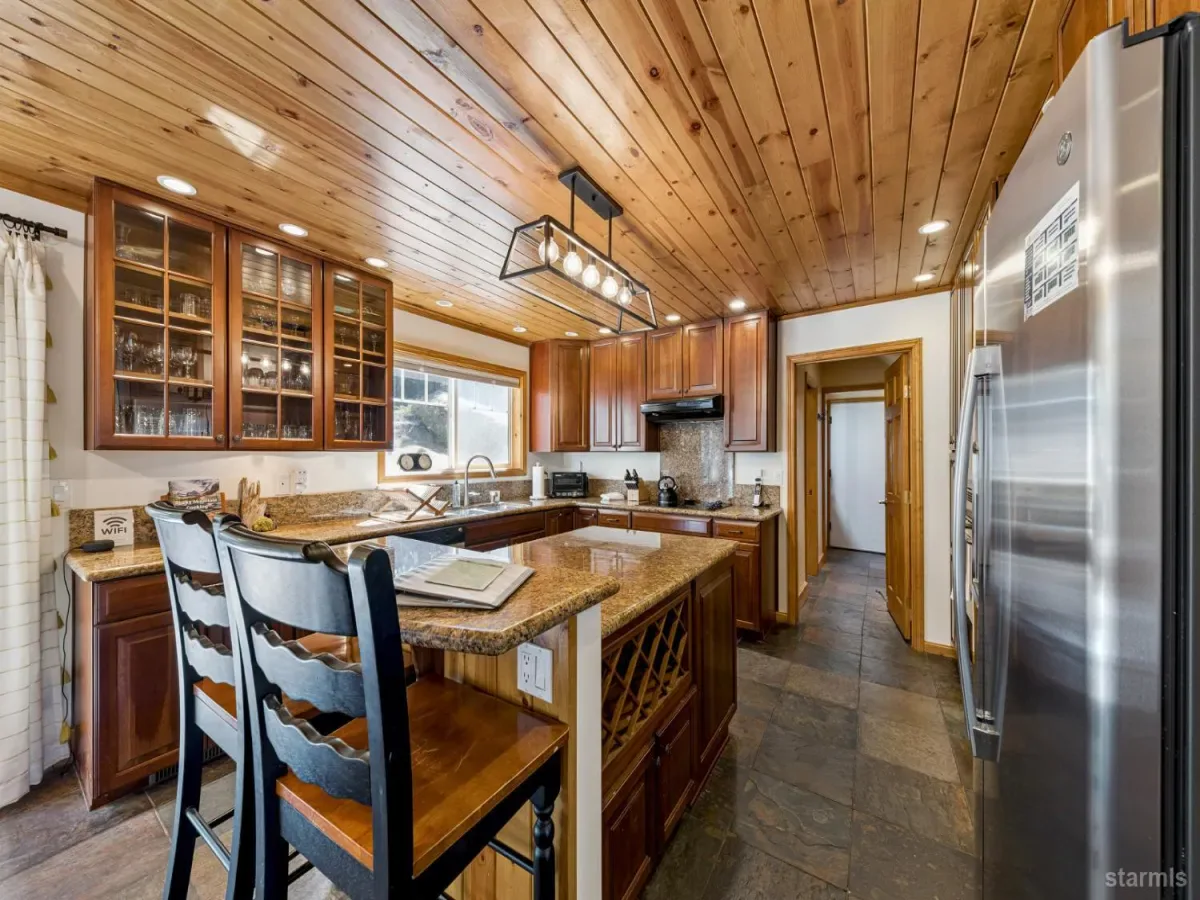 You will be pleasantly surprised when you step inside this beautifully renovated mountain-style luxury home. Experience the quality rustic charm in a warm, inviting atmosphere. Every corner captures the essence of mountain decor in an upscale design. The 4 bedroom, 3 bath , generously proportioned home is constructed with high quality . materials in colors of an intimate hue: slate floors in entry dining, kitchen and hallways; pine ceilings; tile and granite in 3 full baths and kitchen; aesthetically pleasing wood framed windows. Other newer upgrades include new carpet in 2025 and new furnace and water heater in 2022 (per seller). The large downstairs 4th bedroom is presently used as a family-game room. Peer out to pretty mountain views from 2 stories in the front of the home. Ideal location with Lake Tahoe Country Club golf course around the corner and South Upper Truckee River a few blocks away where you can enjoy lazy summer rafting trips.Turn key home with exquisite furnishings. This home will impress the pickiest buyers!