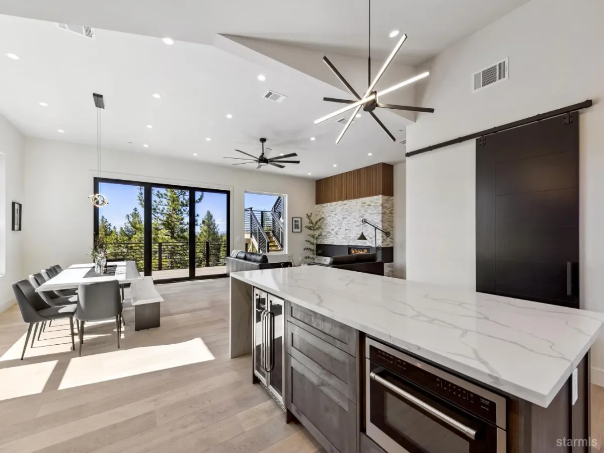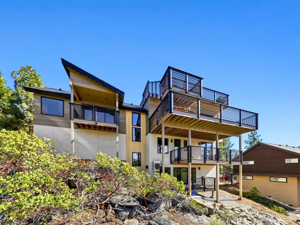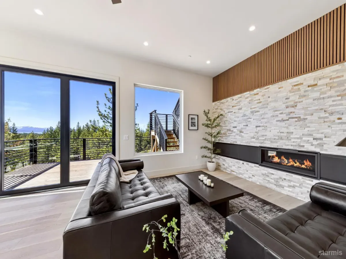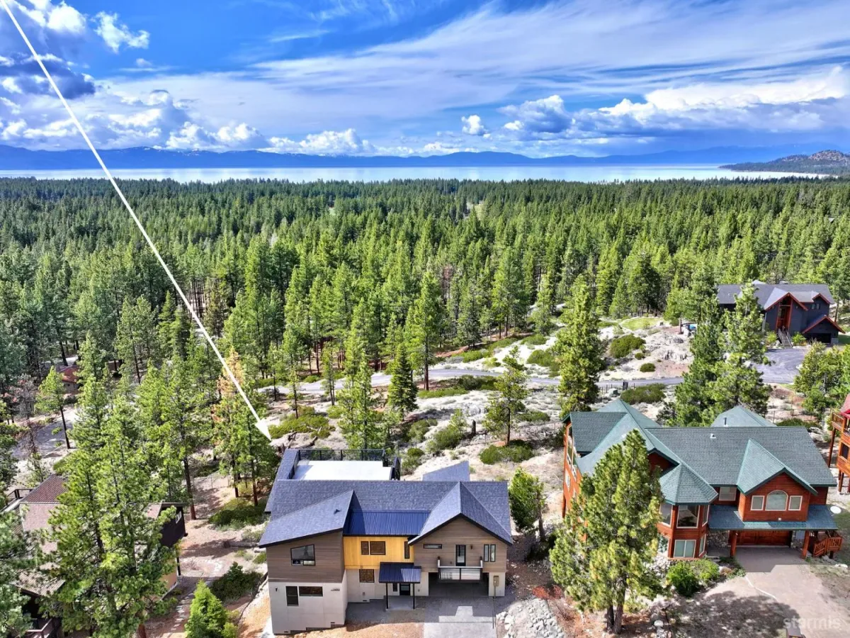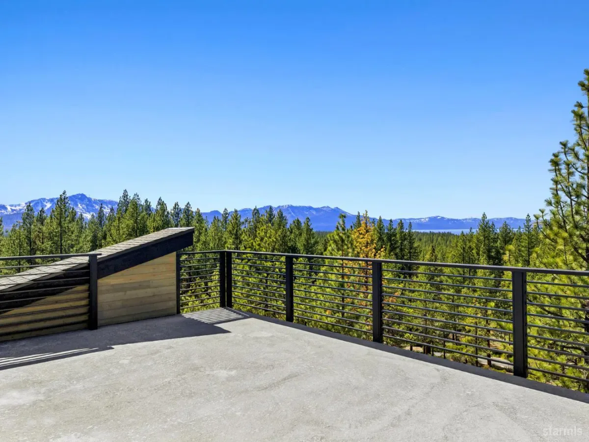 Brand new luxurious home located in the desirable Heavenly Valley area of South Lake Tahoe overlooking multiple Forest Service owned lots. This 3,421 square foot custom home features 4 bedrooms, 4.5 bathrooms, and a 2-car garage and sits on a sunny 11,617 square foot lot with panoramic mountain views and filtered views of Lake Tahoe. The location offers easy access to Heavenly Ski Resort, Stateline, and the lake, making it ideal for both year-round living and vacation use.The spacious upstairs living area is designed to take full advantage of the views and includes tall ceilings, brushed white oak hardwood flooring, and a beautiful contemporary gas fireplace. An Andersen folding door fully opens the living room to the back deck, creating seamless indoor-outdoor living and framing the surrounding mountain scenery and filtered lake views. From the back deck, stairs lead to an expansive rooftop deck offering 360-degree mountain views and stunning views of Lake Tahoe.The kitchen is finished with custom knotty alder cabinetry, granite and quartz countertops, and high-end Thermador appliances, including a built-in 48-inch refrigerator and a 48-inch dual-oven gas range. Additional features include two dishwashers, a built-in microwave, and generous counter space, making it well suited for entertaining and larger gatherings.The primary suite is located on the main living level and includes a private balcony with filtered lake views, a spacious walk-in closet, and a spa like bathroom with a freestanding soaking tub overlooking the mountains, dual-sink vanity, and a stunning custom tile shower.Additionally, there is an office/flex space on the main level that offers a light and bright space to set up a home office.Downstairs are three additional guest bedrooms, including a junior primary suite with its own en-suite bathroom. The other two bedrooms share a Jack and Jill bathroom finished with custom tile and modern fixtures. The laundry room features built-in cabinetry and a utility sink for added convenience.The first floor boasts a large game room with a gas fireplace, wet bar, and a full bathroom. This flexible space could easily function as a theater room, second family room, or even be converted into a fifth bedroom.This exceptional new home offers a rare combination of quality construction, expansive living space, and panoramic mountain and lake views in one of South Lake Tahoe’s most desirable locations.