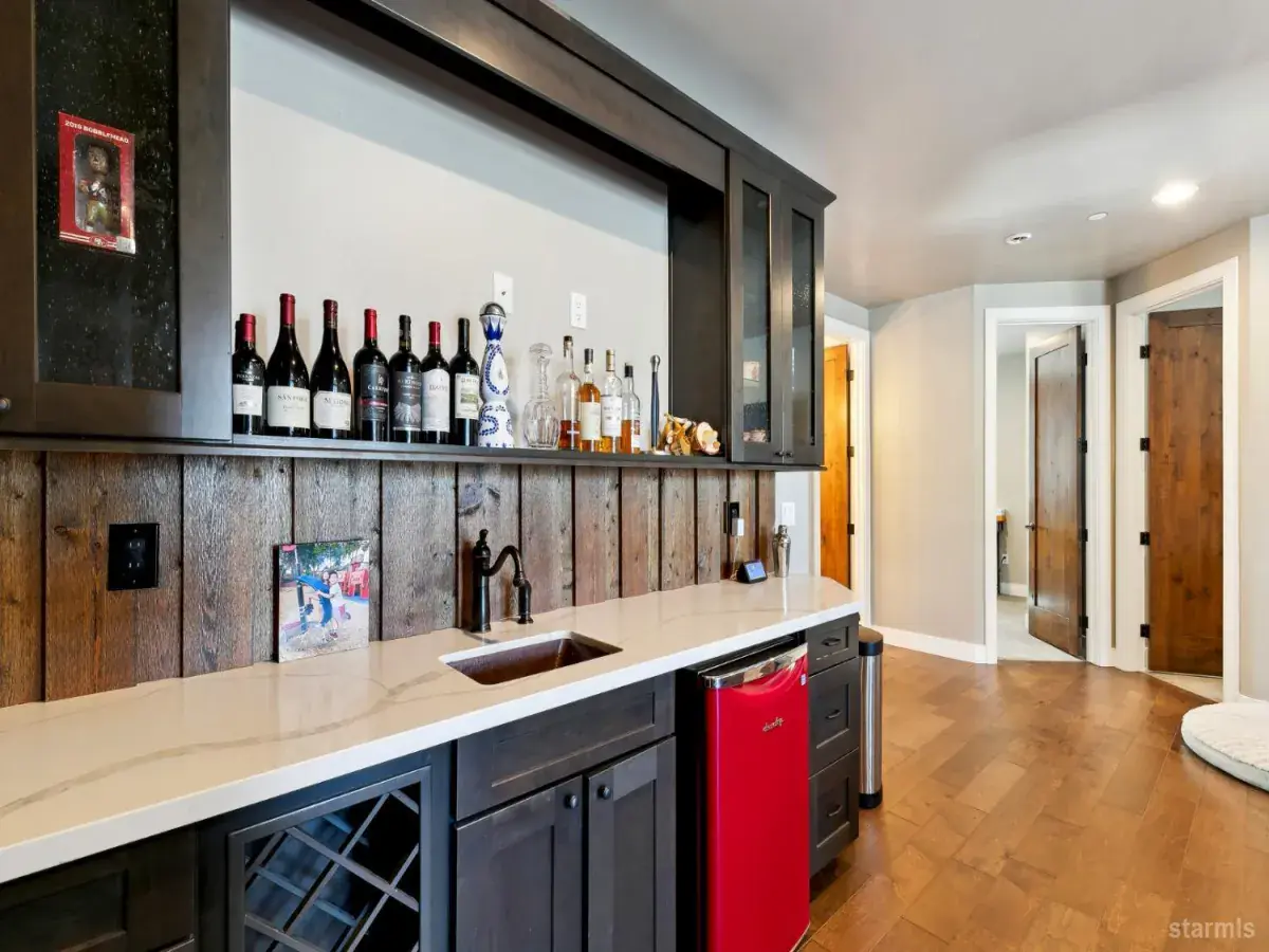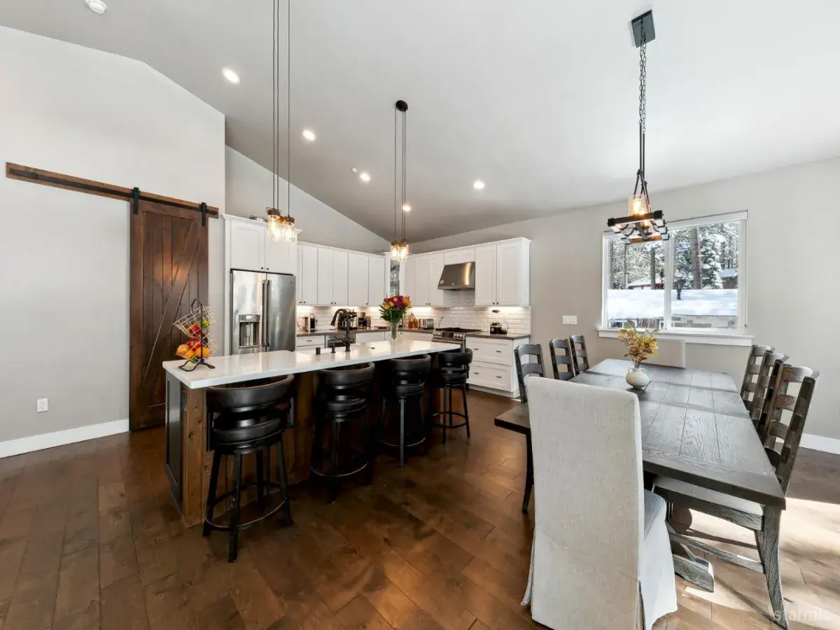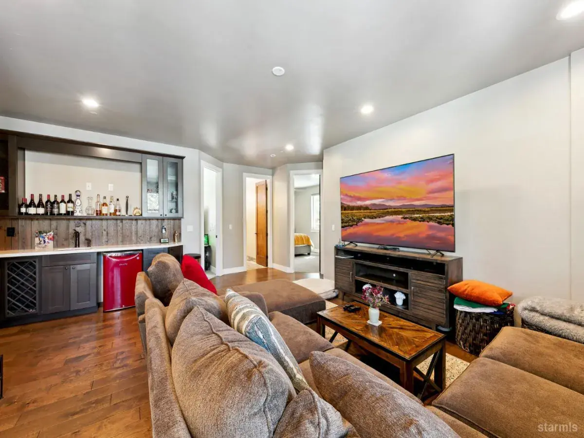Modern Mountain Luxury in Tahoe ParadiseExperience the perfect blend of rustic charm and contemporary elegance in this stunning 5-bedroom, 3-bathroom home, nestled in the tranquil Tahoe Paradise neighborhood. Designed for both relaxation and entertainment, this residence showcases distressed birch wood flooring, quartz countertops, stainless steel appliances, and soaring vaulted ceilings, creating a warm yet sophisticated ambiance.The striking exterior, featuring vertical metal, cedar, and stone siding, blends seamlessly with the surrounding natural beauty. Enjoy filtered views of Mt. Tallac and the Angora Ridgeline, with open conservancy lots in both the front and back, ensuring privacy and serenity.The upper level welcomes you with an expansive open-concept living space, anchored by a cozy fireplace and a chef’s kitchen designed for effortless gatherings. The primary suite boasts a luxurious en-suite bath and a walk-in closet, while an office, guest bath, and laundry room add convenience.Downstairs, the lower level offers a second living area with a wet bar, along with three additional bedrooms and a full bath, making it an ideal retreat for guests or family.Whether you’re seeking a full-time residence or a mountain getaway, this exquisite home captures the essence of modern Tahoe living.