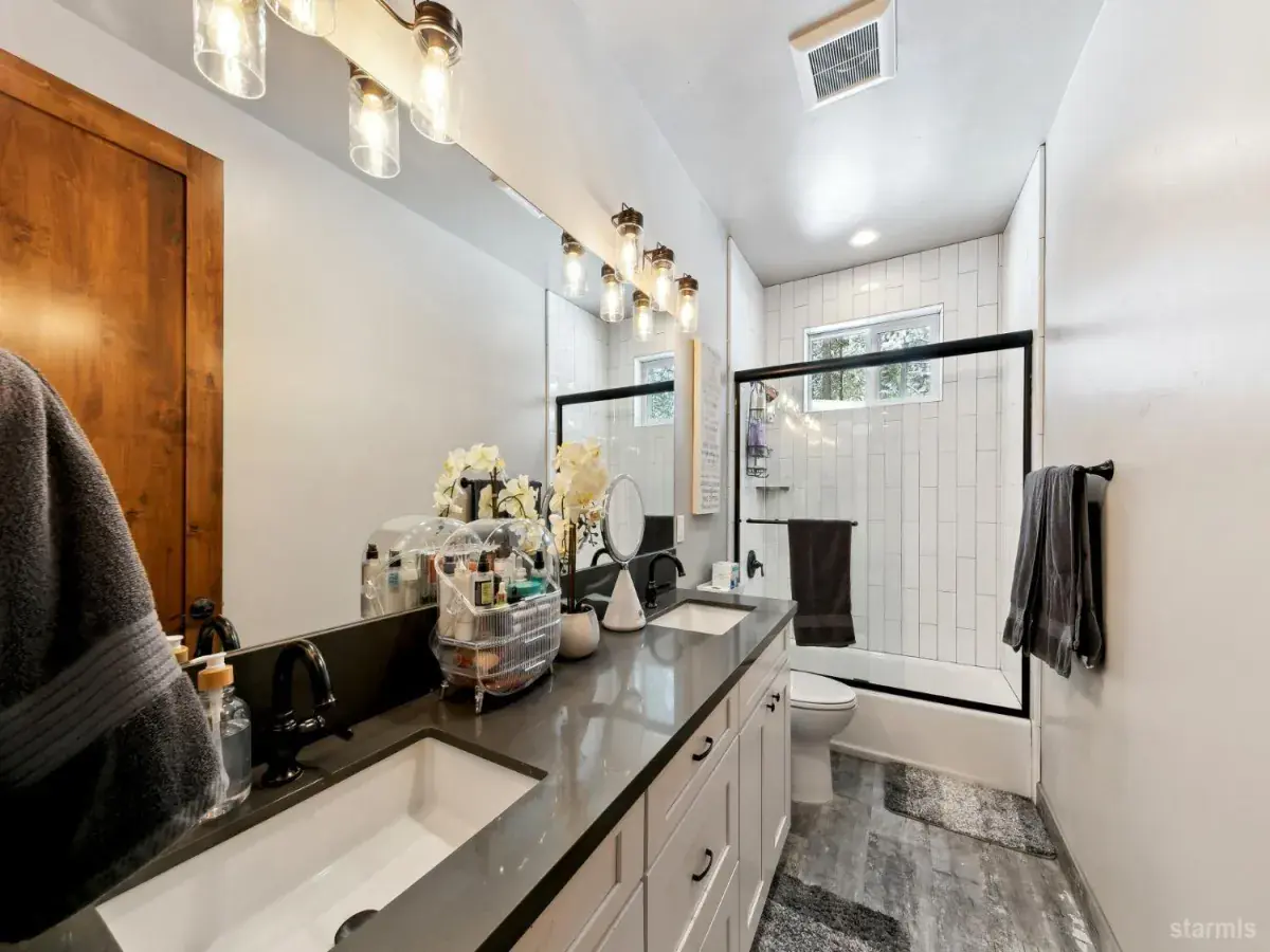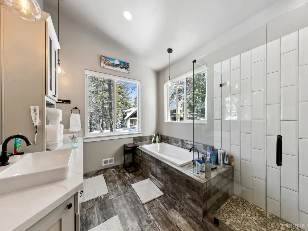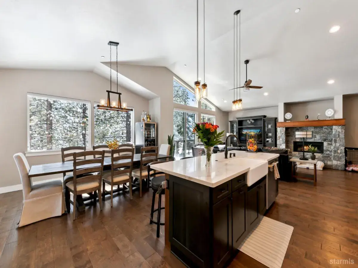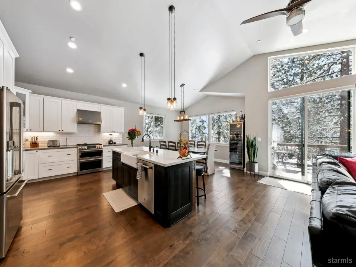 Modern Mountain Luxury in Tahoe ParadiseExperience the perfect blend of rustic charm and contemporary elegance in this stunning 5-bedroom, 3-bathroom home, nestled in the tranquil Tahoe Paradise neighborhood. Designed for both relaxation and entertainment, this residence showcases distressed birch wood flooring, quartz countertops, stainless steel appliances, and soaring vaulted ceilings, creating a warm yet sophisticated ambiance.The striking exterior, featuring vertical metal, cedar, and stone siding, blends seamlessly with the surrounding natural beauty. Enjoy filtered views of Mt. Tallac and the Angora Ridgeline, with open conservancy lots in both the front and back, ensuring privacy and serenity.The upper level welcomes you with an expansive open-concept living space, anchored by a cozy fireplace and a chef’s kitchen designed for effortless gatherings. The primary suite boasts a luxurious en-suite bath and a walk-in closet, while an office, guest bath, and laundry room add convenience.Downstairs, the lower level offers a second living area with a wet bar, along with three additional bedrooms and a full bath, making it an ideal retreat for guests or family.Whether you’re seeking a full-time residence or a mountain getaway, this exquisite home captures the essence of modern Tahoe living.