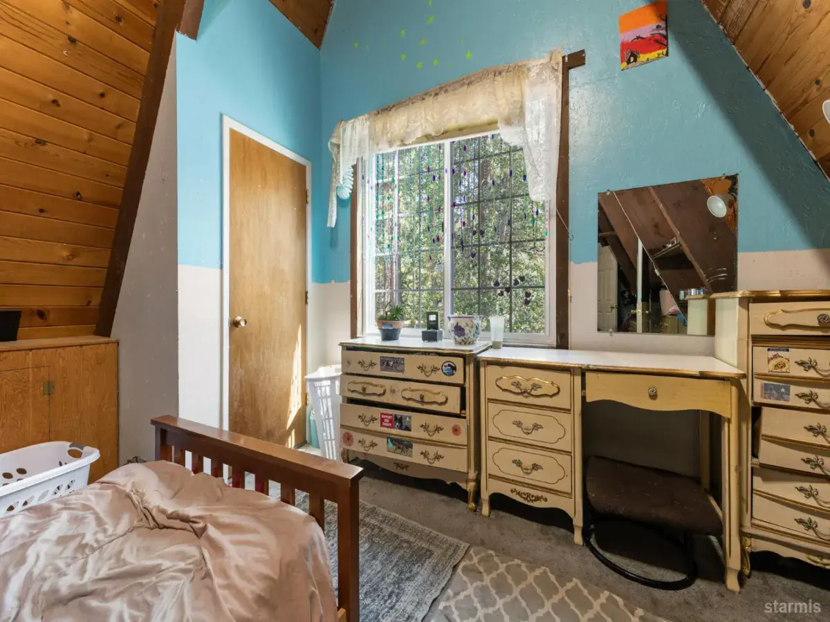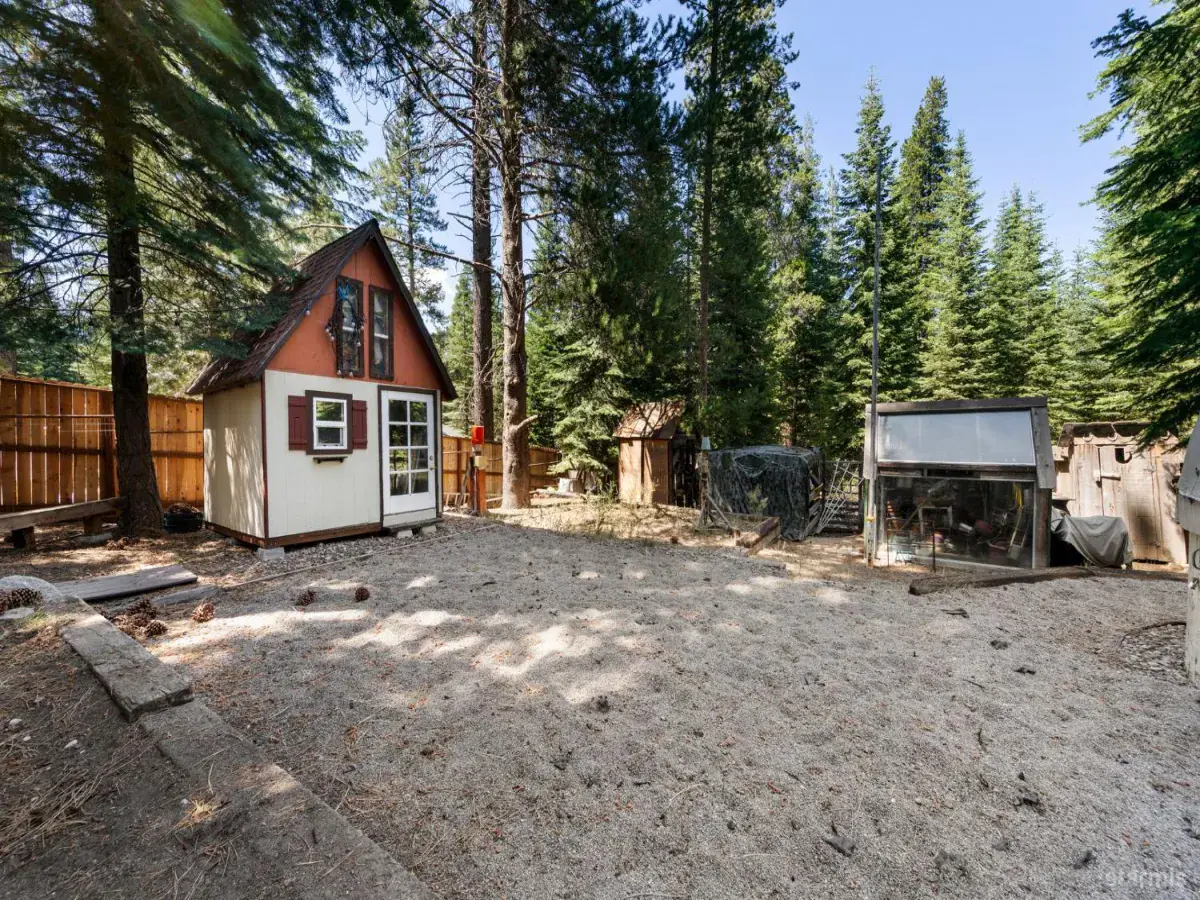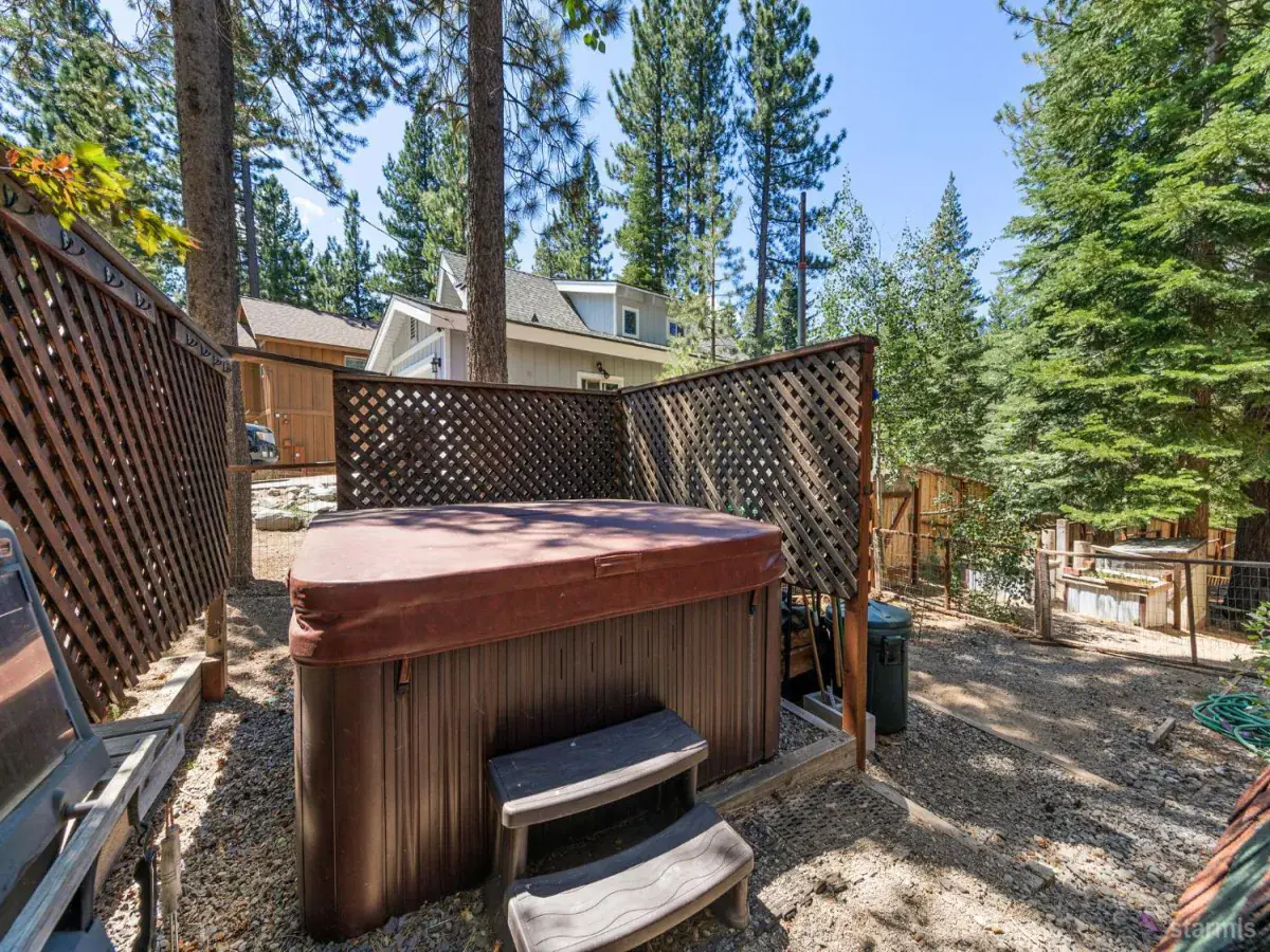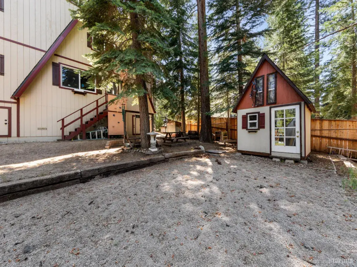 This charming 5-bedroom, 1.5-bath home located in the desirable Tahoe Paradise community, offering comfortable living with a blend of rustic charm and modern updates. The main living area downstairs features open beam ceilings that create an inviting, spacious atmosphere. The remodeled kitchen is a chef’s delight, equipped with ample cabinetry, stainless steel appliances, and a convenient hanging pot rack, perfect for preparing meals and entertaining.Downstairs also includes two bedrooms, a full bathroom with a classic clawfoot tub, a versatile office or den space, and additional storage, providing flexibility for your lifestyle needs. Upstairs, vaulted ceilings enhance the three additional bedrooms and a convenient half bathroom, creating a bright and airy retreat for family and guests.Step outside to an expansive backyard complete with a storage shed and a relaxing hot tub ideal for unwinding after a day of adventure. This home is perfectly situated close to world-class mountain biking trails, hiking paths, and premier ski resorts, making it a perfect base for outdoor enthusiasts. Experience the best of Tahoe living with this spacious, well-appointed home that combines comfort, functionality, and access to unparalleled recreational opportunities.