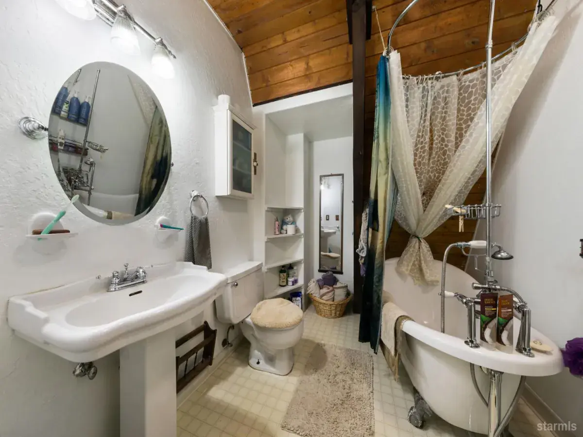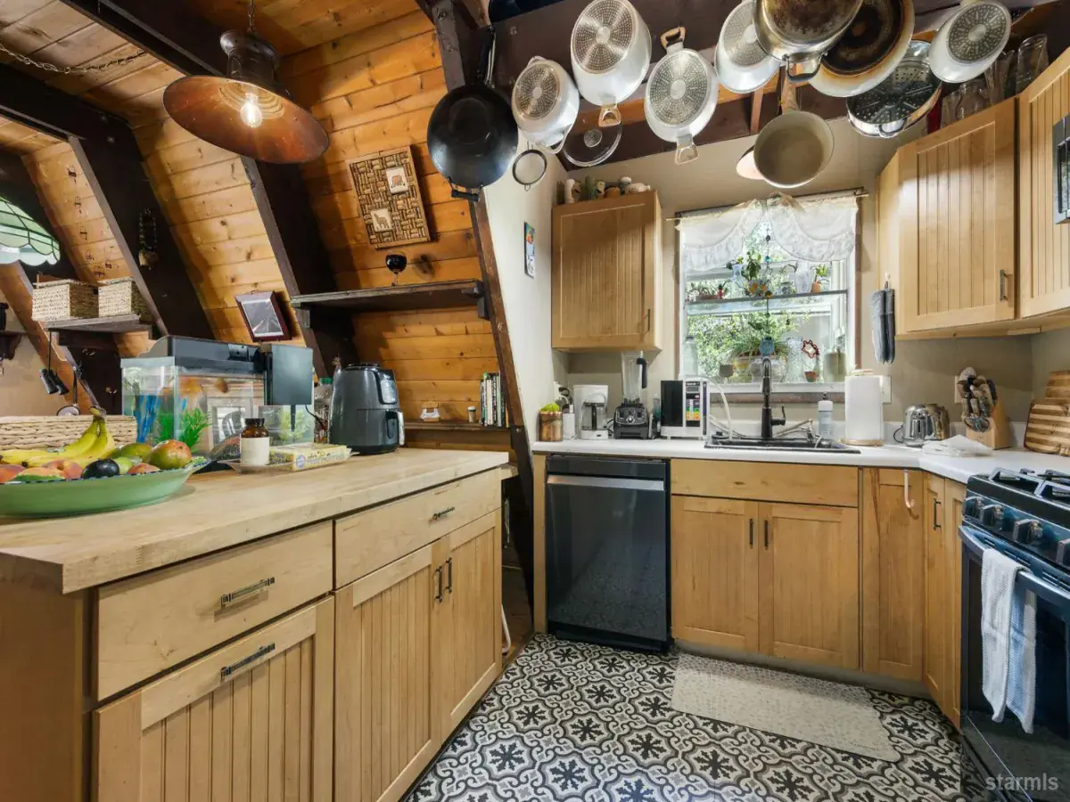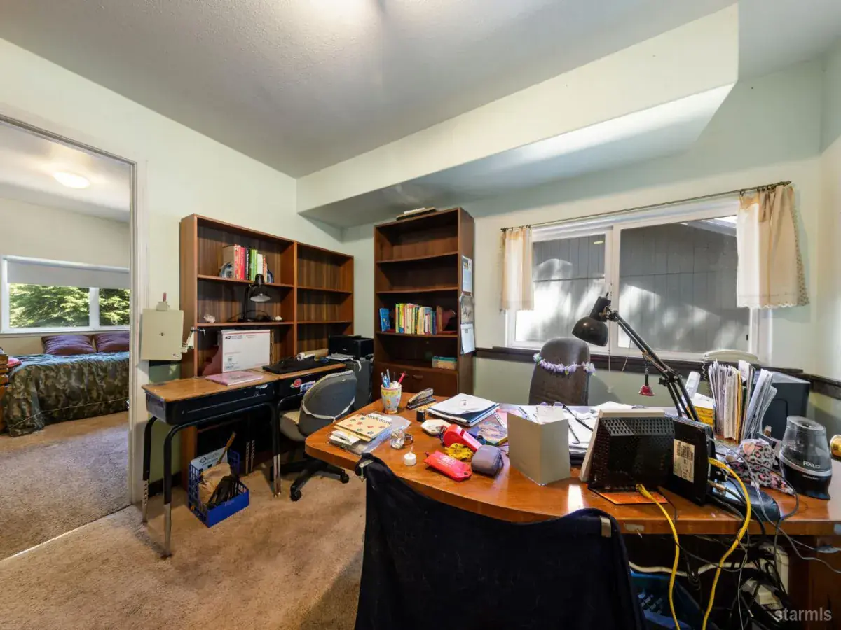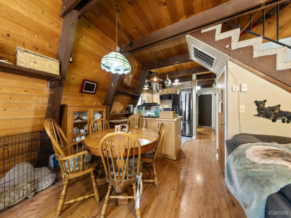 This charming 5-bedroom, 1.5-bath home located in the desirable Tahoe Paradise community, offering comfortable living with a blend of rustic charm and modern updates. The main living area downstairs features open beam ceilings that create an inviting, spacious atmosphere. The remodeled kitchen is a chef’s delight, equipped with ample cabinetry, stainless steel appliances, and a convenient hanging pot rack, perfect for preparing meals and entertaining.Downstairs also includes two bedrooms, a full bathroom with a classic clawfoot tub, a versatile office or den space, and additional storage, providing flexibility for your lifestyle needs. Upstairs, vaulted ceilings enhance the three additional bedrooms and a convenient half bathroom, creating a bright and airy retreat for family and guests.Step outside to an expansive backyard complete with a storage shed and a relaxing hot tub ideal for unwinding after a day of adventure. This home is perfectly situated close to world-class mountain biking trails, hiking paths, and premier ski resorts, making it a perfect base for outdoor enthusiasts. Experience the best of Tahoe living with this spacious, well-appointed home that combines comfort, functionality, and access to unparalleled recreational opportunities.