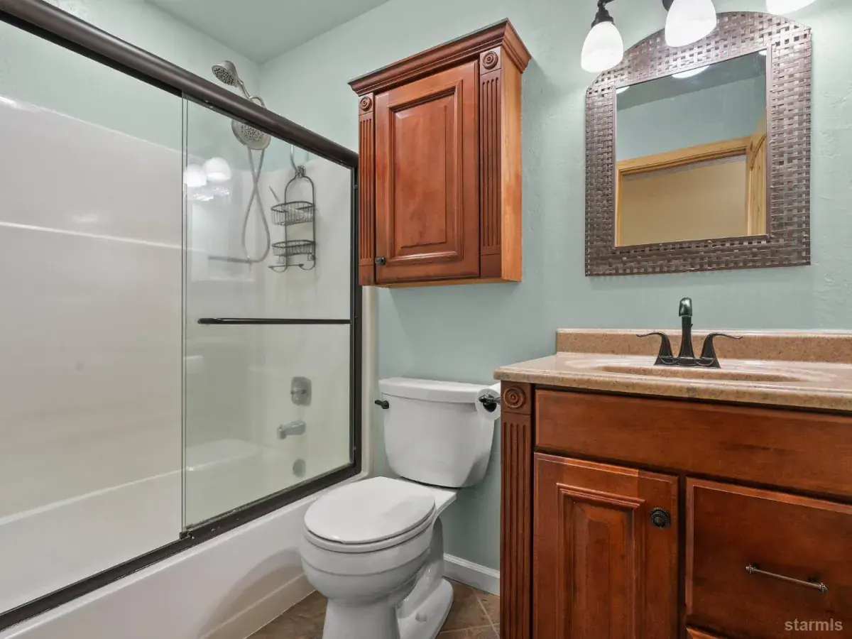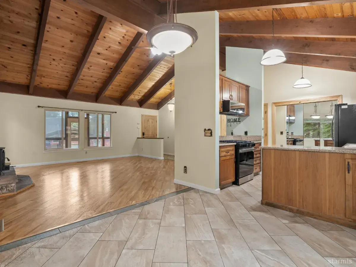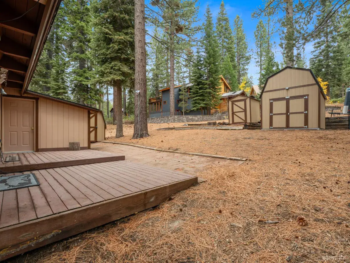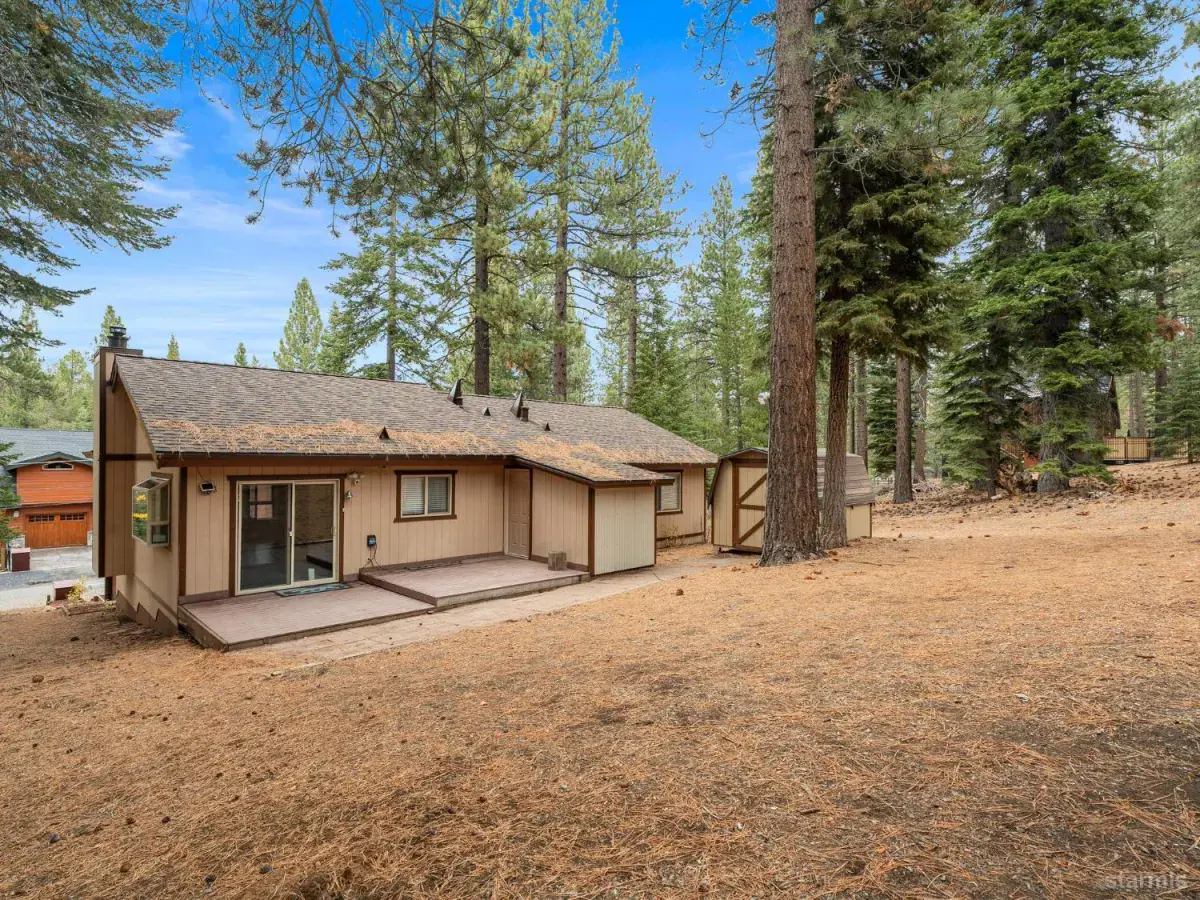 Nestled at the end of a peaceful cul-de-sac and surrounded by California Conservancy land, this well-maintained home offers privacy, serenity, and direct access to hiking trails. The open-concept living area features vaulted ceilings, a cozy fireplace, and abundant natural light. The kitchen and dining area are enhanced with Italian porcelain tile, a brand-new gas range, microwave, and dishwasher. Recent upgrades include a 50-year roof (2017), blown-in R60 attic insulation, a 50-gallon water heater (2023), double-pane windows, and central heat with a Wi-Fi thermostat and new induction motor. The remodeled primary bathroom boasts a floor-to-ceiling tiled shower, while the enclosed porch with LVP flooring provides a cozy spot to unwind in any season. Enjoy modern conveniences throughout: LED lighting, ceiling fans, pine doors, and a full suite of Ring smart-home security features. Outside, you’ll find multiple sheds valued over $20,000, secure storage under the porch, a bear box, snow-protecting roof heat tape, and a private access road with space to park an RV or boat. Snow removal for the 2025-2026 season is prepaid, and draft plans for a future garage and mother-in-law quarters are included.This is the ideal Tahoe retreat for year-round living or vacation enjoyment.
