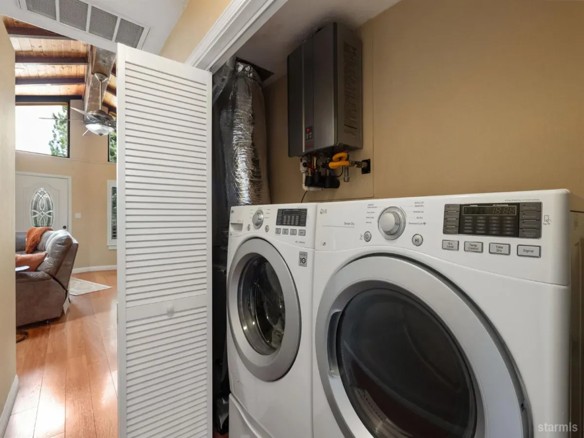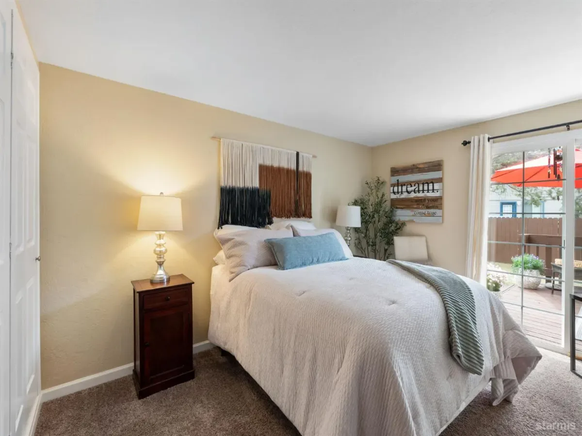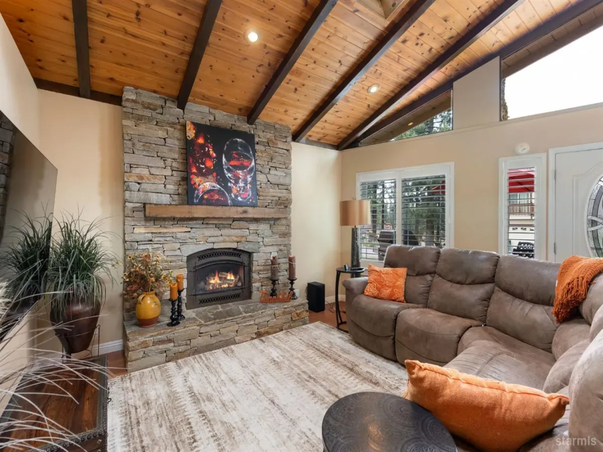 Perched in a quiet, highly desirable flat-land neighborhood in the county near the meadow, this refined single-story residence offers 3 bedrooms, 2 baths, and captivating unobstructed views of the meadow and mountains from the front deck, made possible by underground utilities that preserve the natural beauty of the setting.Inside, soaring vaulted ceilings, plantation shutters, stainless steel appliances, and a spacious center island in the kitchen set the stage for effortless entertaining and everyday comfort. The open-concept design is anchored by a dramatic stacked-stone fireplace, creating a warm yet elevated focal point in the living space. The serene primary suite features a private en-suite bath and an impressive walk-in closet, while the guest bedrooms enjoy convenient access to the backyard and rear deck, where sweeping mountain views invite quiet relaxation. Enhancements such as a wine closet, on-demand water heater, newer Bryant furnace, and one-car garage further elevate the home’s appeal.The beautifully landscaped grounds are equally impressive, with mature perennial flower beds, a sprinkler system, paver driveway, bear box, and two Tuff Sheds, including one ideally suited for a workshop or creative space. A separate side entrance adds flexibility and convenience, with access to the back bedroom.Perfectly located near hiking, mountain biking, and world-class ski resorts in South Lake Tahoe, with easy access to downtown dining and entertainment, this exceptional property offers a rare opportunity to enjoy mountain living at its finest.