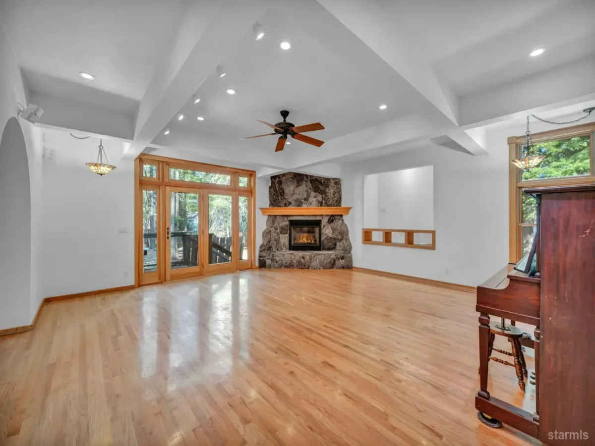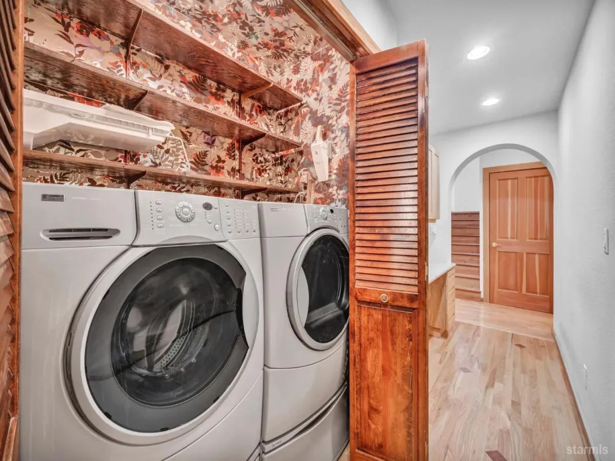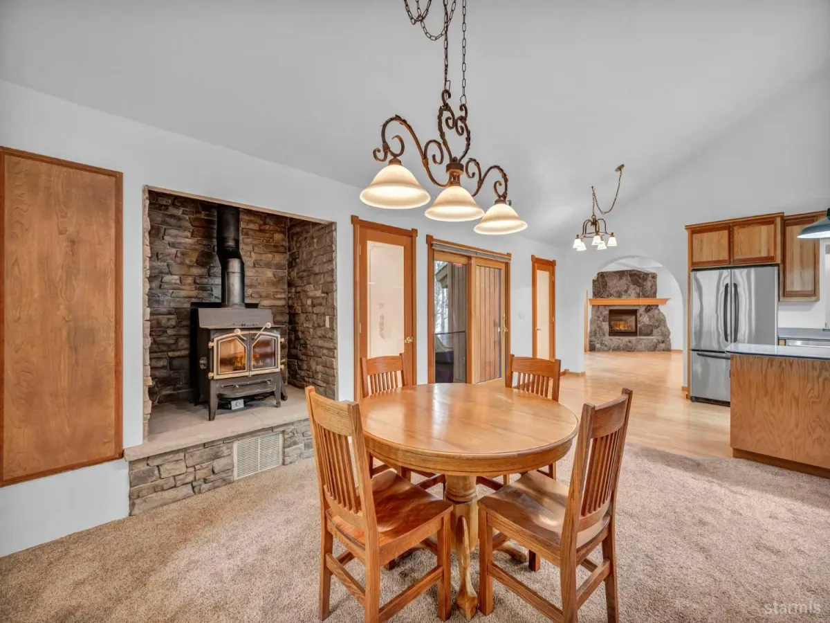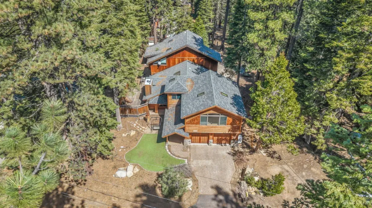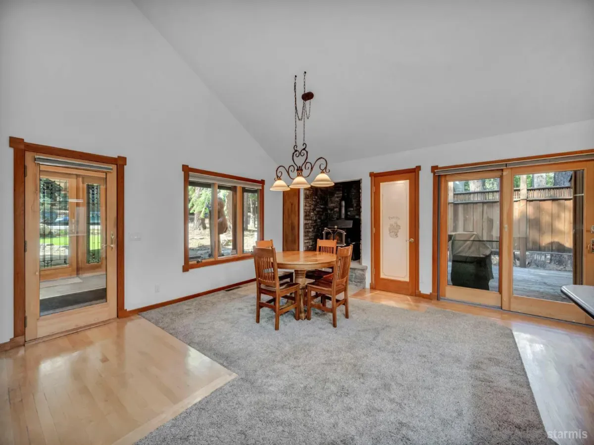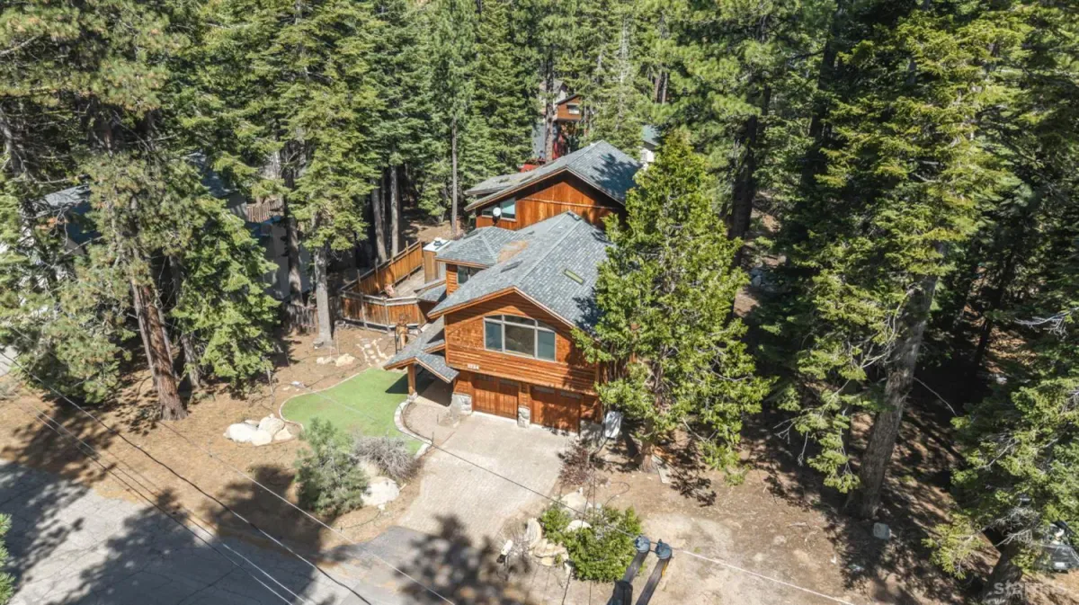 Craftsmanship and character welcome you to this 4 bed, 2.5 bath Tahoe Paradise home mostly constructed in 2004 on a premium choice 1/4 acre parcel across from forest service conservancy land. Curb appeal begins with a timeless barrel-vault entry, guiding you to the stained-glass front door and into the foyer and mudroom. A second entrance is through the heated garage, which is deep enough for a full-sized pickup on one side and includes a central floor drain for winter vehicle snowmelt.Both entries open to the dining area with hardwood floors, a wood stove for emergency heating, butler’s and food pantries, and the current kitchen featuring a Wolf gas range, Corian countertops, and stainless appliances. Designs are available for adding a kitchen island or keeping the existing footprint and tailoring the space to your dreams. The front portion of the home further offers 2 downstairs bedrooms, 1.5 baths, laundry in the hallway, and additional storage.The kitchen and hallway each flow into the living room with a stone fireplace and oak hearth, all part of the 2004 expansion when award-winning architect, Brian Shinault AIA, seamlessly added the entire back section, all of the upstairs, and the garage- together making up roughly two-thirds of the home. At that time, blasting also created a rare 556 sq ft basement (not included in square footage) with window egress and ducting in place to easily add heating vents. Currently used as a home builder’s workshop with another separate storage room, this extra space is ready to become a gym, office, wine cellar, gaming room, or additional living area. This home was built to a higher standard with no expenses spared.Upstairs, oak stairs with cherry nosing lead to the primary suite with soaring ceilings, water-sensing opening and closing skylights, window seating with storage, a walk-in closet, and a spa-like bath featuring a steam shower, bubbler tub with heated backrest, and stunning forest views. An exercise or reading room with skylight completes this level.Also built in 2004 are the garage and a spacious bedroom or bonus family room above the garage. This space is complete with a large closet with remote operated skylight and window. Plumbing connections are already in place in the wall below this closet and a schematic is available to convert the space into a bathroom and easily make this section of the home a second primary suite. Additional remote skylights brighten this front upstairs living area and are also found over the downstairs living room and kitchen. The exterior doors and most of the windows in the home are Andersen, and replacing a few smaller downstairs bedroom windows with larger ones would further embrace the forest views and natural lighting.Well built, thoughtfully designed, meticulously maintained, this home offers extraordinary value and flexibility on a premium parcel within a sought-after Tahoe neighborhood.