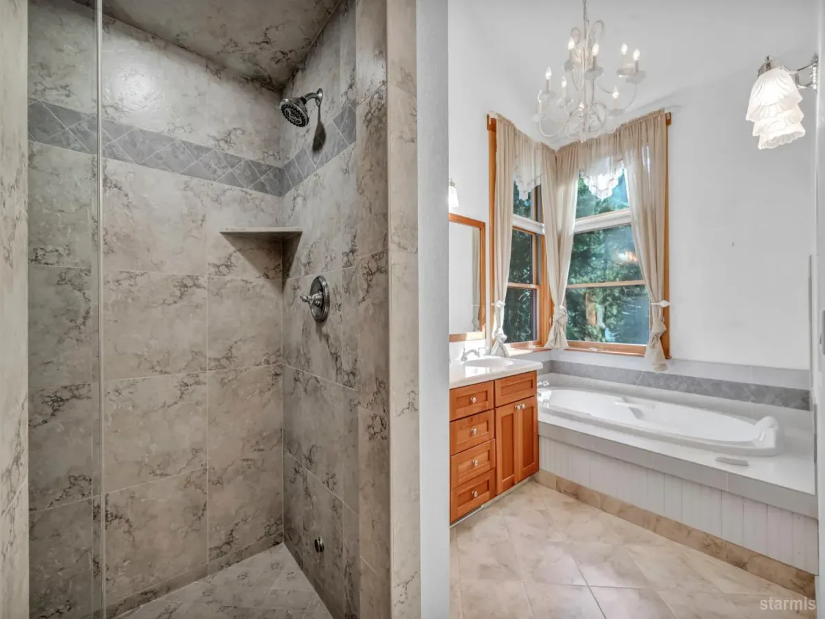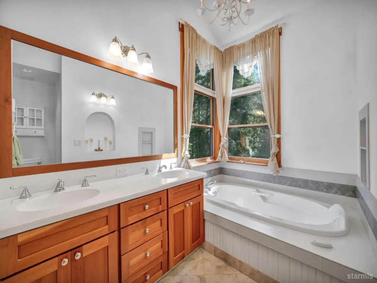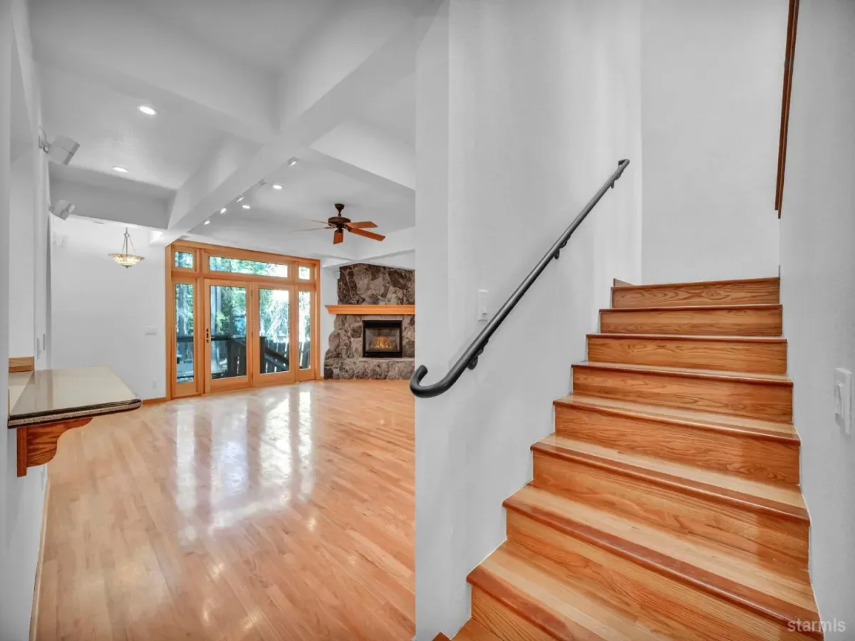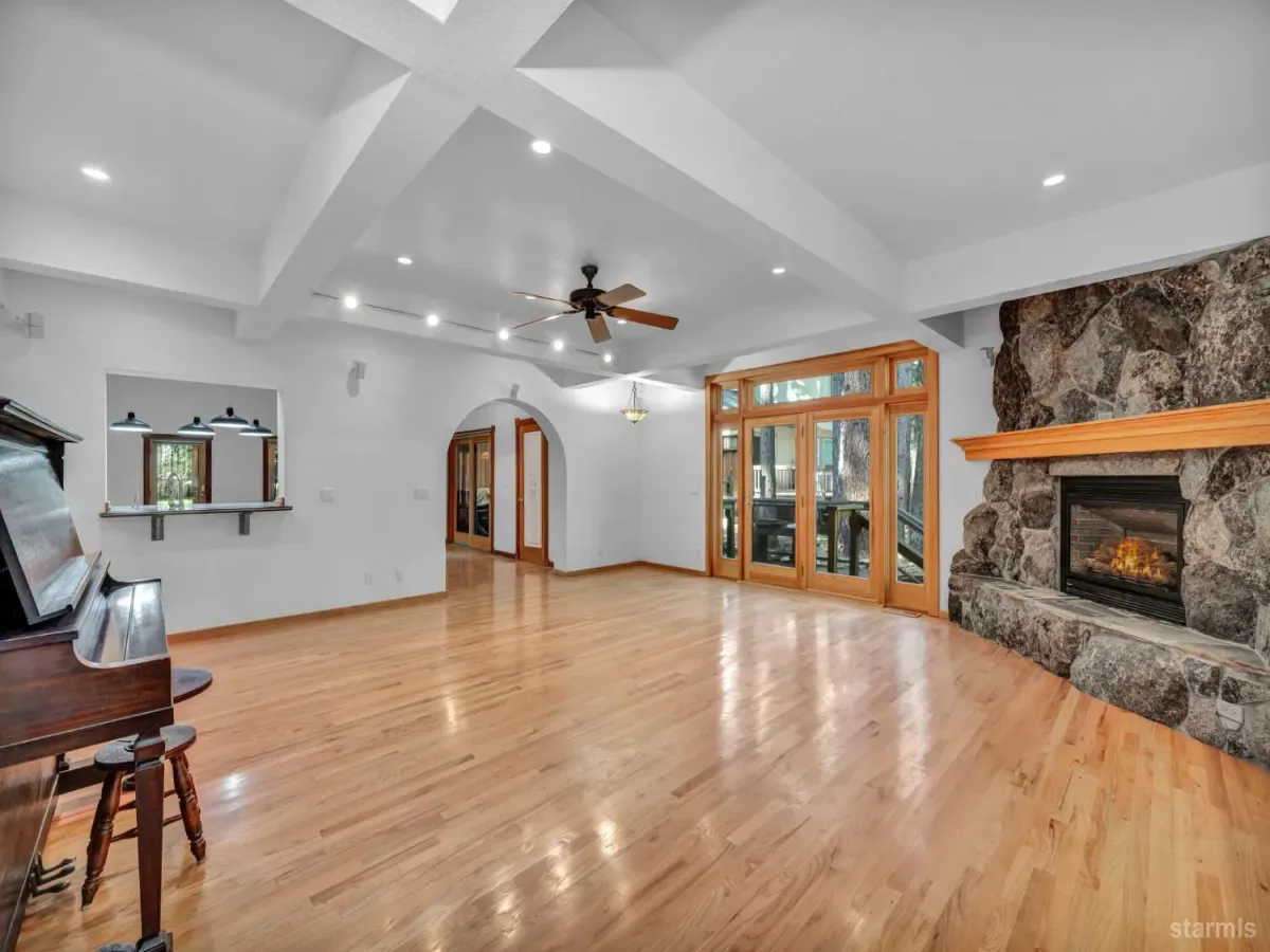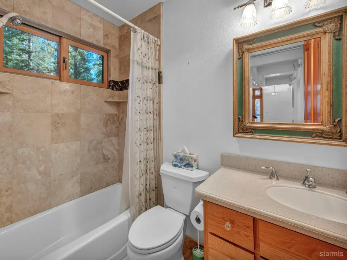 Craftsmanship and character welcome you to this 4 bed, 2.5 bath Tahoe Paradise home mostly constructed in 2004 on a premium choice 1/4 acre parcel across from forest service conservancy land. Curb appeal begins with a timeless barrel-vault entry, guiding you to the stained-glass front door and into the foyer and mudroom. A second entrance is through the heated garage, which is deep enough for a full-sized pickup on one side and includes a central floor drain for winter vehicle snowmelt.Both entries open to the dining area with hardwood floors, a wood stove for emergency heating, butler’s and food pantries, and the current kitchen featuring a Wolf gas range, Corian countertops, and stainless appliances. Designs are available for adding a kitchen island or keeping the existing footprint and tailoring the space to your dreams. The front portion of the home further offers 2 downstairs bedrooms, 1.5 baths, laundry in the hallway, and additional storage.The kitchen and hallway each flow into the living room with a stone fireplace and oak hearth, all part of the 2004 expansion when award-winning architect, Brian Shinault AIA, seamlessly added the entire back section, all of the upstairs, and the garage- together making up roughly two-thirds of the home. At that time, blasting also created a rare 556 sq ft basement (not included in square footage) with window egress and ducting in place to easily add heating vents. Currently used as a home builder’s workshop with another separate storage room, this extra space is ready to become a gym, office, wine cellar, gaming room, or additional living area. This home was built to a higher standard with no expenses spared.Upstairs, oak stairs with cherry nosing lead to the primary suite with soaring ceilings, water-sensing opening and closing skylights, window seating with storage, a walk-in closet, and a spa-like bath featuring a steam shower, bubbler tub with heated backrest, and stunning forest views. An exercise or reading room with skylight completes this level.Also built in 2004 are the garage and a spacious bedroom or bonus family room above the garage. This space is complete with a large closet with remote operated skylight and window. Plumbing connections are already in place in the wall below this closet and a schematic is available to convert the space into a bathroom and easily make this section of the home a second primary suite. Additional remote skylights brighten this front upstairs living area and are also found over the downstairs living room and kitchen. The exterior doors and most of the windows in the home are Andersen, and replacing a few smaller downstairs bedroom windows with larger ones would further embrace the forest views and natural lighting.Well built, thoughtfully designed, meticulously maintained, this home offers extraordinary value and flexibility on a premium parcel within a sought-after Tahoe neighborhood.