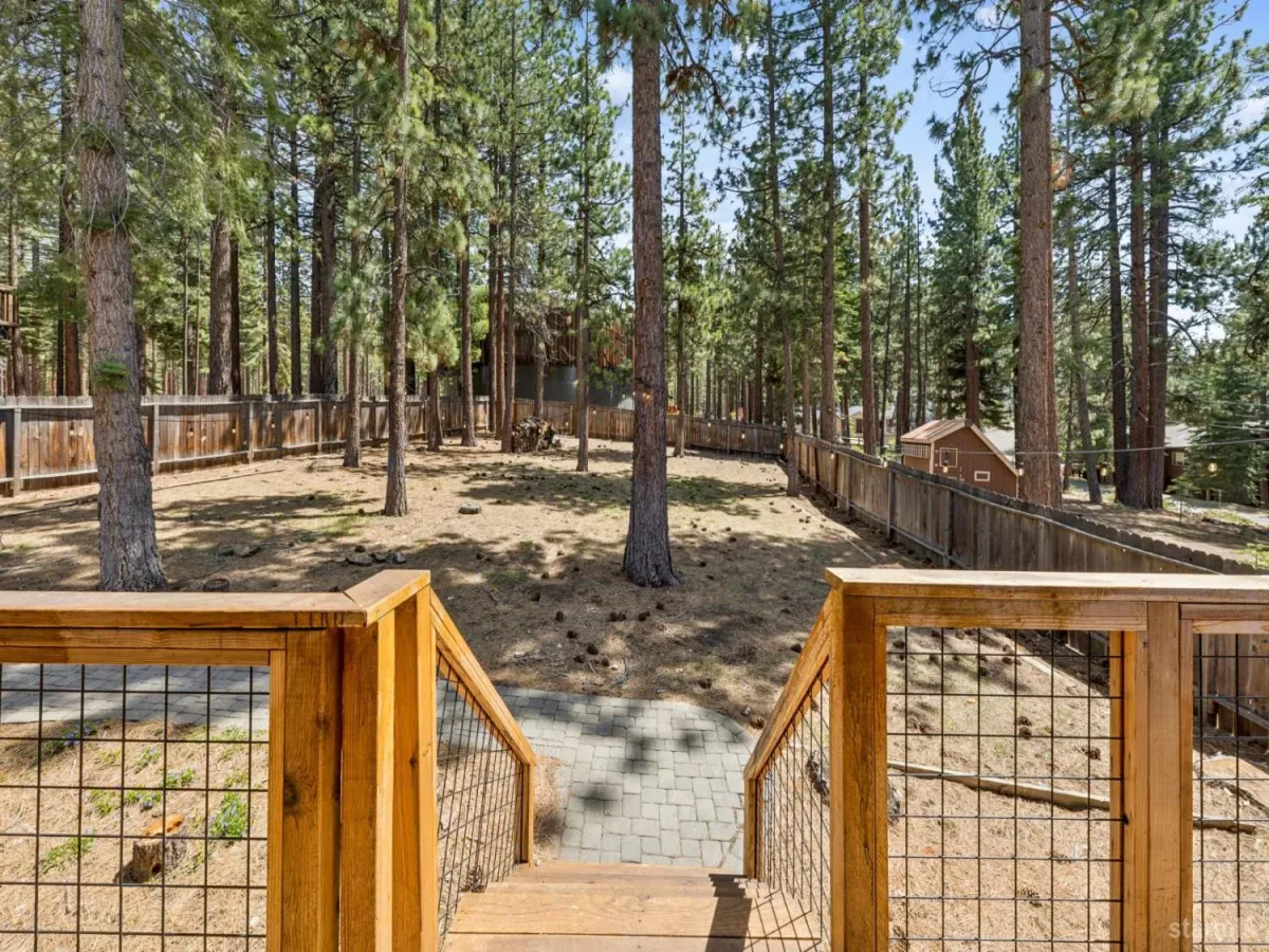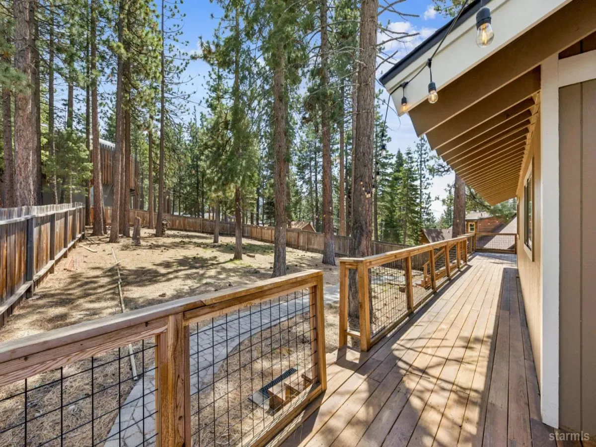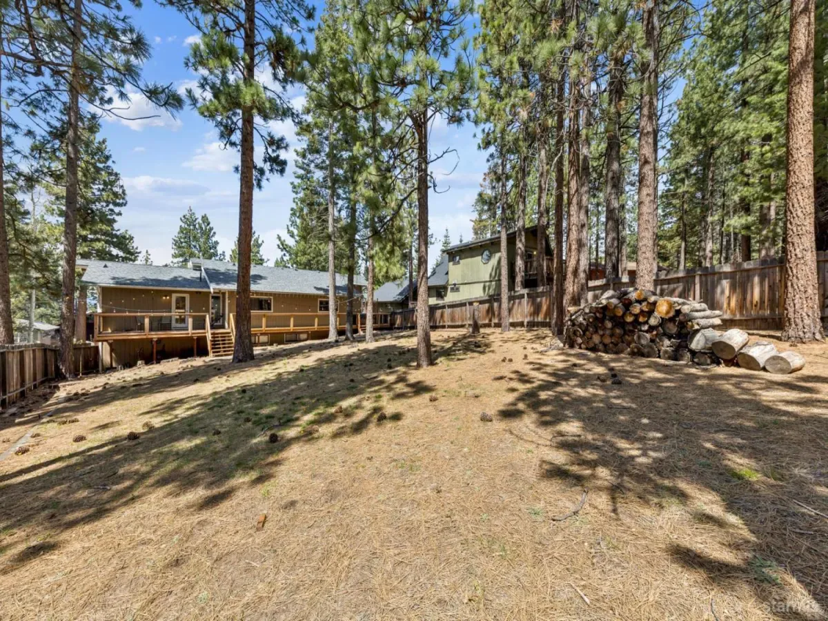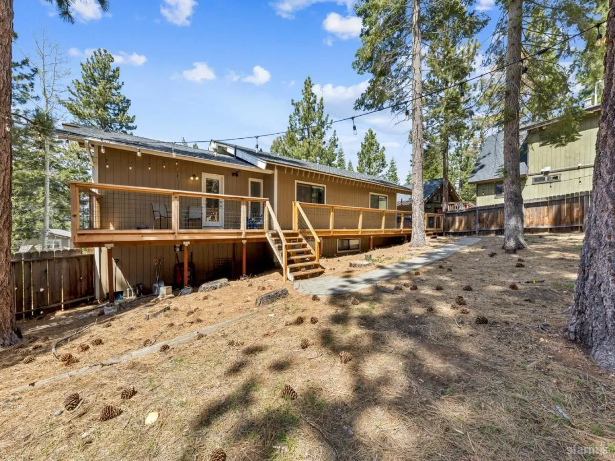 Tucked away on a quiet dead-end street in the desirable Montgomery Estates neighborhood is this inviting 3-bedroom, 2-bath home. It joins the perfect blend of comfort, space and mountain charm with direct access to the National Forest. This home features partial Lake Tahoe views plus an awesome Mt. Tallac view from the living room. This room also offers vaulted wood-lined ceilings, access to its own deck and a cozy gas stove. The large kitchen with direct access to the outdoors has custom rustic hickory cabinetry, granite slab counters, and stainless steel appliances. Step outside to a huge deck designed for enjoying the fresh mountain air, along with a private hot tub that makes every evening feel like a retreat. The oversized, fully fenced backyard leads directly to the Forest and miles of trails that lead to the year-round running Cold Creek. A two-car garage, downstairs bonus room, plus a large storage area offers plenty of room for all the Tahoe toys.