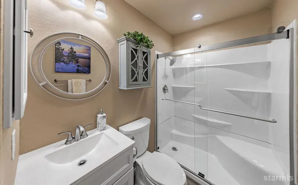 Tucked away in a peaceful neighborhood located within close proximity to the Upper Truckee River, this strikingly updated and fully furnished 2-bedroom, 2-bathroom single-story home offers comfort, style, and convenient access to the great outdoors. A covered front entryway leads you into thoughtfully renovated interior spaces featuring fresh paint, luxury vinyl plank flooring, new doors and vinyl-frame windows with window blinds, and updated lighting and electrical throughout, creating a bright, modern feel. The kitchen shines with new cabinetry, quartz countertops, and a stainless-steel farm sink, perfectly complemented by sleek Samsung stainless steel appliances. The deep single-car garage offers ample storage and functionality, complete with a new garage door lift motor and spring. Furthermore, the recently upgraded furnace and water heater provide added efficiency and peace of mind, leaving you with nothing left to do but relax and unwind. Step through the new sliding glass door to the stunning redwood back deck overlooking a spacious, fenced backyard and enjoy the fresh mountain air any time of year. And just moments from your doorstep, a nearby trailhead connects you to miles of scenic forested trails – inviting you to explore, and fully embrace the Tahoe lifestyle.