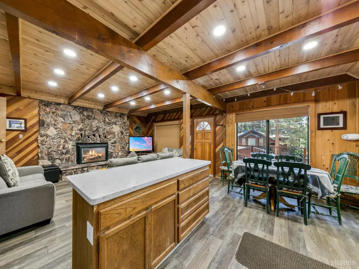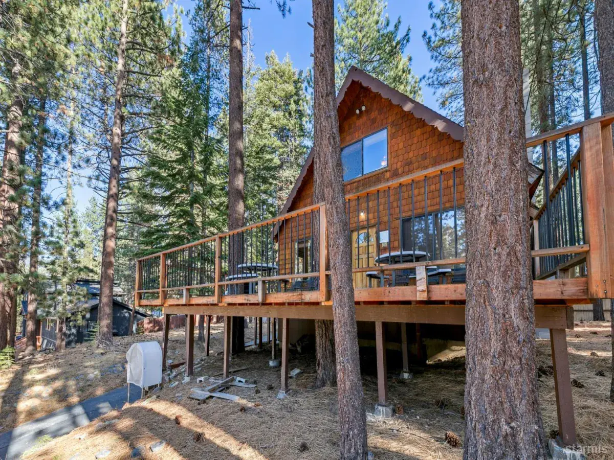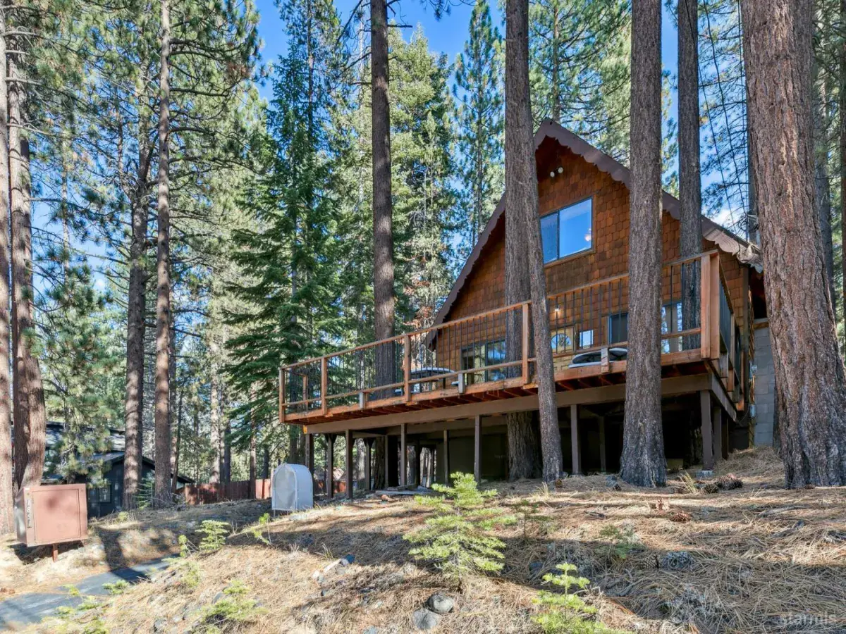 Welcome to your mountain retreat in the heart of South Lake Tahoe! This classic 5-bedroom, 3-bath cabin perfectly blends rustic charm with modern comfort, offering an inviting escape in one of Tahoe’s most desirable county locations.Step inside to discover warm wood finishes and a cozy stone fireplace that anchors the spacious great room. The open-concept layout connects the living, dining, and kitchen areas, creating the ideal gathering space for family and friends. The updated kitchen features generous counter space, and bar seating for casual meals after a long day outdoors.Upstairs, the vaulted A-frame design adds to the authentic Tahoe feel, with a versatile middle area perfect for a game room, media lounge, or extra guest space and two large bedrooms.Enjoy true indoor-outdoor living on the expansive deck, set among the towering pines. Ideal for morning coffee, evening barbecues, or simply relaxing in the crisp alpine air. With ample space for entertaining and room to unwind, this property embodies the Tahoe lifestyle.Located in the county, you’re just minutes from world-class skiing, hiking and biking trails, the lake, and Stateline’s dining and entertainment.This is the quintessential Tahoe cabin you’ve been waiting for whether as a primary residence, second home, or mountain getaway.