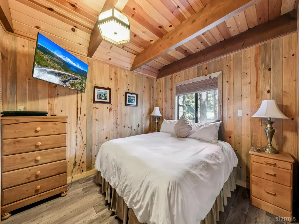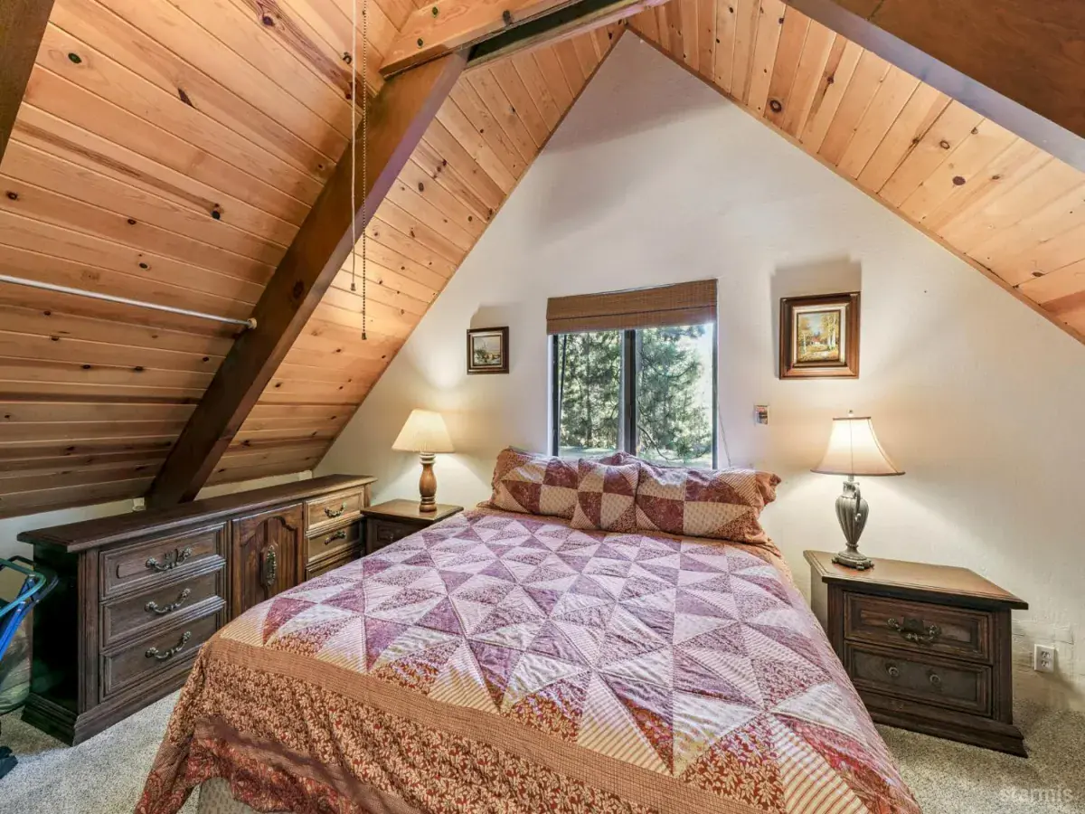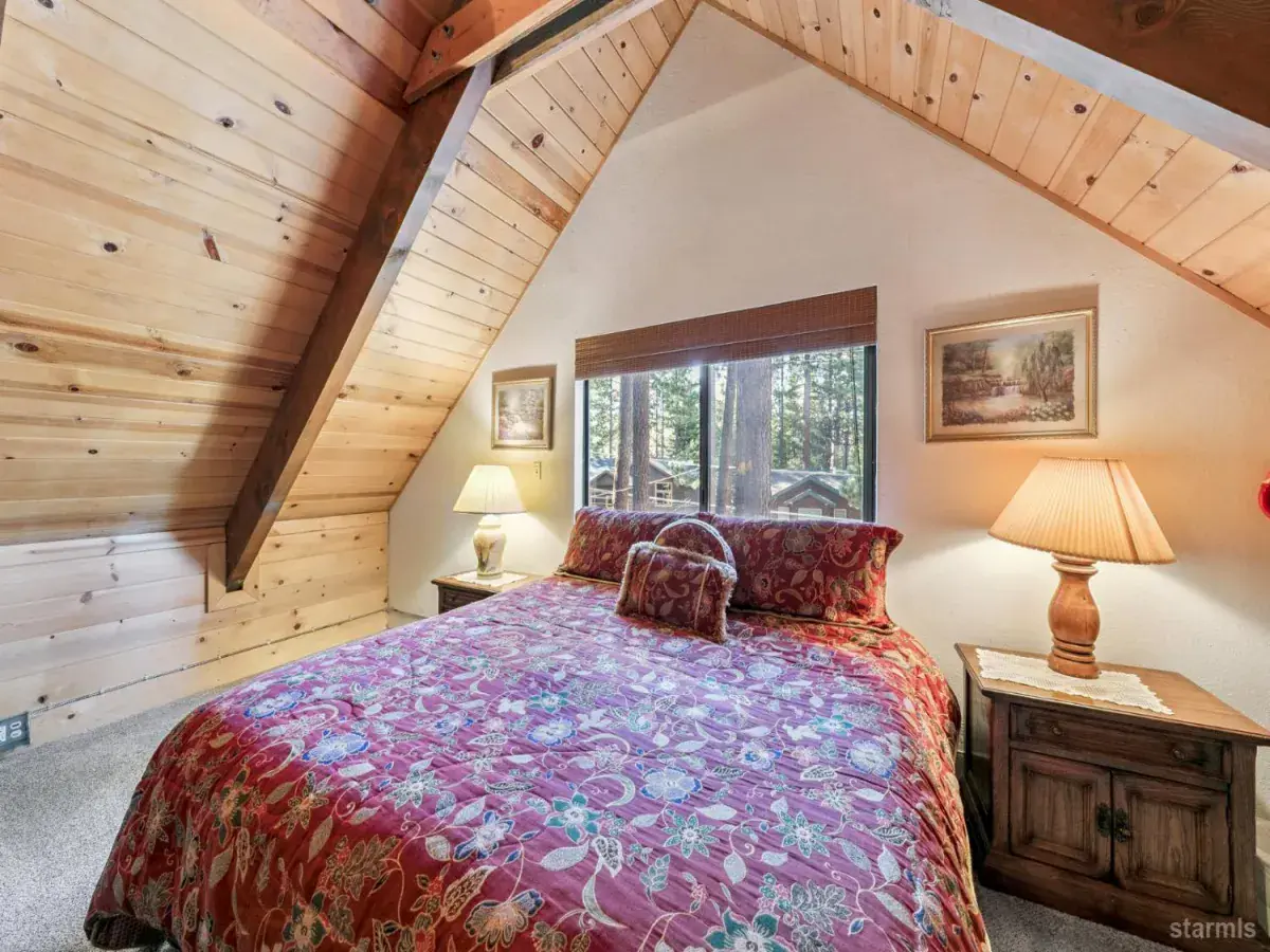 Welcome to your mountain retreat in the heart of South Lake Tahoe! This classic 5-bedroom, 3-bath cabin perfectly blends rustic charm with modern comfort, offering an inviting escape in one of Tahoe’s most desirable county locations.Step inside to discover warm wood finishes and a cozy stone fireplace that anchors the spacious great room. The open-concept layout connects the living, dining, and kitchen areas, creating the ideal gathering space for family and friends. The updated kitchen features generous counter space, and bar seating for casual meals after a long day outdoors.Upstairs, the vaulted A-frame design adds to the authentic Tahoe feel, with a versatile middle area perfect for a game room, media lounge, or extra guest space and two large bedrooms.Enjoy true indoor-outdoor living on the expansive deck, set among the towering pines. Ideal for morning coffee, evening barbecues, or simply relaxing in the crisp alpine air. With ample space for entertaining and room to unwind, this property embodies the Tahoe lifestyle.Located in the county, you’re just minutes from world-class skiing, hiking and biking trails, the lake, and Stateline’s dining and entertainment.This is the quintessential Tahoe cabin you’ve been waiting for whether as a primary residence, second home, or mountain getaway.