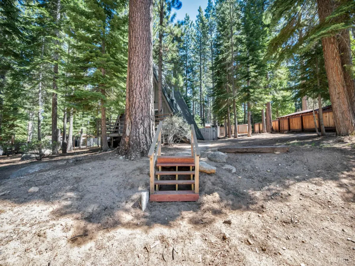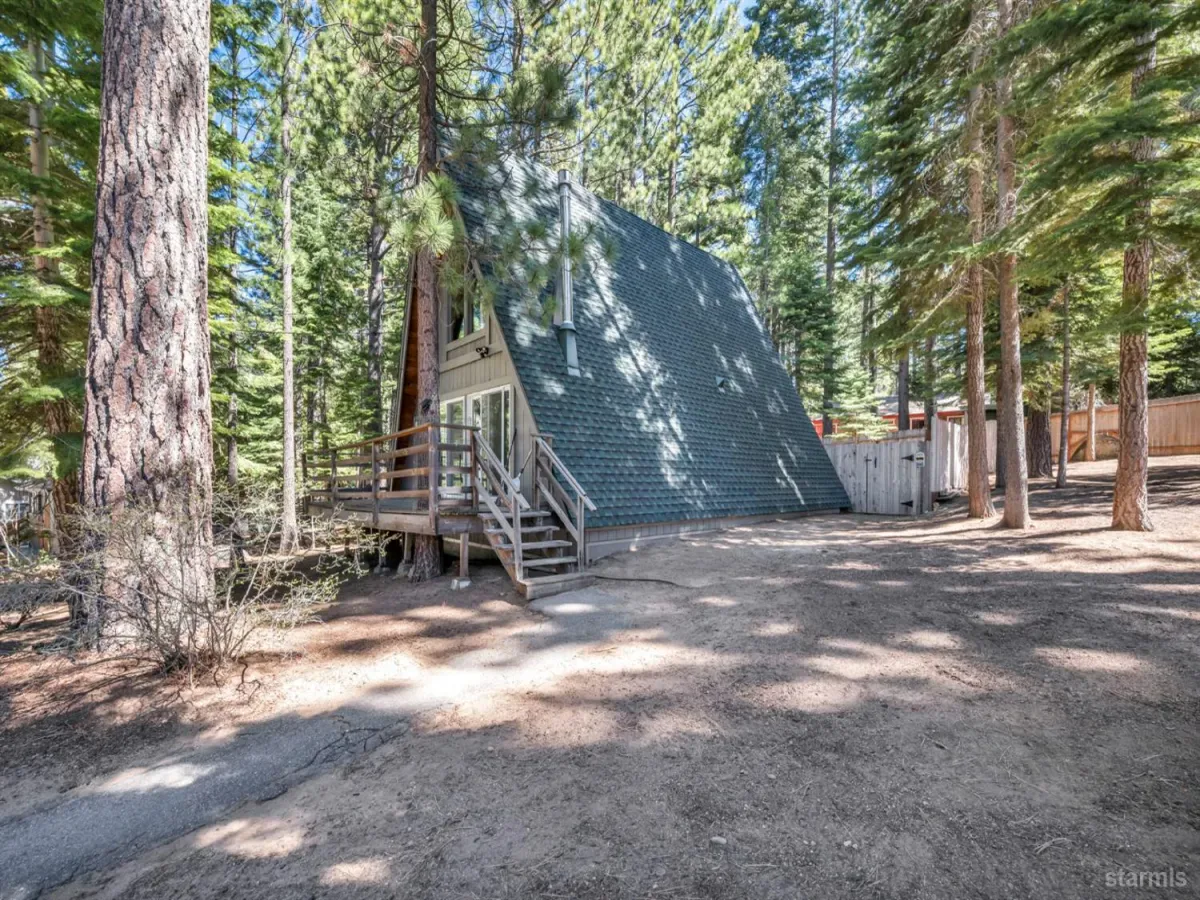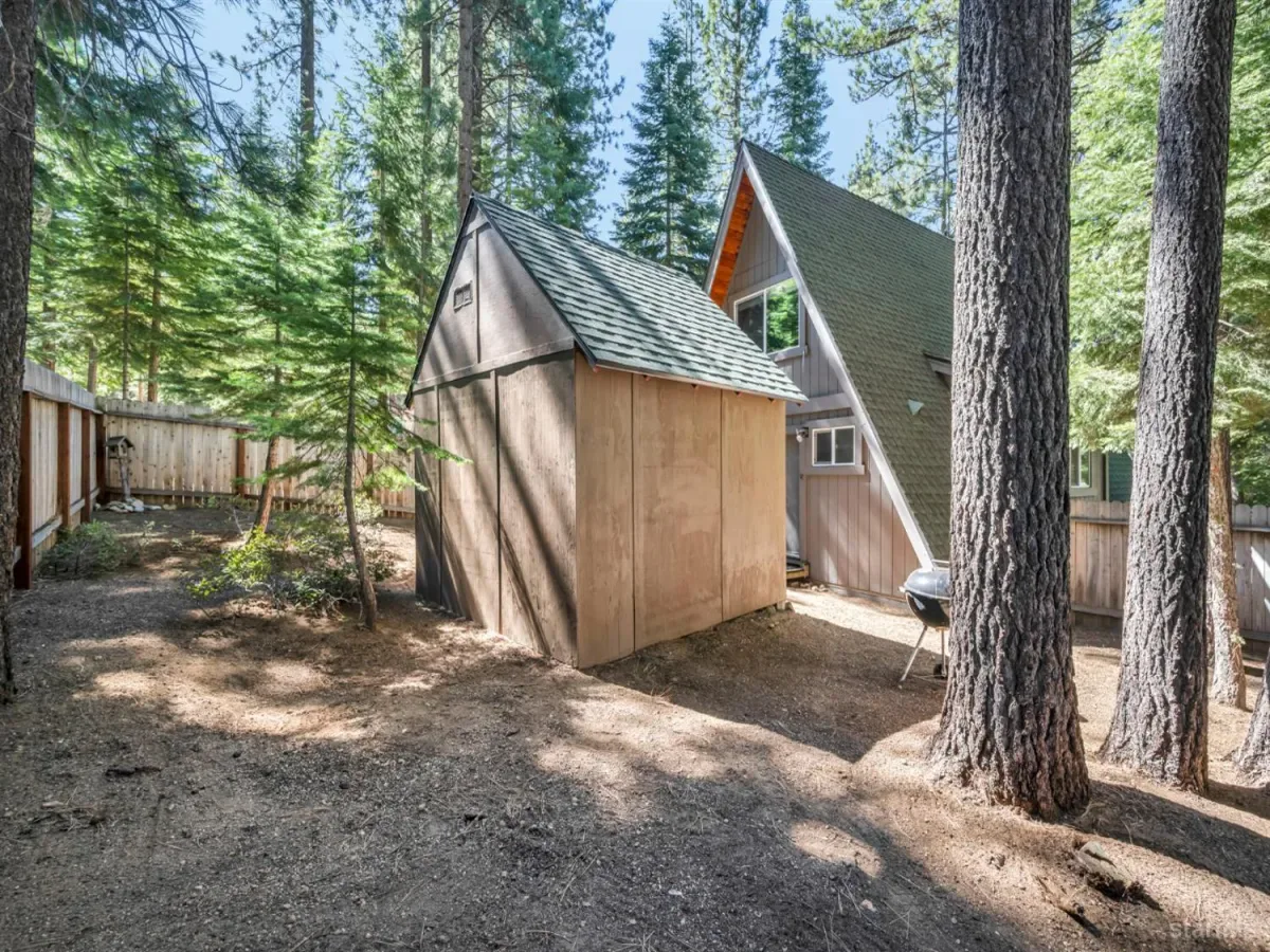 Tucked away in a quiet South Lake Tahoe neighborhood, this beautifully maintained 2-bedroom, 1-bath A-frame offers the perfect blend of charm, comfort, and mountain living. Pride of ownership shines throughout, with the home kept in exceptional condition and move-in ready. The functional layout features a kitchen that overlooks the living room, creating an open, connected feel that’s perfect for entertaining or relaxing. The living area is warm and inviting, highlighted by a cozy gas fireplace, ideal for those crisp Tahoe evenings. A wall of front-facing windows fills the home with natural light and brings the outdoors in, enhancing that classic A-frame feel. The bathroom is surprisingly spacious, adding to the home’s overall comfort and livability. Situated on a large lot, the property offers a fully fenced backyard with a storage shed, providing plenty of room for outdoor enjoyment, pets, or extra storage for all your Tahoe gear. Out front, a charming deck area sets the stage for morning coffee or unwinding after a day on the lake or slopes. This well-kept A-frame delivers both character and convenience in a peaceful setting close to everything South Lake Tahoe has to offer.