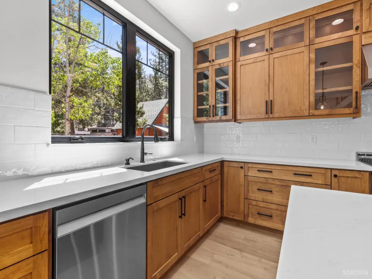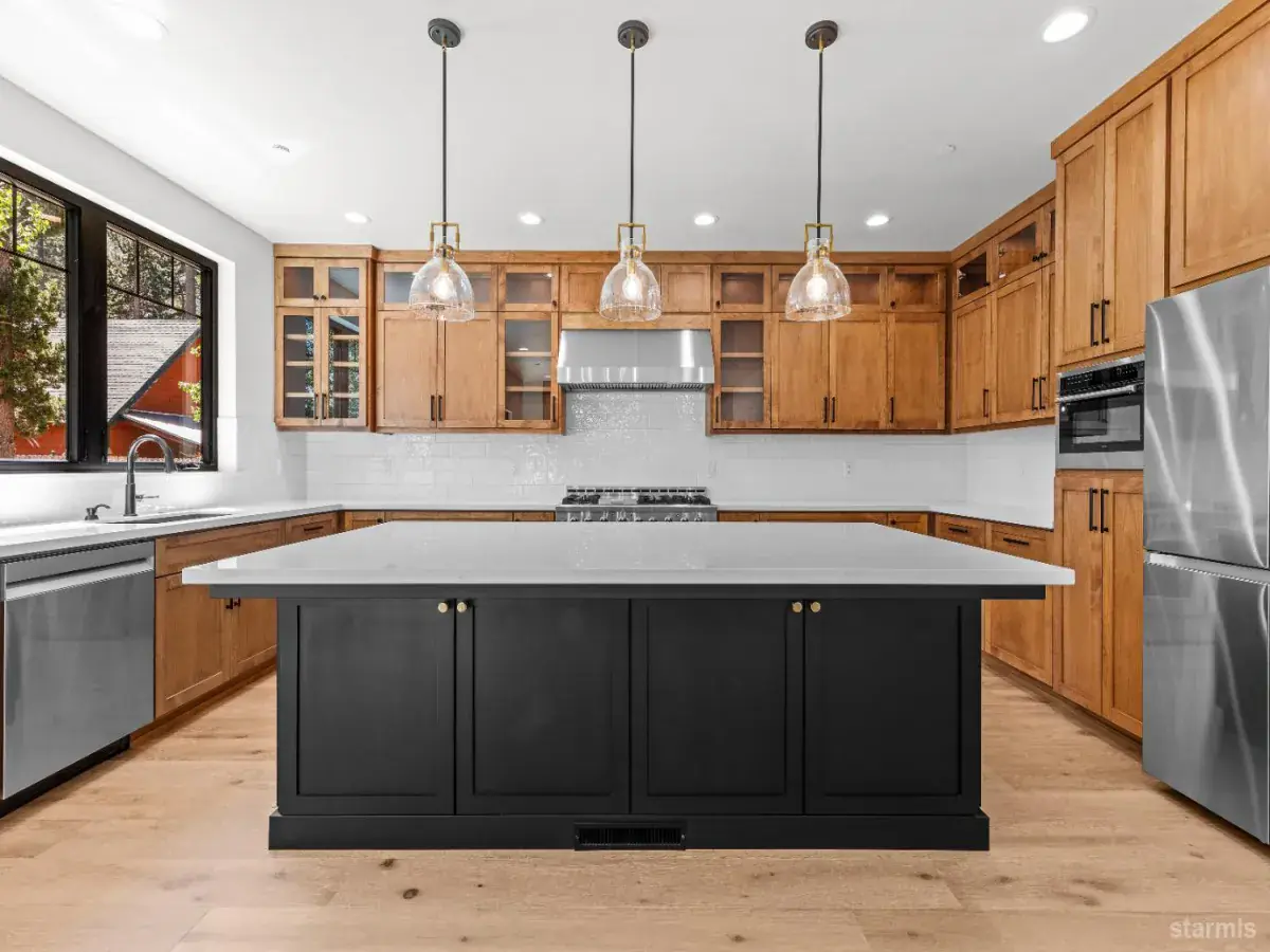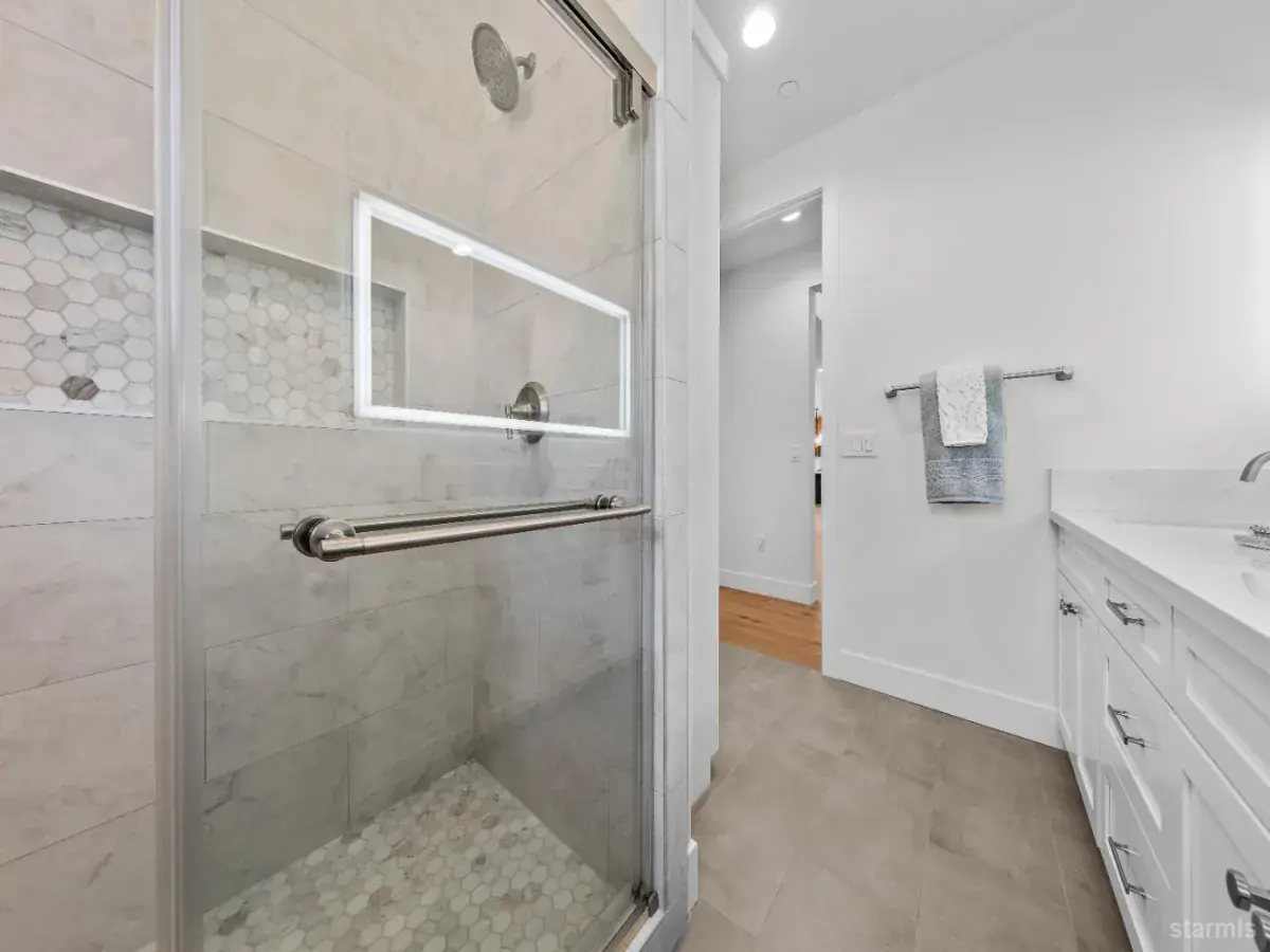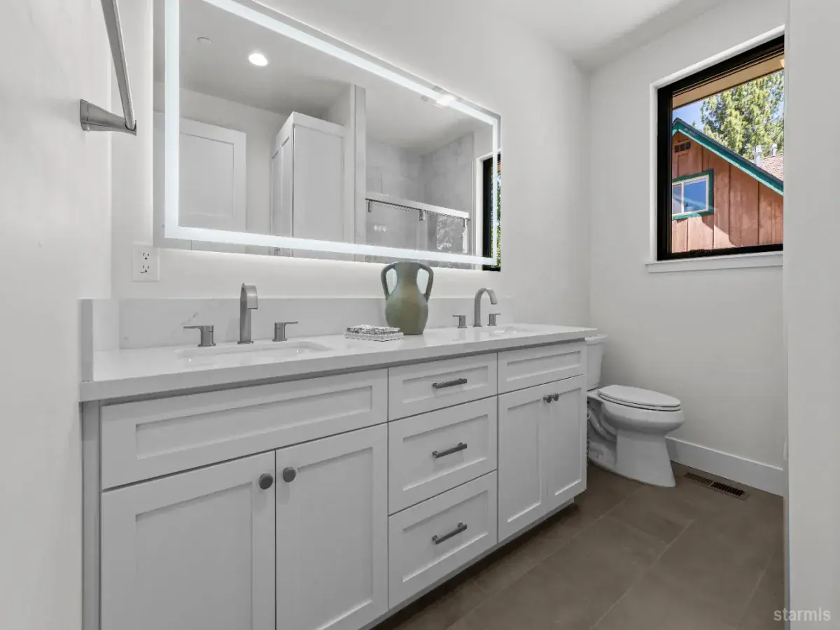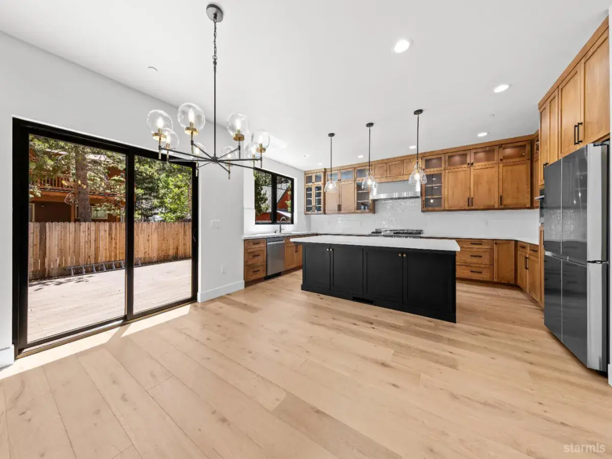 A cut above your typical new construction home! The fine mountain modern finishes and unique and functional floor plan create an elegant retreat to enjoy Tahoe living at its finest. Upon entering the home, the grand floor to ceiling fireplace is a showstopper while the open space, soaring ceilings and large picture windows flood the home with natural light. The kitchen, with an island, offers plenty of custom built cabinets and counter space for anyone that enjoys cooking. Off of the main level sits the laundry room, with a laundry chute, a deck off the back – the perfect space for entertaining on warm summer nights and a full bedroom and bathroom. Upstairs, on one side of the catwalk is the primary bedroom with a custom walk-in-closet and full bath. Across from the primary is an extra living space with two bedrooms and a full bath adjoining. Easy access to Highway 50 – just off of Echo on a level lot and minutes to the beaches, world-class skiing, the casinos and all that South Shore has to offer – you don’t want to miss this one!
