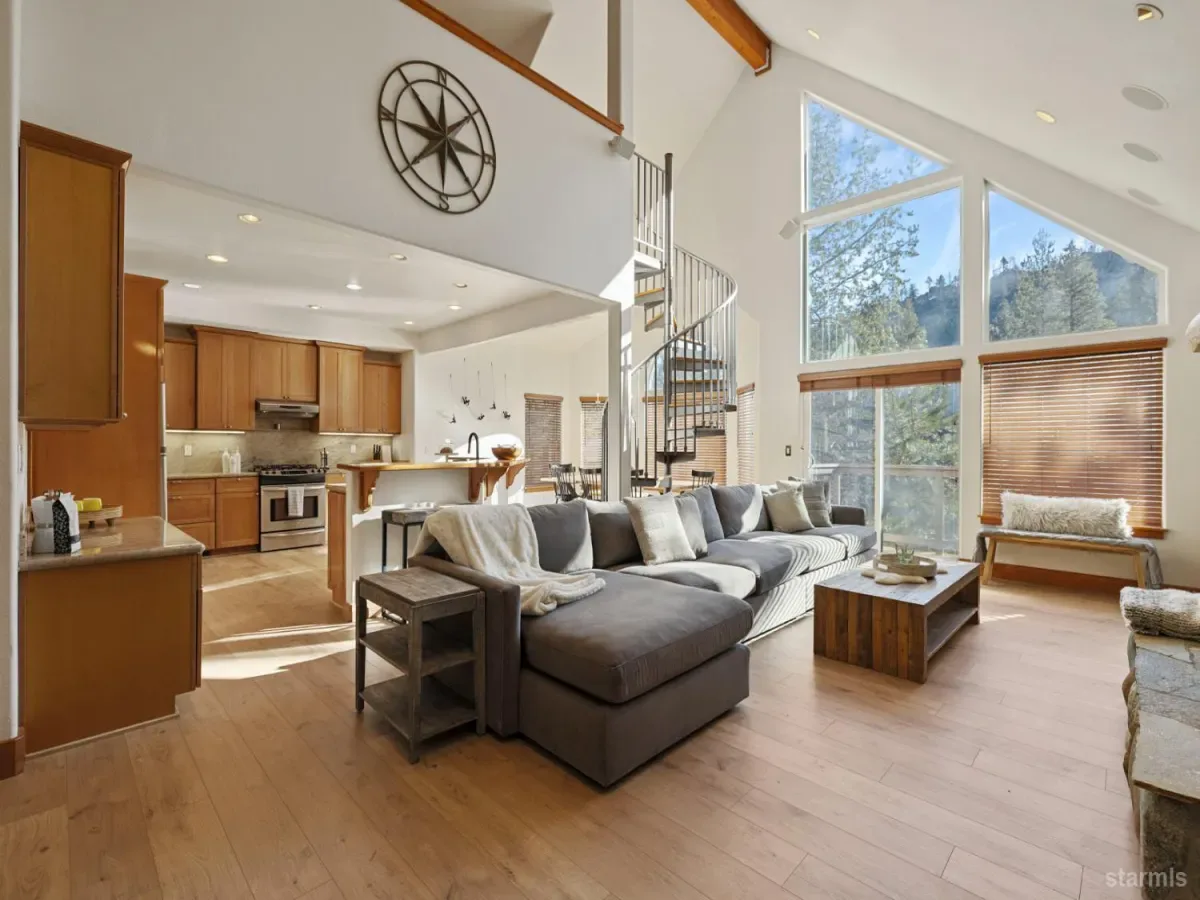 Nestled in the heart of Christmas Valley, you’ll discover a truly breathtaking property awaiting its new inhabitants. Imagine gathering in a living room designed for grand aspirations, where the eye is drawn upwards by magnificent beamed, high, and vaulted ceilings, creating an expansive and airy atmosphere. A cozy fireplace stands ready to provide warmth and ambiance, inviting moments of quiet enjoyment or lively conversation. The kitchen, a delightful hub for culinary creativity and joyous gatherings, boasts a stylish backsplash that adds a touch of flair. With a generous kitchen bar and a truly large kitchen island, there is abundant space for preparing delectable treats or simply sharing stories over coffee. The sophisticated stone countertops complement the sleek shaker cabinets, presenting a vision of both beauty and practical design. This spiral staircase is a fan favorite from young to old! Indulge in a bathroom experience where daily routines transform into refreshing rituals, featuring a beautifully designed tiled walk in shower, offering a spacious and invigorating beginning or end to your day. Beyond the interiors, this home embraces an open floor plan that encourages effortless movement and a sense of freedom throughout the living spaces. Practicality meets comfort with a dedicated laundry room, simplifying daily tasks. Outdoor delights abound with a charming patio, a spacious deck perfect for sun-drenched afternoons, and a serene balcony offering a private retreat. A thoughtfully fenced backyard provides a secure and inviting area for outdoor enjoyment and relaxation. This home captures breathtaking mountain views from every angle! This home is conveniently just 13 minutes from South Lake Tahoe’s casinos, beaches and short drive to ski resorts such as Heavenly, Sierra-at-Tahoe and Kirkwood! And don’t forget the short drive to the natural hot springs! This attractive property offers a harmonious blend of refined living and delightful outdoor spaces, poised to become the backdrop for your cherished memories.