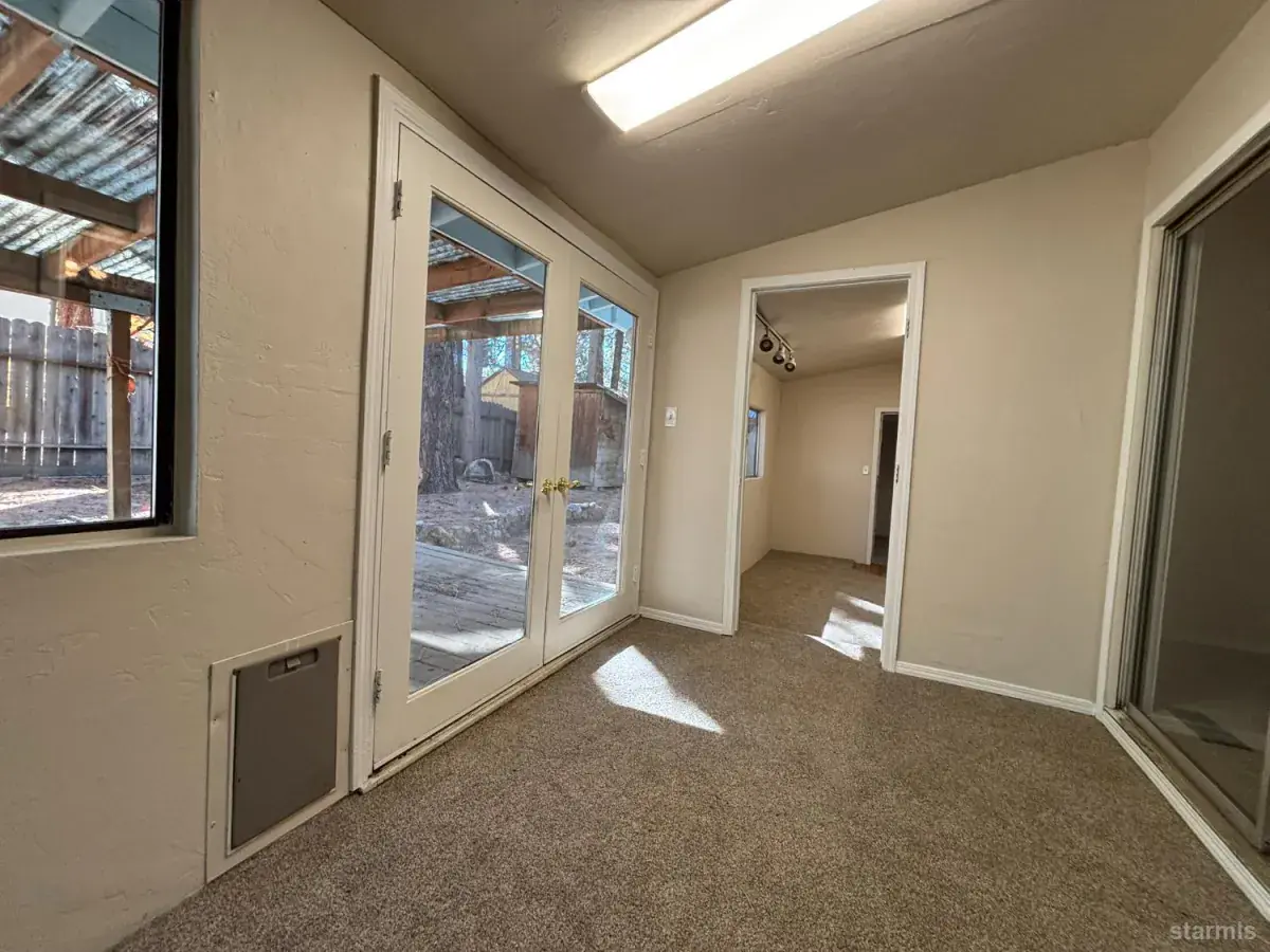 A centrally located Tahoe Sierra 4-bedroom 3-bath home. 1940 Square Foot living space including a double wide carport. with private entrance. Generational living design has a 1-bedroom, 1-bath downstairs unit with full Kitchen, Laundry room and small office. Upstairs living has 3 bedrooms and 2 bathrooms, dining area off the kitchen, sunroom and an ample family room. Master is an ensuite with slider to private deck. Yards are fully fenced with natural landscape and plenty of storage. Homeowner took advantage of Coldwell Banker Select’s, Guaranteed Sell and Refresh & Refurbished Programs in April 2025 to move and prepare this home for sell. Interior painting and flooring were replaced throughout the home. Rebuilt stairway at street, Gates, minor interior repairs and outdoor repairs were made in response to Home inspection. Home warranty transfers to Buyer, which replaced the microwave, 2 dishwashers, inspect and update electrical, incl. kitchen outlets and replacing 2 fans. Price reflects the condition and age of this property, sold AS IS. Come see in person or virtually.