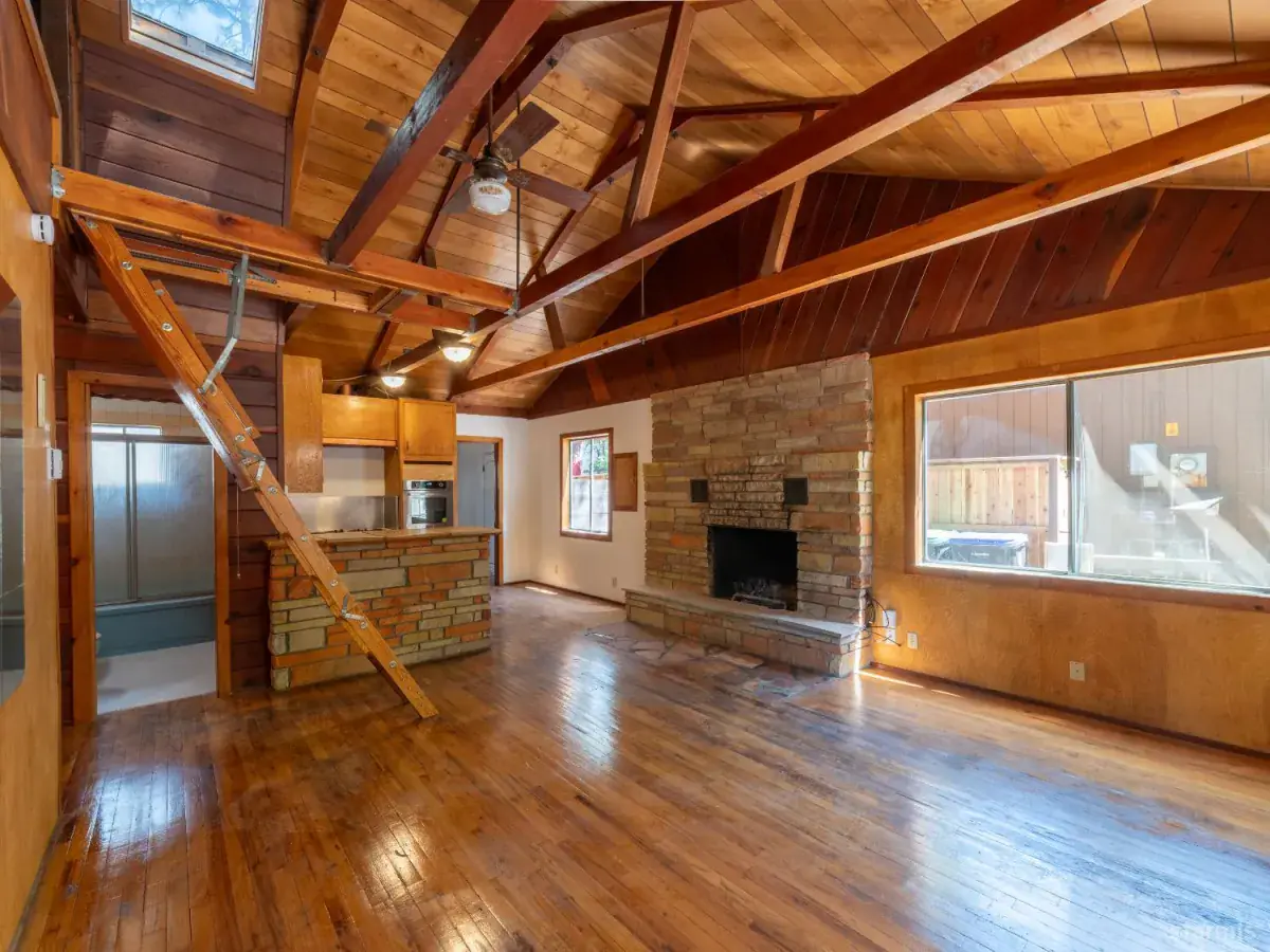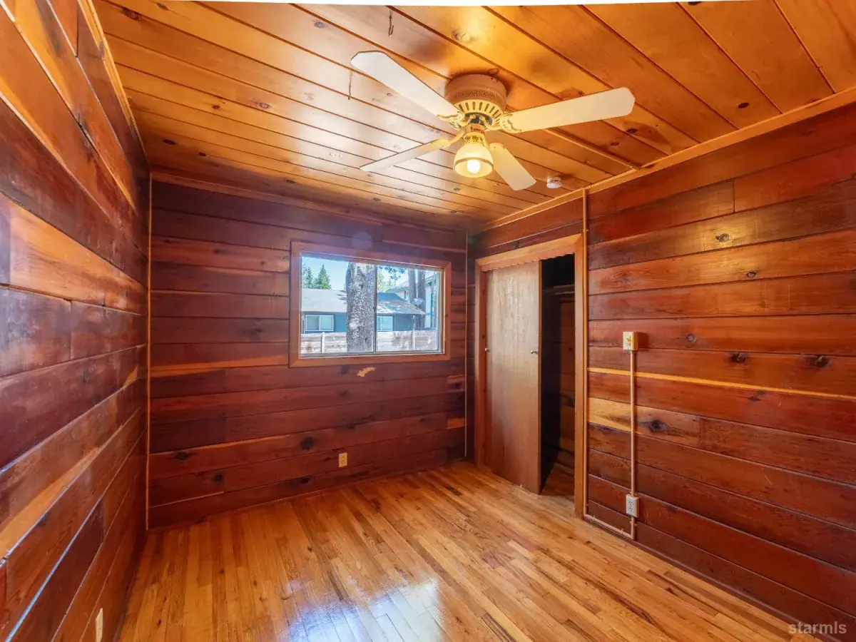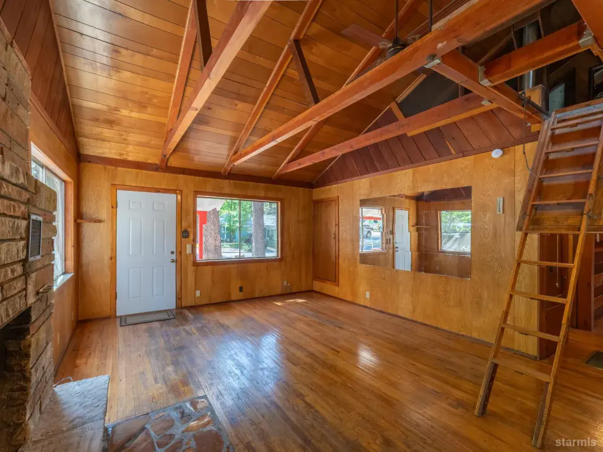 Seller wants this sold ~ priced aggressively for immediate action. This refreshed knotty pine Tahoe cabin delivers classic mountain character with smart modern updates and is ready for its next owner now. Vaulted, open-beam ceilings create an airy feel, while 930 sq. ft. offers an efficient, comfortable layout ideal for a full-time residence, weekend escape, or income-producing retreat.Inside, you’ll find newly refinished wood floors, fresh interior and exterior paint, two generous bedrooms, and an upstairs sleeping loft perfect for guests or a cozy hideaway. Recent improvements matter here: a brand-new oven and range, a fully fenced backyard, and a new 18,000 BTU heat pump providing both heat and A/C (installed 9/26/25). The oversized laundry room doubles as a pantry and storage, with flexibility for gas or electric dryer hookups (electric plug has been disconnected). Off-street convenience comes with a paved two-car parking pad.Just two blocks from Hwy. 50, this central location puts transportation, shopping, dining, and year-round recreation within easy reach. With over $32,000 in recent upgrades, plus pest and home inspections already completed with clearance, this home is truly move-in readyno guesswork, no delays.Adding to the upside, the City’s revised Vacation Home Rental ordinance is now accepting new applications, opening the door to rental income when you’re not using it.The seller has done the work, adjusted the price, and is serious about a sale. If you’re looking for a Tahoe cabin that’s ready today and priced to move, this is one you don’t wait on.Note: The furnished living room photo has been virtually staged. The home is vacant.
