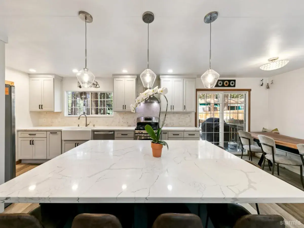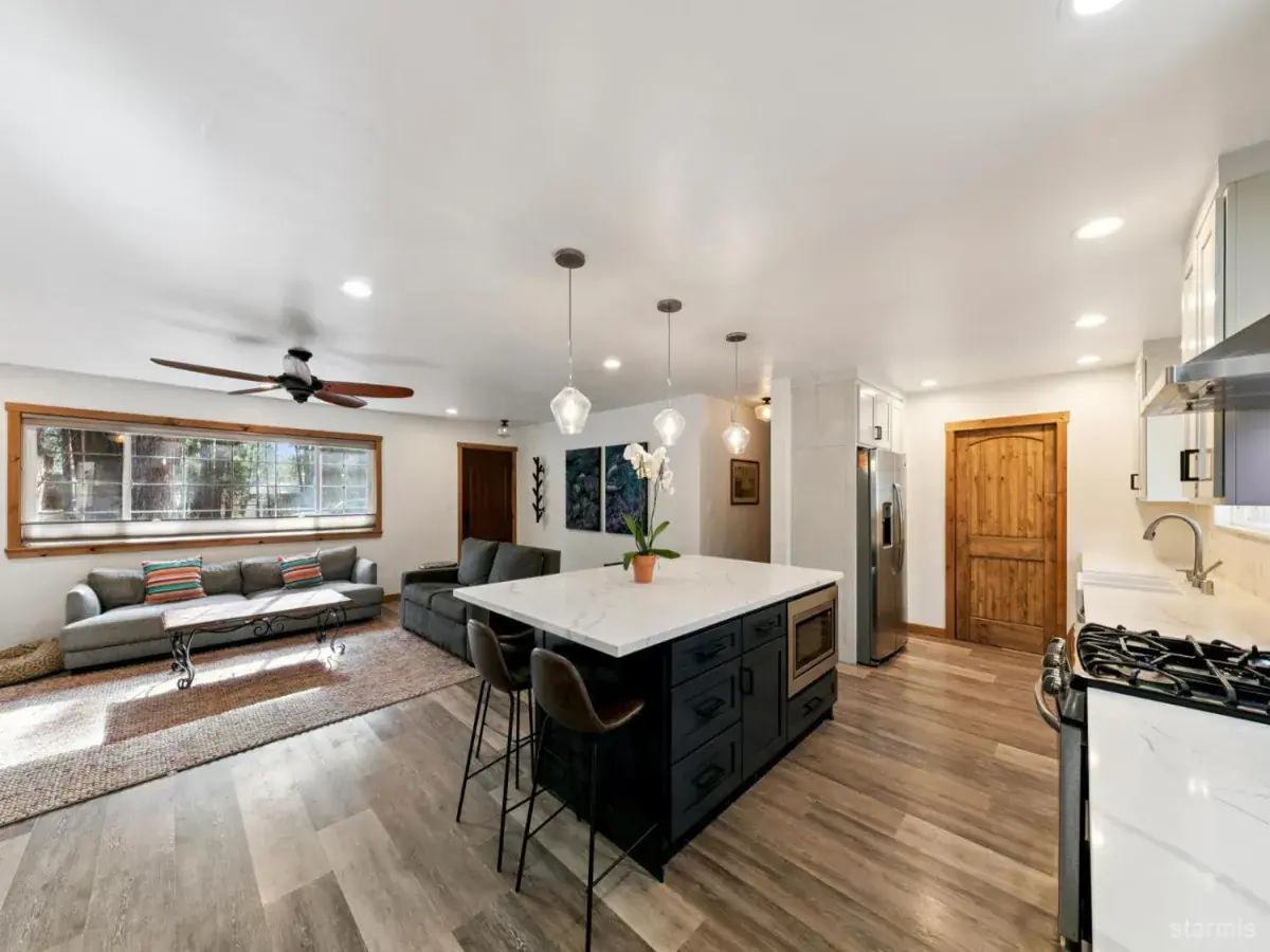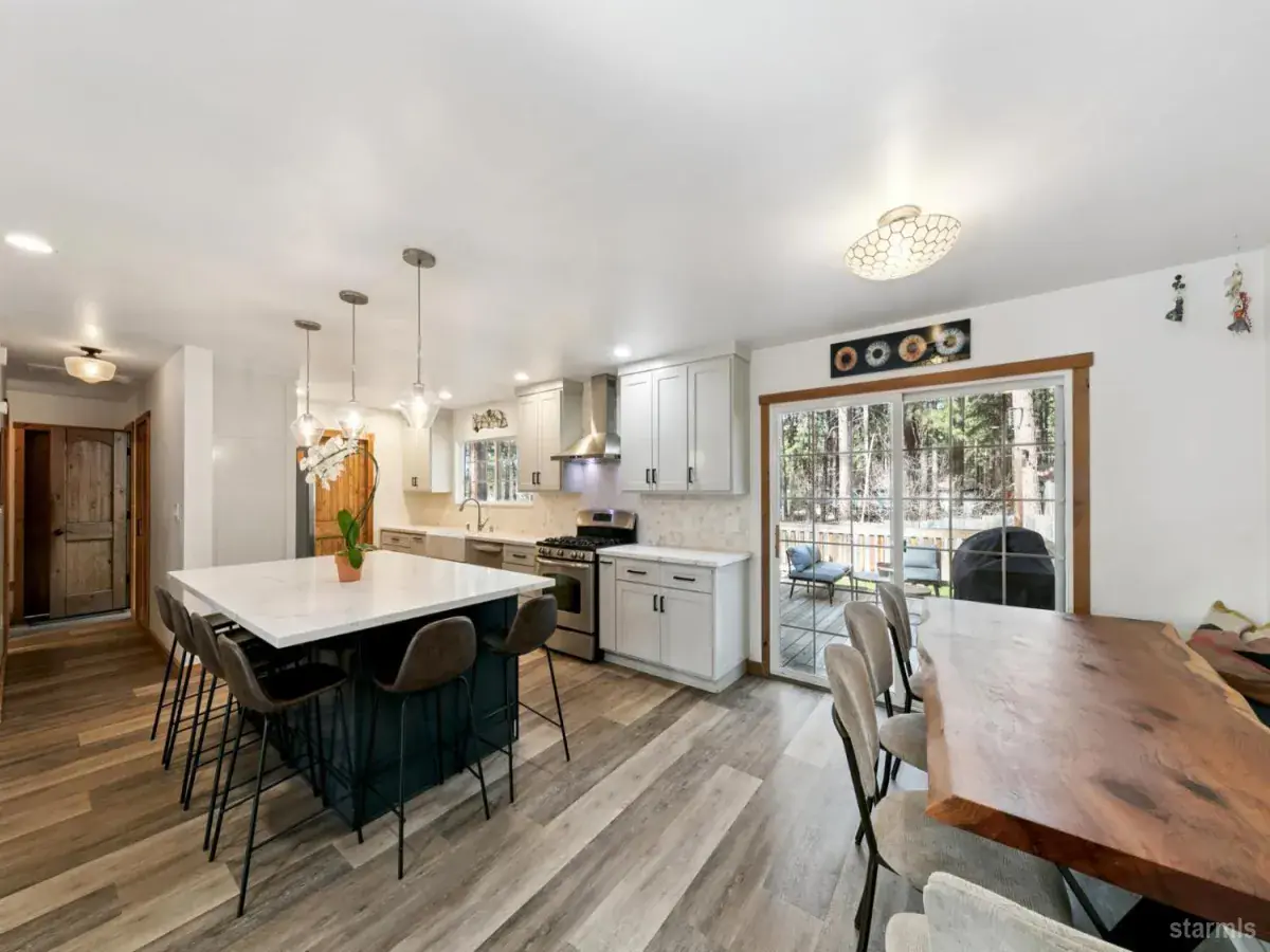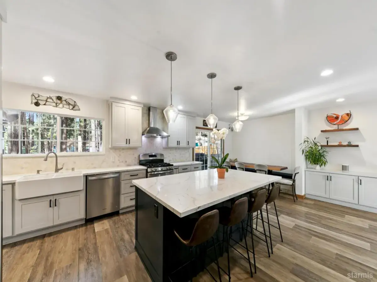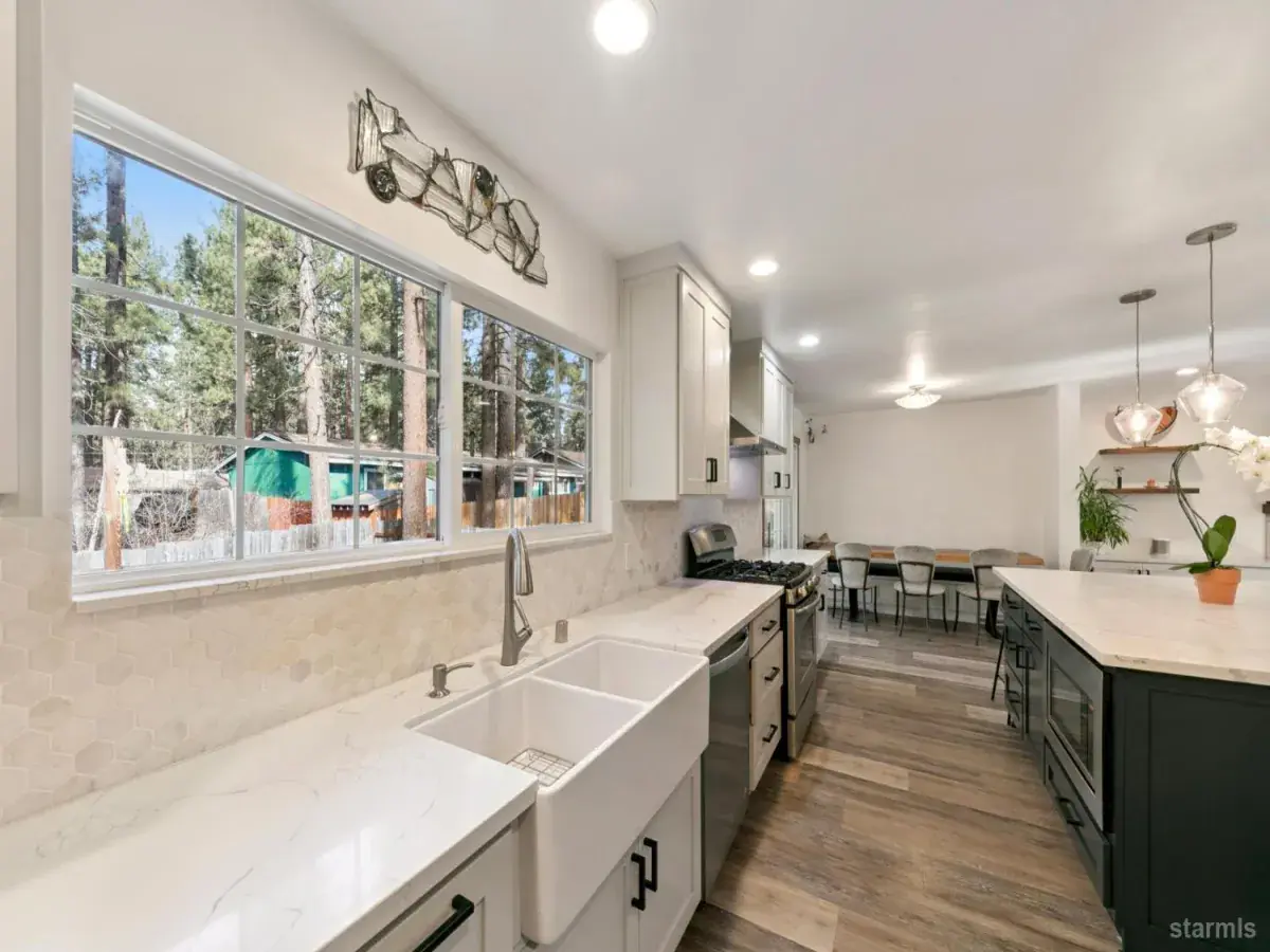 Backing to tranquil government lots, this South Lake Tahoe retreat perfectly combines modern style, mountain ambiance, and thoughtful craftsmanship. The heart of the home is the beautifully remodeled kitchen a true gathering space designed for connection and comfort. Custom cabinetry, stunning quartz countertops, stainless steel appliances, and an inviting open-concept layout make it the ideal centerpiece for entertaining or unwinding after a Tahoe adventure.Throughout the home, next-level upgrades showcase attention to detail and quality. The bathrooms have been newly updated with designer tile, sleek fixtures, and contemporary finishes that echo the home’s clean, modern aesthetic. Each space balances form and function, creating a cohesive flow that feels both refined and relaxed.With it’s seamless blend of mountain warmth and modern sophistication and the privacy of backing to open government land 3343 Janet Drive stands out as a true Tahoe home designed for today’s lifestyle.
