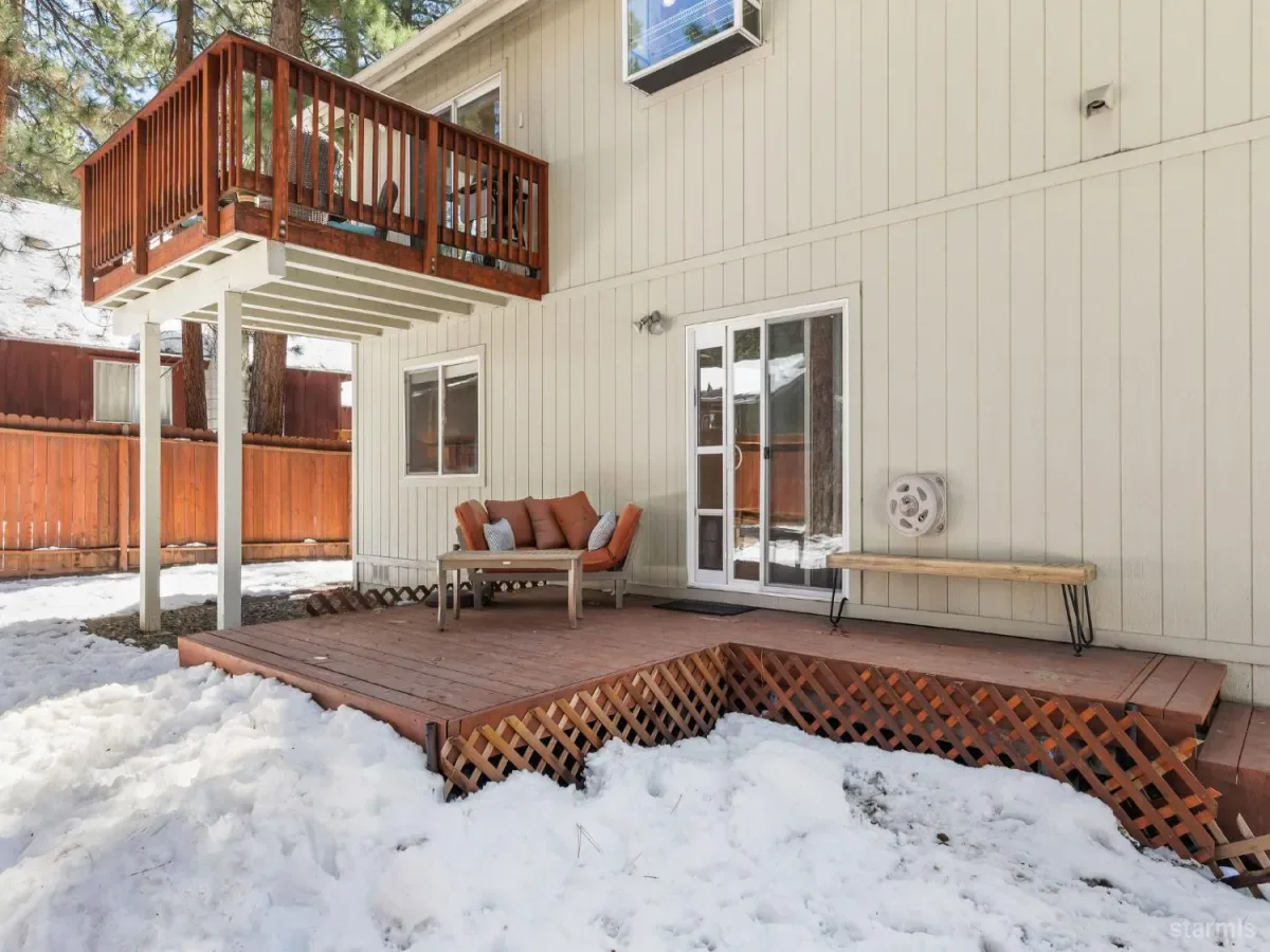 This Bijou home offers a rare combination of newer construction and in-town convenience. Built in 2003, it stands out for the neighborhood, with a two-level layout that includes 3 bedrooms, 2.5 baths, and a clean, modern feel throughout.Located just minutes from Heavenly Ski Resort California Base Lodge, you’re only a few minutes more to the gondola, casinos, restaurants, Lake Tahoe, and nearby walking trails. Set along one of Tahoe’s main bike paths and near Power Line Trail, it’s an easy starting point for year-round outdoor access.Inside, the layout is functional and easy to live in. The kitchen features granite countertops and premium Bosch appliances with a simple, updated finish. The primary suite, located on the upper level, has its own spacious deck, accessed through a new Andersen door for easy indoor-outdoor flow. A second deck off the kitchen extends the main living space, ideal for morning light or quiet evenings. Downstairs, there are two bedrooms, a full bath, a secondary living area, and access to the oversized two-car garage.Southern exposure fills the home with natural light throughout the day, while dual-zone air conditioning, a rarity in Tahoe, keeps things comfortable in the warmer months. The laundry area is conveniently located in the half bath near the primary bedroom.With newer construction, great natural light, and a highly desirable in-town location, this home offers a clean, low-maintenance basecamp for Tahoe living in every season.