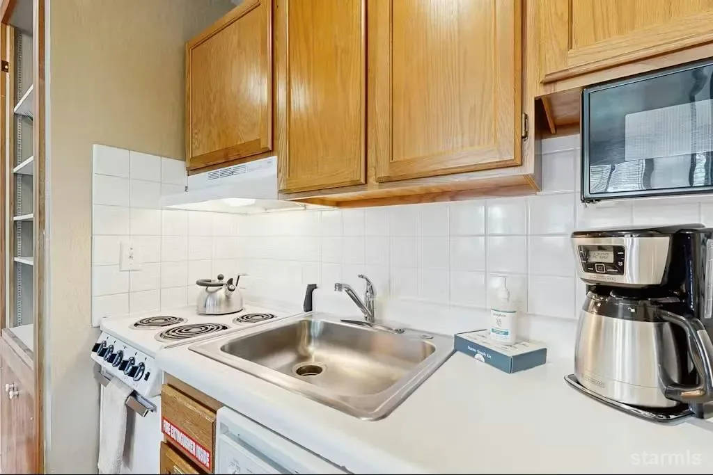 This charming Lakeland Village condo offers a warm, inviting Tahoe vibe with solid‑surface flooring throughout and a beautifully remodeled designer bathroom featuring a stall shower, built‑in bench, and stylish tilework. A freestanding cone fireplace adds an extra touch of cozy mountain character.The home is being sold fully furnishedincluding electronics and complete kitchen accessoriesmaking it truly move‑in ready. Its location is exceptional: just steps from the year‑round heated pool and hot tub, with the covered deck offering lovely views of the pool area and the surrounding towering pines.Convenience is built in. This first‑floor unit sits close to the community laundry room, small fitness center, and saunas. Elevator access connects you directly to the covered, unassigned parking garage.Situated in the main lodge building, the condo is only a two‑minute stroll along private paver pathways to the newly built homeowners‑association pier and more than 1,000 feet of what is arguably the best sandy beach in South Lake Tahoe. Down at the shoreline, residents enjoy three fire pits, a seasonal lakeside pool, a year‑round heated hot tub, and summertime beach chairs, loungers, and BBQ grills. The pier is the perfect place to take in breathtaking sunrise and sunset views.Lakeland Village is a true year‑round resort community with 260 privately owned homes. For those interested in generating income, the City of South Lake Tahoe has approved Lakeland Village for short‑term vacation rental permits. The seller is also offering attractive owner financing with 50% down and negotiable rate and term.