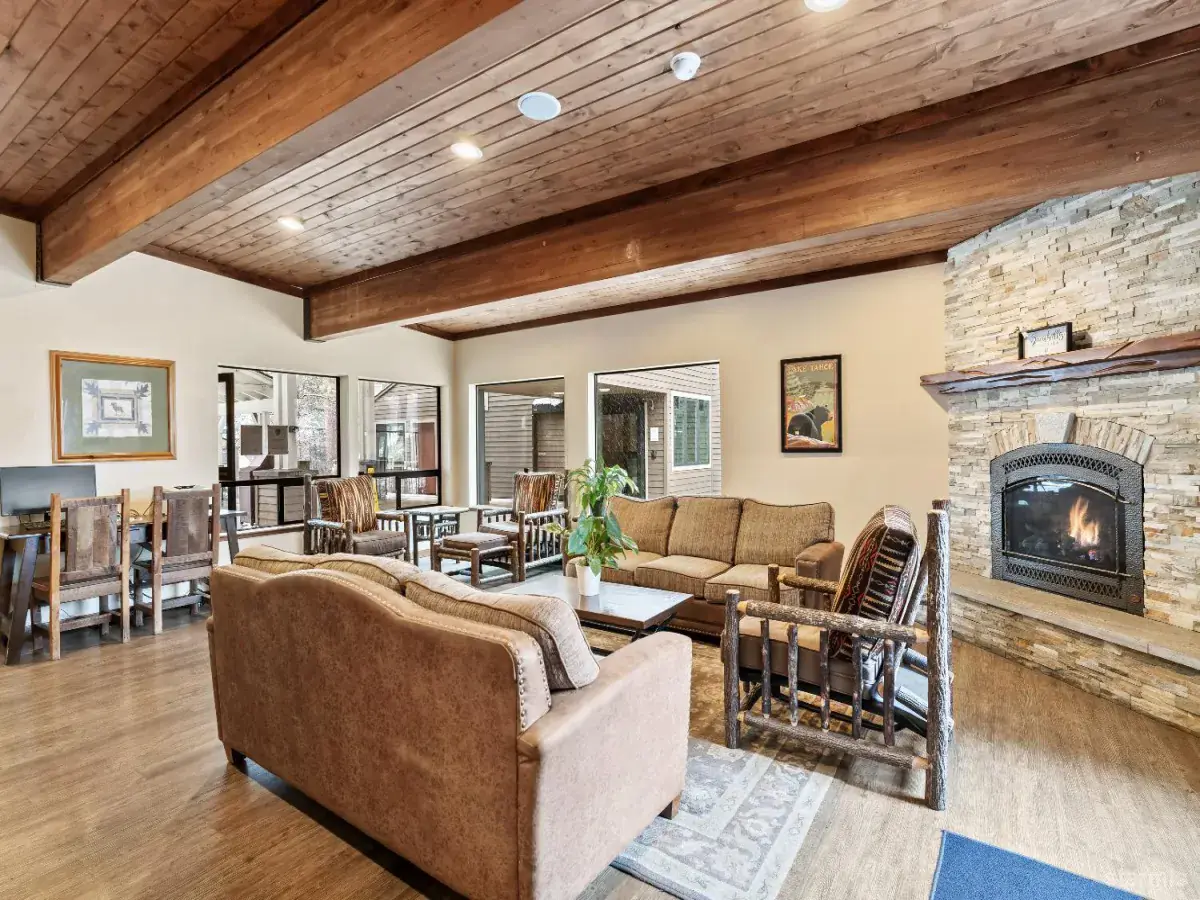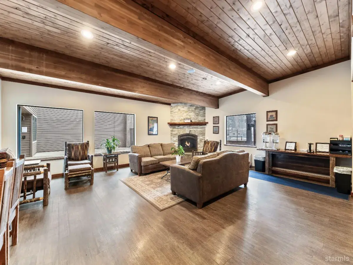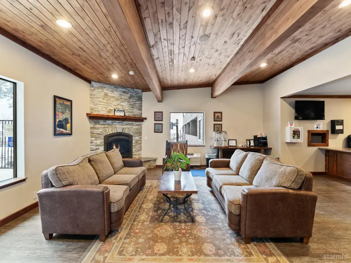 Lakeland Village isn’t just a place to liveit’s an experience. Nestled along the shores of South Lake Tahoe, this premier lakefront community offers breathtaking views of the Sierra Nevada Mountains and unparalleled access to the lake and pristine beaches. Designed for both relaxation and recreation, residents enjoy resort-style amenities, including a full-size outdoor lap pool, spa, and multiple outdoor seating areas perfect for taking in the mountain air. The beautifully appointed lobby, complete with cozy seating areas and a welcoming fireplace, sets the tone for this exclusive retreat. A well-equipped fitness center, private pier, and convenient access to shops, restaurants, and Heavenly Resortless than two miles awaymake Lakeland Village an exceptional opportunity for homeowners and investors alike. With the added flexibility of short-term rentals, this is more than a homeit’s a lifestyle. Unit 313 is a charming two bedroom, two-bath condo that perfectly balances Tahoe’s rustic charm with modern comforts. As you step inside, you are welcomed by soaring ceilings and an abundance of natural light streaming through large windows, framing serene treescape views.