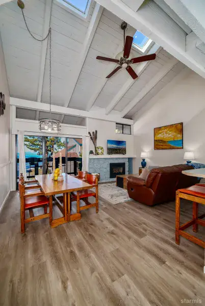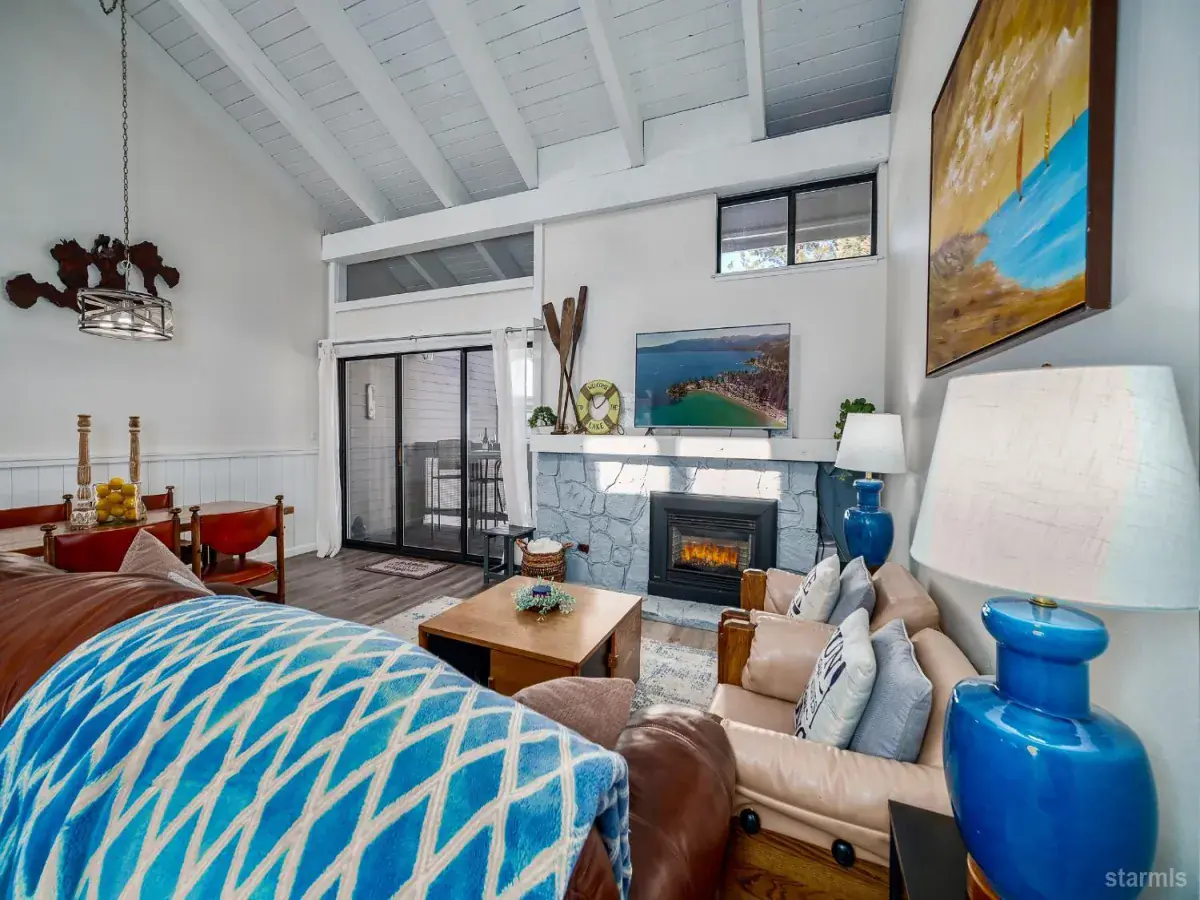 Wake up to breathtaking lake and beach views in this beautifully situated Lakeland Village condo, offering rare private beach access and a front‑row seat to the best of Lake Tahoe. Located in the highly desirable Tourist Corewhere STR rentals are fully approvedthis home blends investment potential with the perfect mountain‑lake lifestyle.Inside, the space feels bright and airy thanks to vaulted ceilings, abundant natural light, and an inviting open‑concept layout. The living area centers around a cozy gas fireplace, creating a warm gathering spot after a day on the lake or slopes. Enjoy stunning lake views from multiple rooms, making every moment feel like a getaway.The floor plan is both functional and flexible, featuring two comfortable bedrooms on the main level and a spacious loft upstairs that can serve as an additional sleeping area, office, or bonus room.Whether you’re seeking a serene retreat, a high‑demand rental property, or both, this condo delivers the ideal blend of comfort, location, and Tahoe charm.