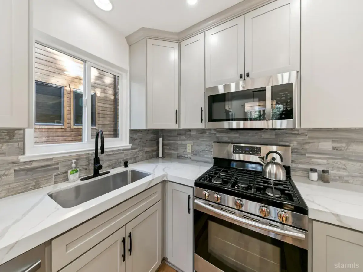 STR update: The proposed ordinance revisions include removal of the 150 foot buffer and a 900 permit residential cap. Hearings are scheduled for March with anticipated implementation in late April. STR buyers should prepare for potential permit competition.Currently priced below recently appraised value! Located in a CA Opportunity Zone which offers certain tax advantages to buyers. Outstanding recently remodeled home just down the street from world class Heavenly ski resort! Located on a large, approximately 1/4 acre wooded lot a mile from Lake Tahoe and within minutes to the casinos, gaming and nightlife at the Stateline. The home features 5 bedrooms and 3 full bathrooms. All the rooms are large and feature king beds. Enjoy the large walk around deck which allows access to a huge flat and level back yard. Recent upgrades to the home feature a new roof, hard wood floors throughout, new paint and carpet and new double pane vinyl windows. The kitchen is adorned with all new appliances, quartz custom counter tops with stone backsplash, and Shaker Toupe white cabinets. The first-floor bathroom has new tile flooring, vanity and a tub/shower combo. The guest bath on the second level also includes new tile flooring, vanity and a large stall shower. Additionally on the upper level is the primary bedroom with private bathroom also with new tile flooring, vanity and large stall shower. As a bonus there is also a dry SAUNA on the second level. Across the street is a forest service lot and there is a large 2 car garage with roof top deck with the potential for a future ADU style development. This stunning home in a wonderful location offers huge rental potential and exciting Lake Tahoe Living! Located in one of the rare CA opportunity zones which could provide tax advantages to buyers. If you are looking for a Heavenly area Lake Tahoe home this one is not to be missed.