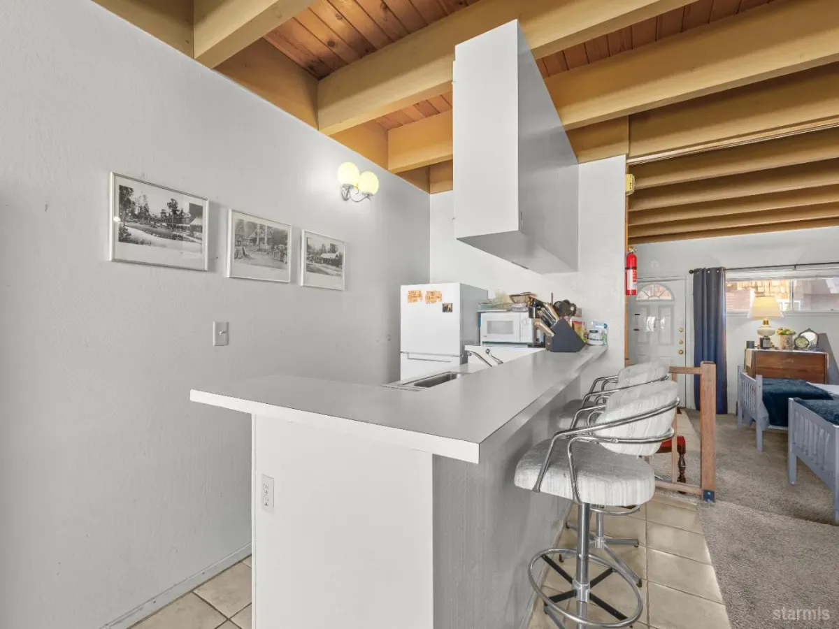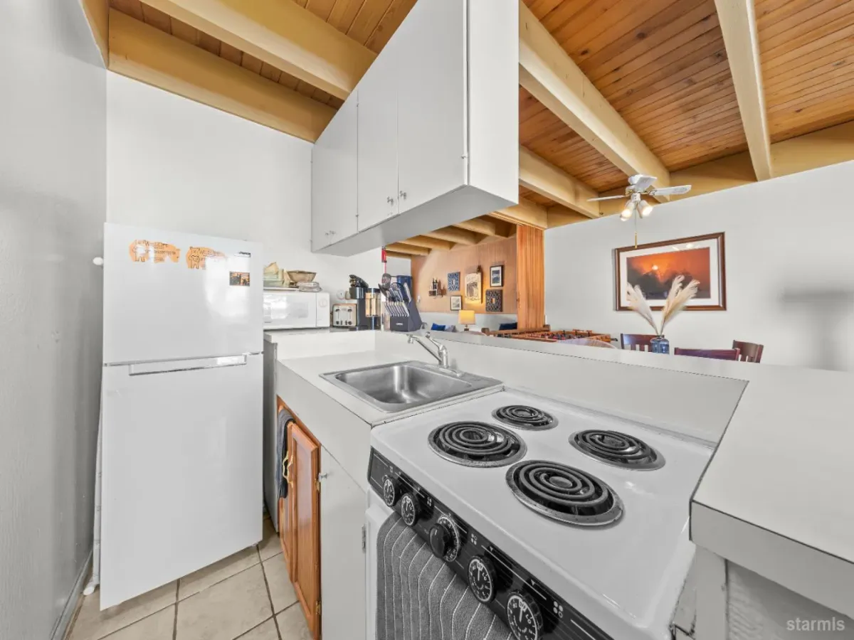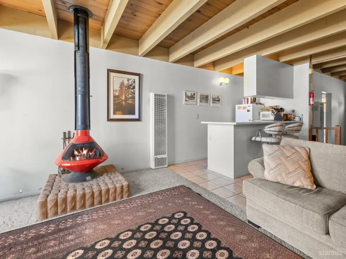 Welcome to your Tahoe Keys getaway! This charming single-story condo features one bedroom and one bathroom, offering a cozy and comfortable retreat. Centered by a showpiece pot-belly fireplace with an open concept living space, the bedroom is split off by accordion doors to give plenty of privacy. Enjoy the convenience of a boat dock just steps away for endless summer fun on the lake. From the condo, views of the tennis courts, open space and mountains offer a mix of entertainment and tranquility. The bulkhead assessment has been paid and the Tahoe Keys POA features two pools, private beaches, hot tubs, tennis courts, a playground, security and so much more. Embrace the lake lifestyle in this wonderful condo!