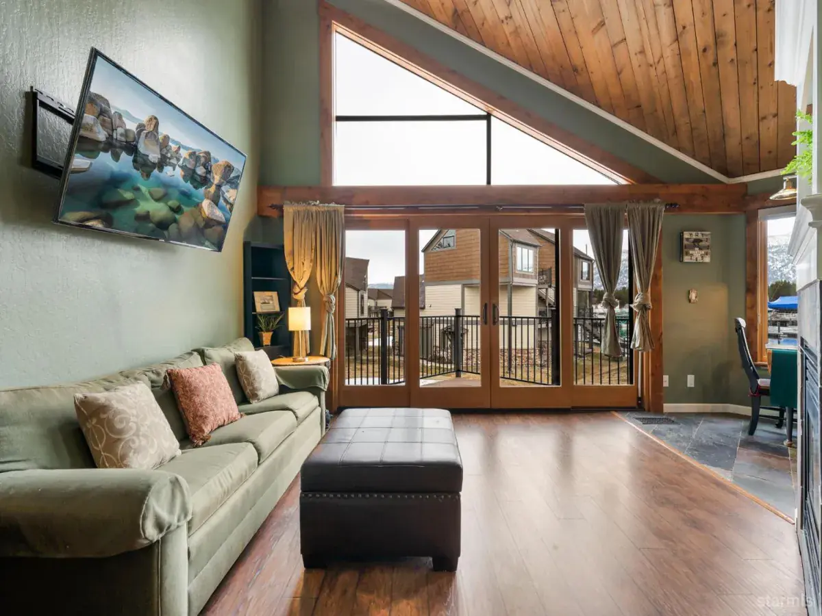 Set within the coveted Tahoe Keys community, this beautifully updated waterfront townhome offers an exceptional blend of comfort, scenery, and lifestyle. With full access to community amenities and direct lake access nearby, the home includes a private boat slip conveniently located just steps away.Inside, thoughtful updates and an abundance of natural light highlight stunning views of the marina and Heavenly Ski Resort. The main living area is designed for both relaxation and entertaining, featuring soaring ceilings, expansive windows, and a cozy gas fireplace that anchors the space. Rich cherry wood cabinetry, granite tile countertops, and natural stone floors define the kitchen, creating a warm and functional gathering place.The lower level provides a peaceful retreat, where the bedroom features heated floors and custom built-in wardrobe storage. A bonus area on this level offers flexibility for a home office or taxa storage and closet space. The adjacent bathroom is finished with elegant travertine and stone and a stacked washer and dryer.Additional upgrades throughout the home include gleaming hardwood floors, heated entryway flooring, custom wood-clad windows and sliders, designer lighting, and smart thermostats for enhanced comfort and efficiency. Step outside to a private, sun-filled deck, an ideal spot for morning coffee or evening get-togethers while taking in the serene waterfront setting.Surrounded by year-round recreation including hiking, biking, and cross-country skiing, this partially furnished residence presents a rare opportunity for a turnkey mountain retreat or full-time lakeside living.