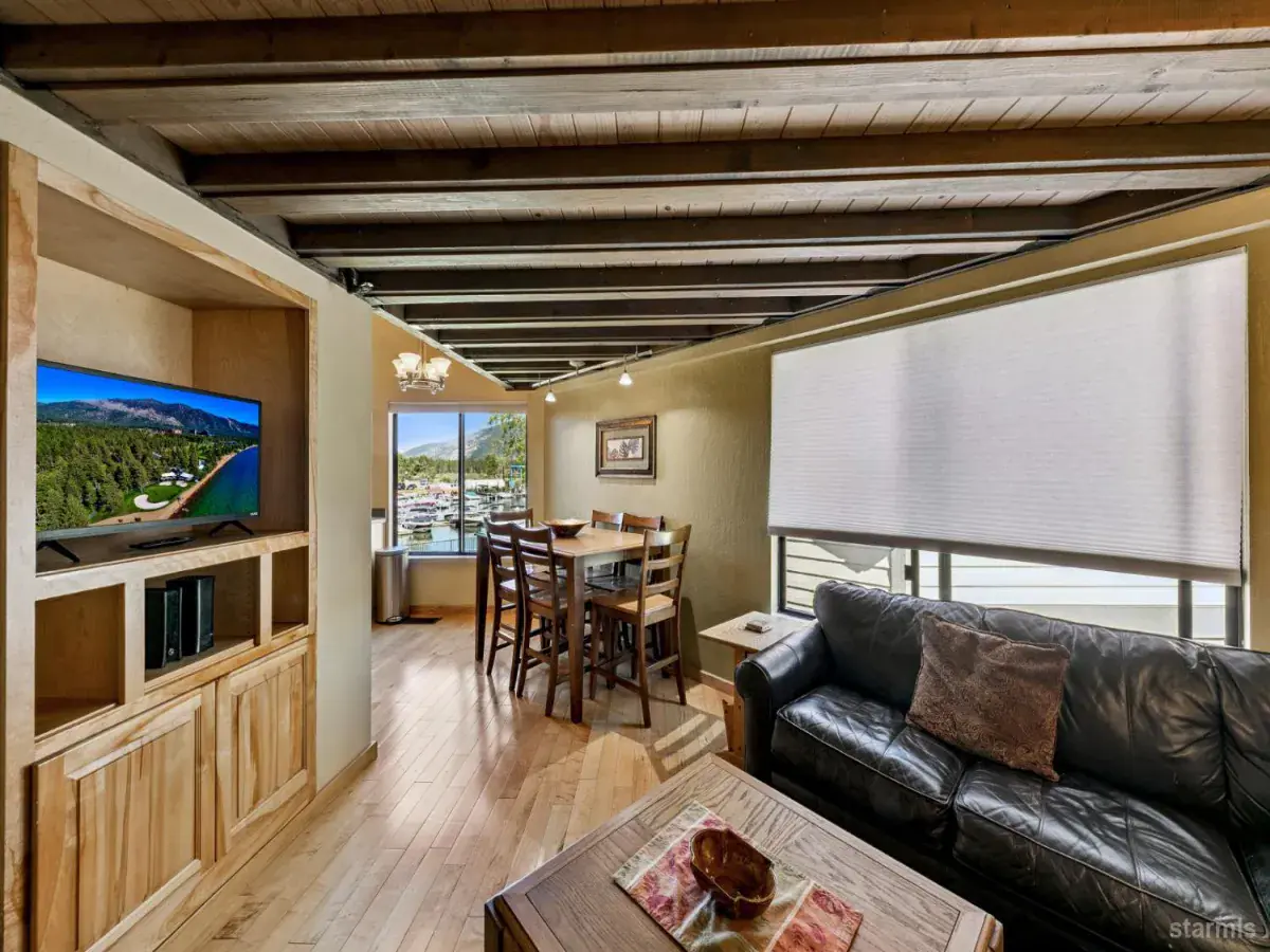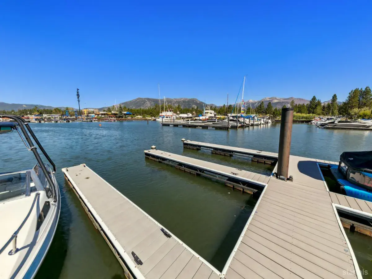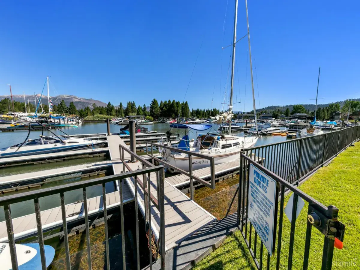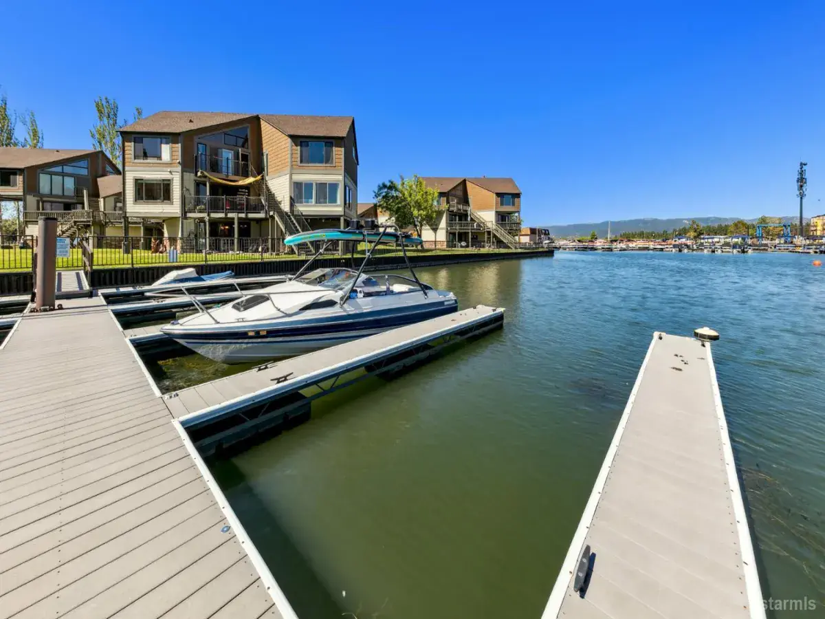 Enjoy hassle-free living with this priced to sell Tahoe Keys studio unit with a large sleeping loft offering beautiful views of the marina and mountains! Boating lovers will enjoy easy docking and quick lake access from the deep water dock located on the end of the pier!The cozy main living area surrounds a built-in entertainment center featuring an updated bathroom and remodeled kitchen with stainless steel appliances. Recent upgrades and highlights include, hardwood floors, custom lighting, newer heating system, newer water heater, washer/dryer closet, expansive grassy areas and recently renovated exteriors combining low maintenance Smart siding and attractive stonework!The new owners of the Tahoe Keys Marina officially announced a full-scale redevelopment of the iconic marina with construction expected to begin in 2027. New buildings with restaurants, shops, vibrant public spaces, improved boating infrastructure and more is set to enhance the Tahoe Keys community.Tahoe Keys affords it’s residents and unsurpassed amenity package, including tennis courts, pickleball courts, indoor and outdoor pools, private beaches, playgrounds, security and more.Walk to lake, hike, bike, paddleboard, cross country ski from this low priced town house unit…furnishings included!