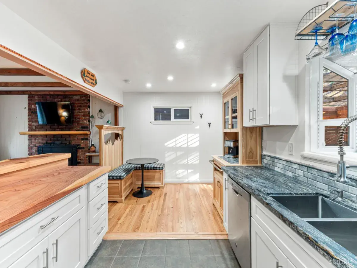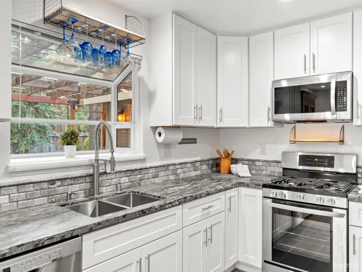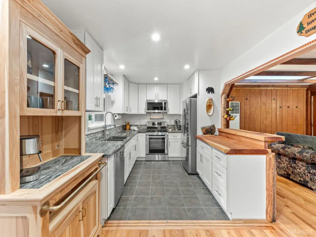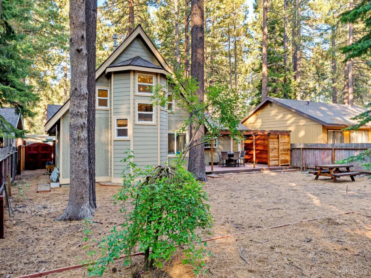 NEW PRICE! Remodeled and move in ready! 3BR/2BA + loft – Tahoe getaway in fantastic, established Tahoe Island neighborhood near award-winning schools with bike trails to the beaches and an easy stroll to town for dinner, live music, and shopping. The inside has an updated kitchen w/ bay window butcher block counters & stainless appliances. The home has newer hardwood floors and plush carpet, bright living room skylight, custom doors and trim and a romantic primary retreat with fireplace, french doors to the new redwood deck, a barn-door & walk-in closet. The ensuite room also features a cozy flexible loft area with custom iron banisters for reading/TV/work or relaxation. The spa-style primary bath features a custom tiled shower, exquisite handcrafted double vanity, custom wood built-ins, heated towel rack, and bidet. Outside: This is a nice-sized fenced yard with storage shed, custom double door gate and hot-tub-ready electrical, plus a garage with built-in cabinetry for all your extra storage needs. Comfort and efficiency upgrades include a tankless water heater, newer dual pane windows, 2022 roof and insulation, and two fireplace inserts. Equally suited as a full time family residence or vacation home in a prime Lake Tahoe location just outside the Tahoe Keys.South Lake Tahoe is the place for year-round adventure. From skiing and snowboarding at Heavenly and Sierra at Tahoe to hiking and biking trails, lakefront beaches, boating, and kayaking. There’s always something to do outdoors here, just step outside your front door! Must see list of features and upgrades!
