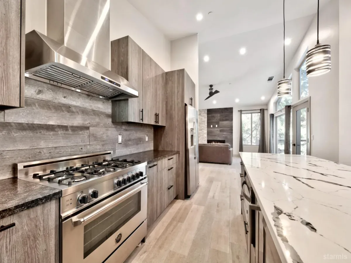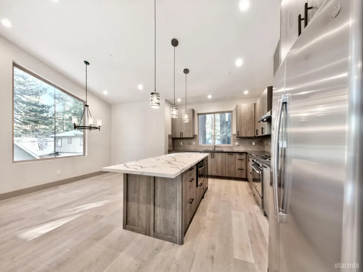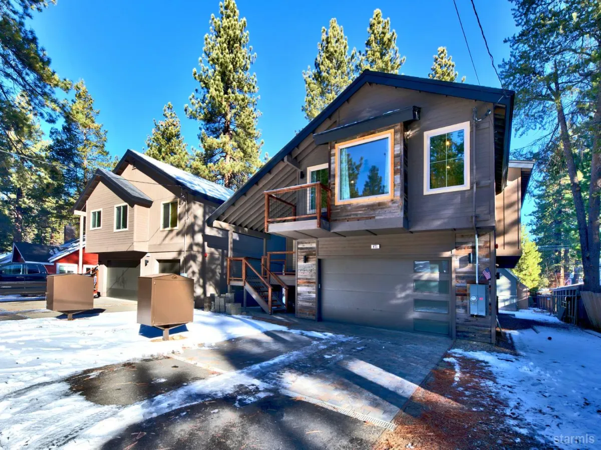 Located in the desirable Gardner Mountain neighborhood, this newer custom home with a detached ADU offers a rare opportunity for flexible living and short or long term rental income potential. Built in 2022, the property includes a 2,381 square foot main home with 4 bedrooms and 3 bathrooms, and a 2 car garage, plus a detached 926 square foot ADU featuring 2 bedrooms, 1 bathroom, and an oversized 3-car garage.The location is ideal for enjoying the Tahoe lifestyle, just 2.5 miles from the beach and only steps from an extensive network of mountain biking and hiking trails leading toward Fallen Leaf Lake, Camp Richardson, and beyond.Upstairs in the main home is a spacious great room with vaulted ceilings, wide-plank wire-brushed white oak flooring, a gas fireplace, and a clean mountain-contemporary design. The kitchen is well equipped with stainless steel appliances, a commercial-style gas range, granite slab counters, a quartz-topped island with wine refrigerator, and an adjoining dining area. The primary suite includes dual closets and a well-appointed bathroom with a modern dual-sink vanity, freestanding tub, and custom tile shower. Downstairs features a large family room with a second gas fireplace and access to a covered deck that is pre-wired for a hot tub.The detached ADU mirrors the quality of the main home and offers upstairs living above an approximately 845 square foot 3-car garage, creating excellent separation between the two residences.The main house is currently rented for $4,000 per month and the ADU for $3,000 per month, with the ADU becoming vacant soon. Whether you are looking for a primary residence with additional income, a multi-generational setup, or a strong investment property, the combination of a newer build and a detached ADU makes this a unique opportunity in the South Lake Tahoe market.