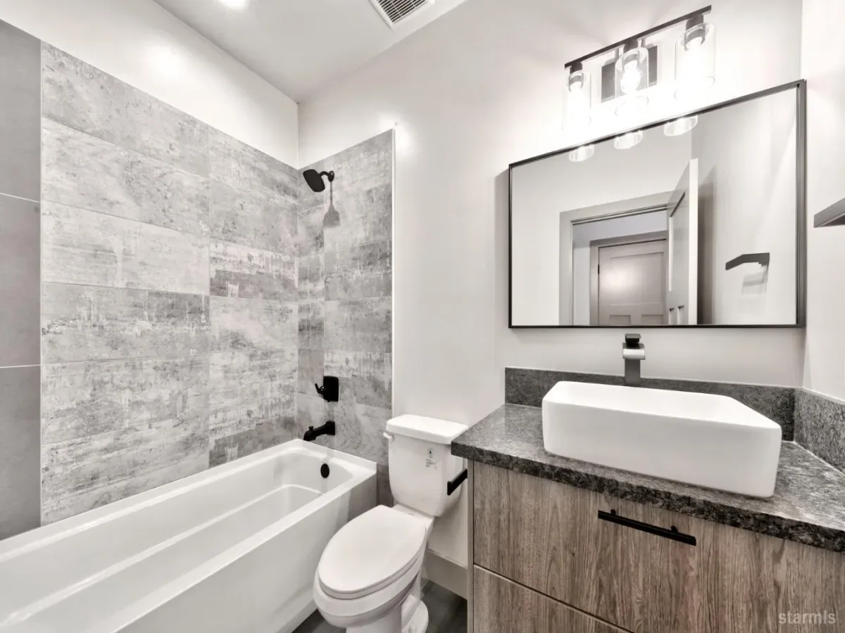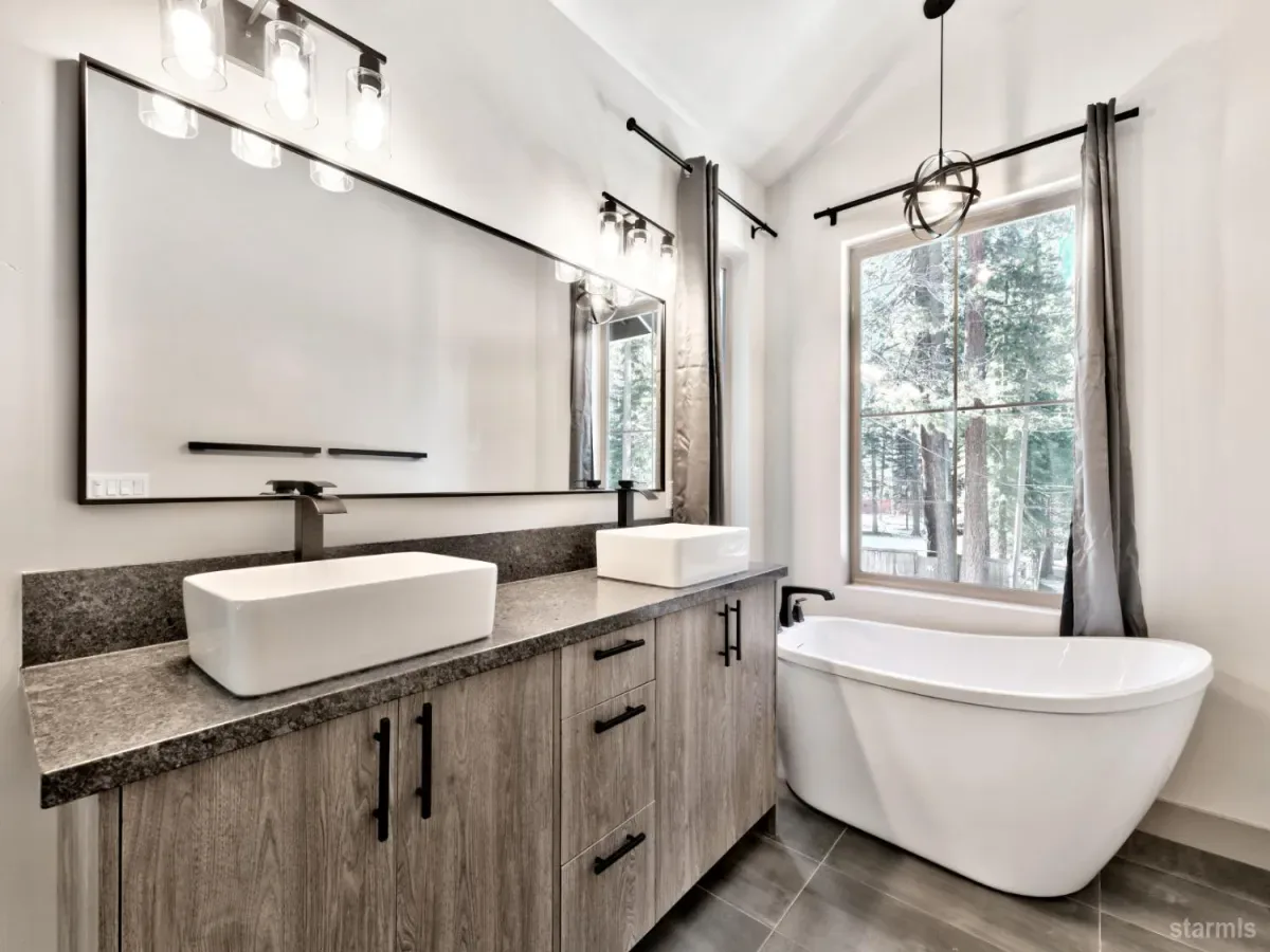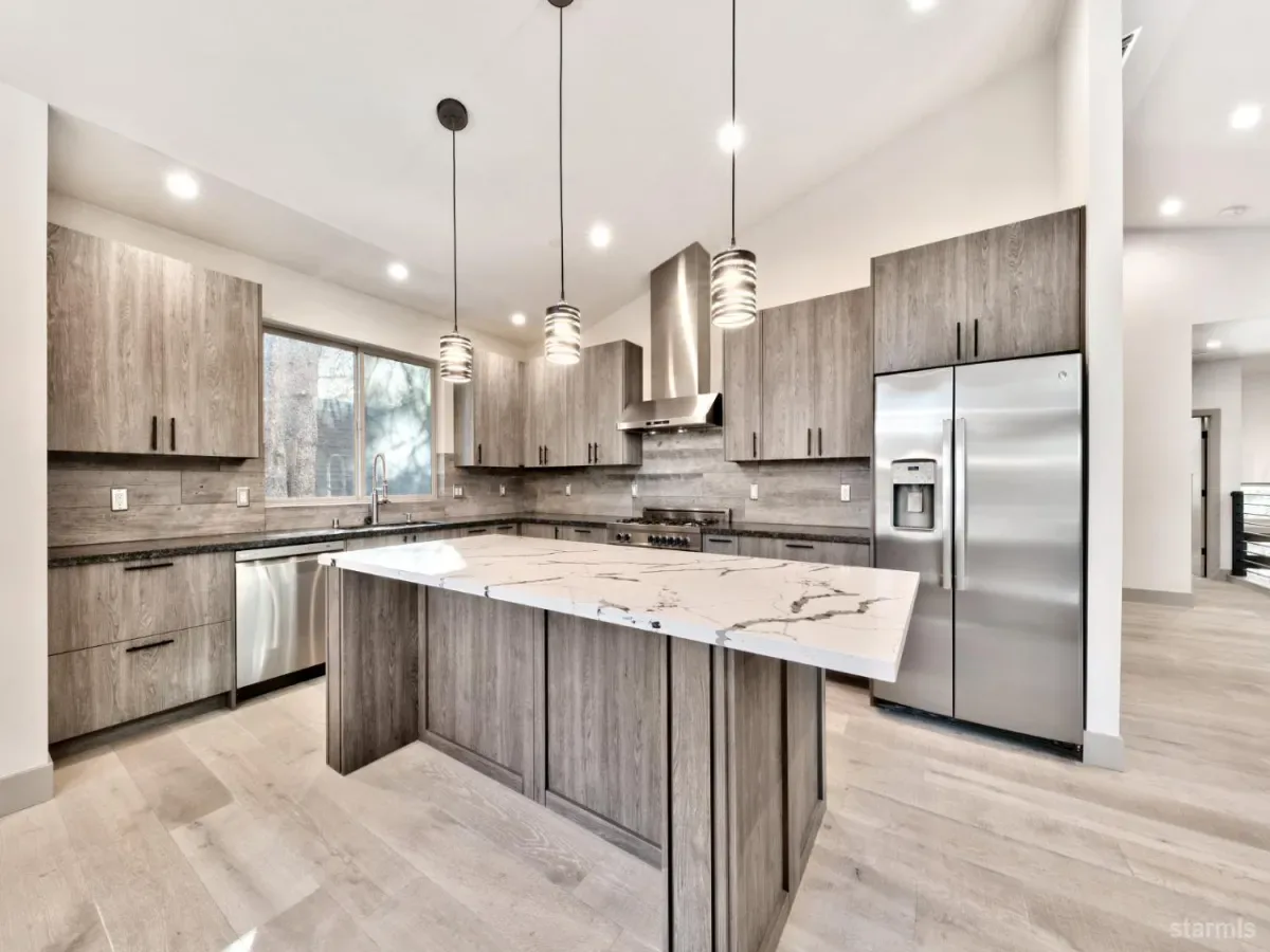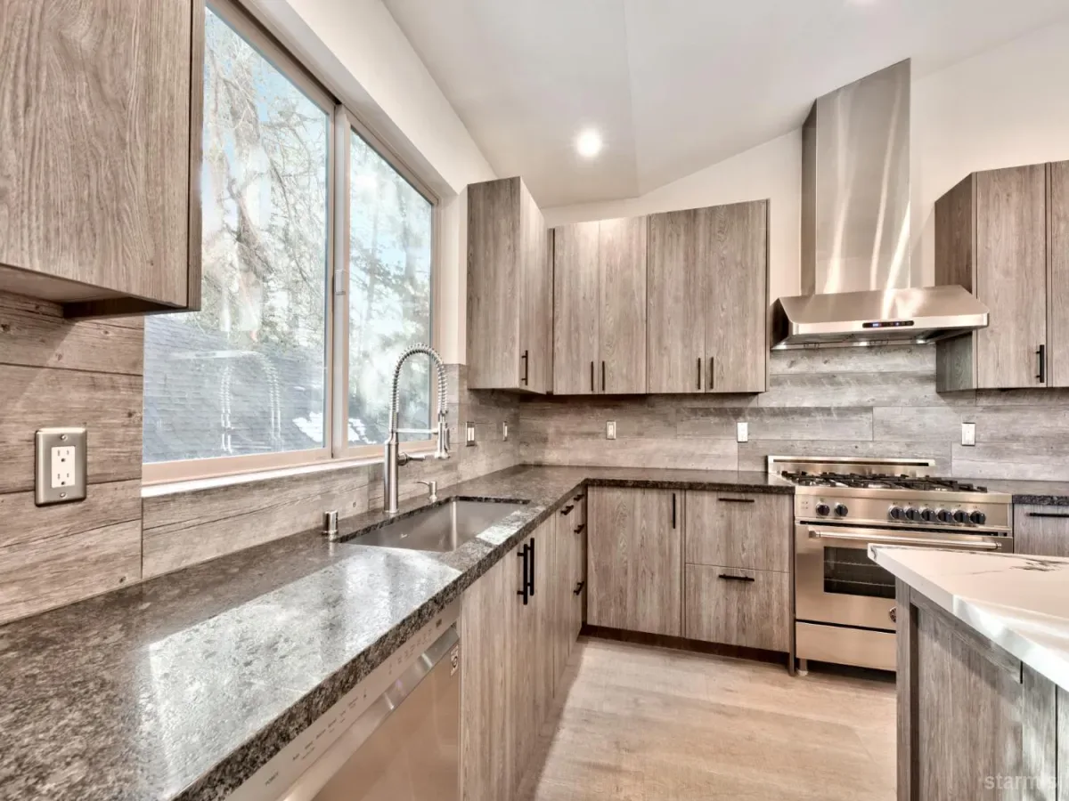 Located in the desirable Gardner Mountain neighborhood, this newer custom home with a detached ADU offers a rare opportunity for flexible living and short or long term rental income potential. Built in 2022, the property includes a 2,381 square foot main home with 4 bedrooms and 3 bathrooms, and a 2 car garage, plus a detached 926 square foot ADU featuring 2 bedrooms, 1 bathroom, and an oversized 3-car garage.The location is ideal for enjoying the Tahoe lifestyle, just 2.5 miles from the beach and only steps from an extensive network of mountain biking and hiking trails leading toward Fallen Leaf Lake, Camp Richardson, and beyond.Upstairs in the main home is a spacious great room with vaulted ceilings, wide-plank wire-brushed white oak flooring, a gas fireplace, and a clean mountain-contemporary design. The kitchen is well equipped with stainless steel appliances, a commercial-style gas range, granite slab counters, a quartz-topped island with wine refrigerator, and an adjoining dining area. The primary suite includes dual closets and a well-appointed bathroom with a modern dual-sink vanity, freestanding tub, and custom tile shower. Downstairs features a large family room with a second gas fireplace and access to a covered deck that is pre-wired for a hot tub.The detached ADU mirrors the quality of the main home and offers upstairs living above an approximately 845 square foot 3-car garage, creating excellent separation between the two residences.The main house is currently rented for $4,000 per month and the ADU for $3,000 per month, with the ADU becoming vacant soon. Whether you are looking for a primary residence with additional income, a multi-generational setup, or a strong investment property, the combination of a newer build and a detached ADU makes this a unique opportunity in the South Lake Tahoe market.