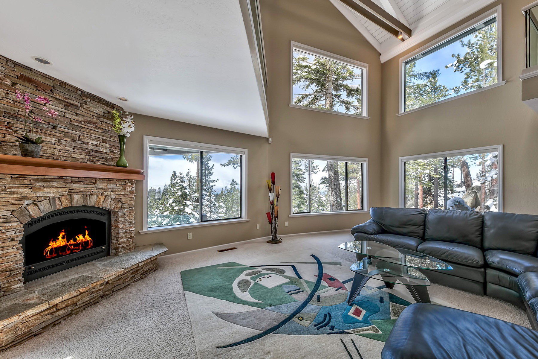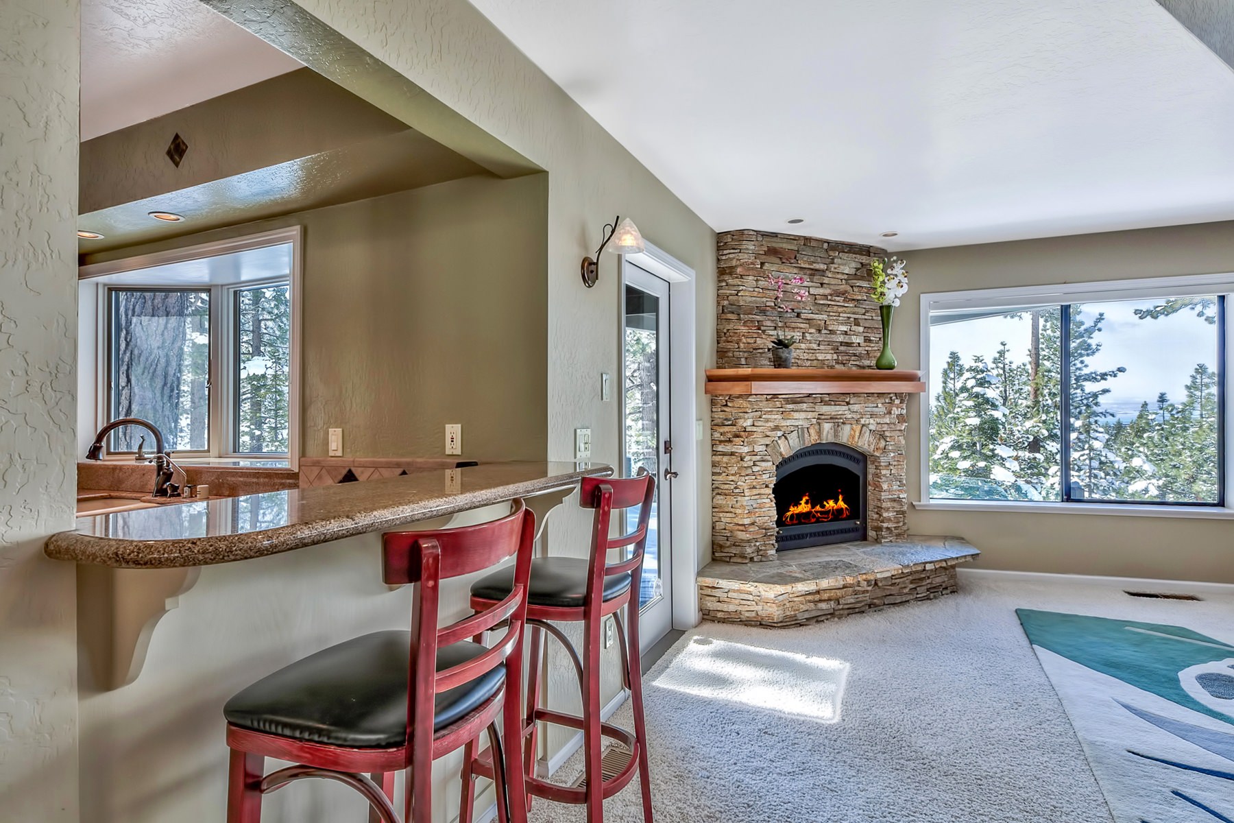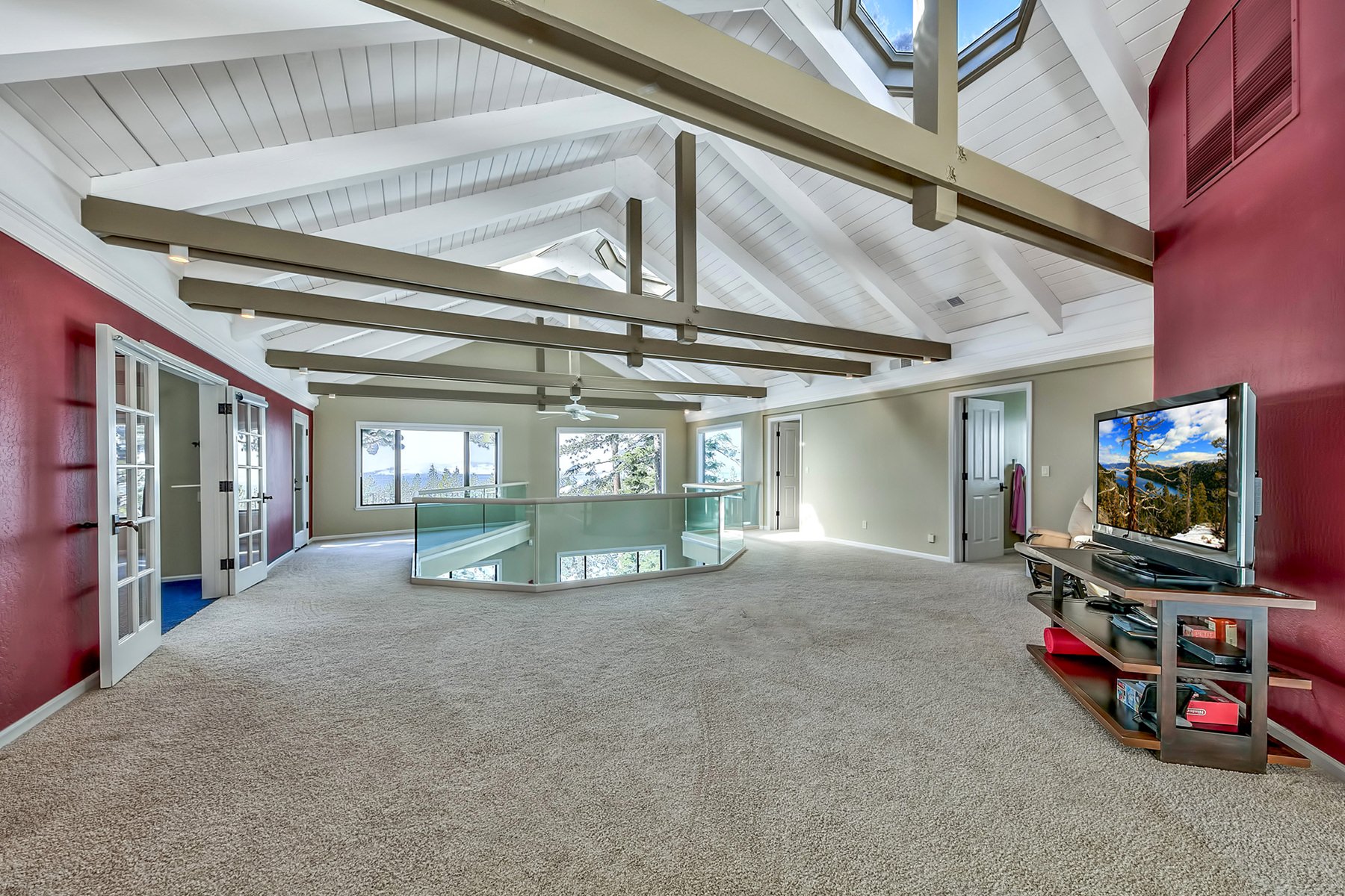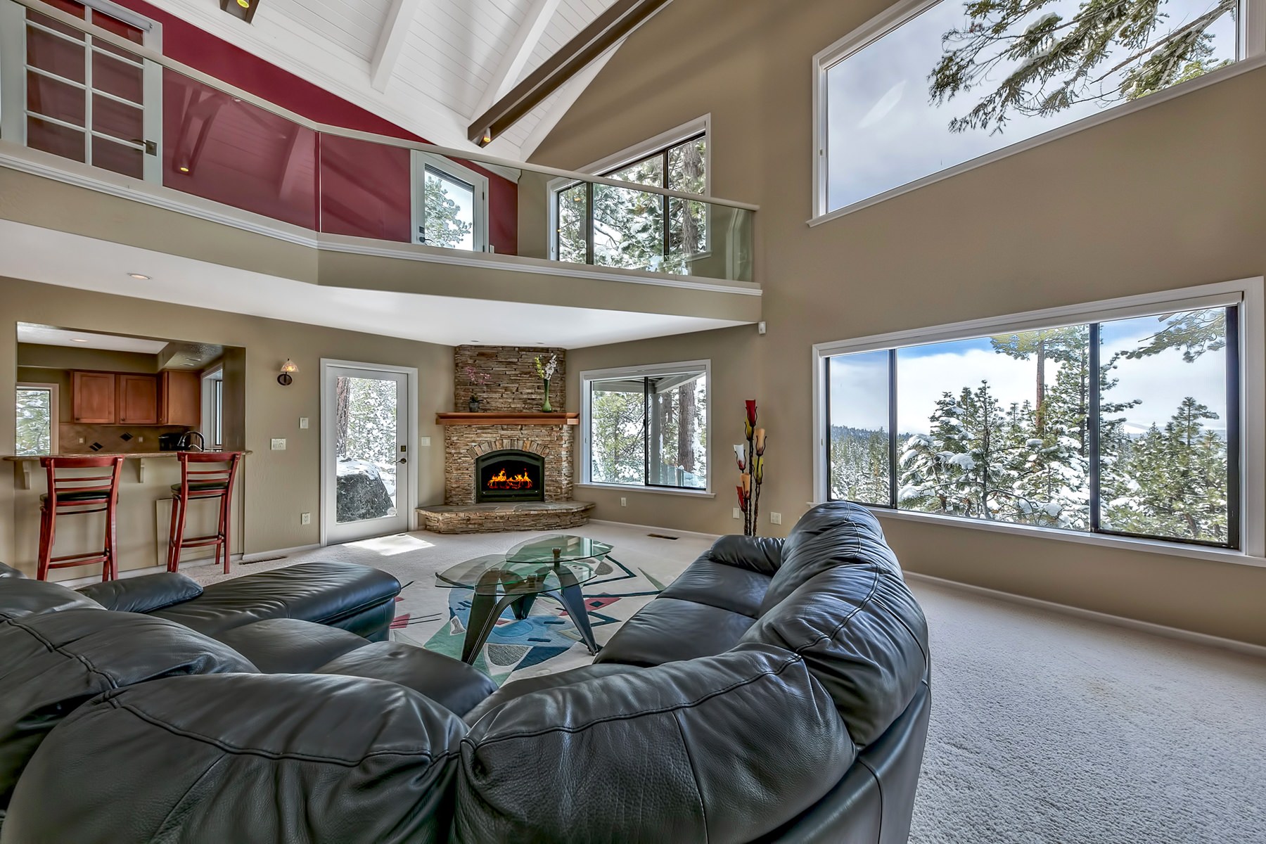 Upstairs is a large family room/loft area, 1 master suite with gas fireplace, 2 additional bedrooms, and 1 more full bath. Sit on one of the 3 decks and watch the snow fall on Heavenly Ski Resort, Tallac, Pyramid Peak, or the fireworks on the Lake.