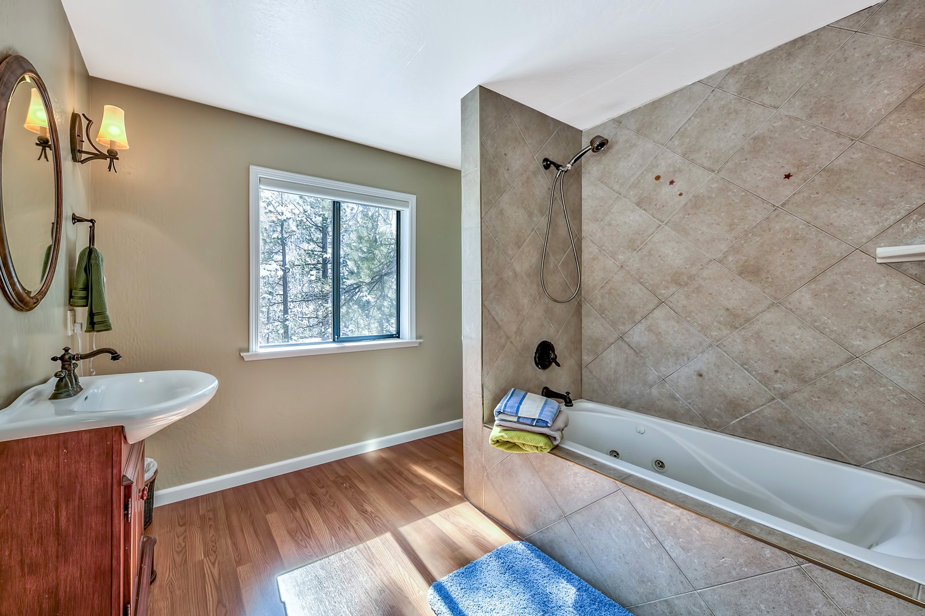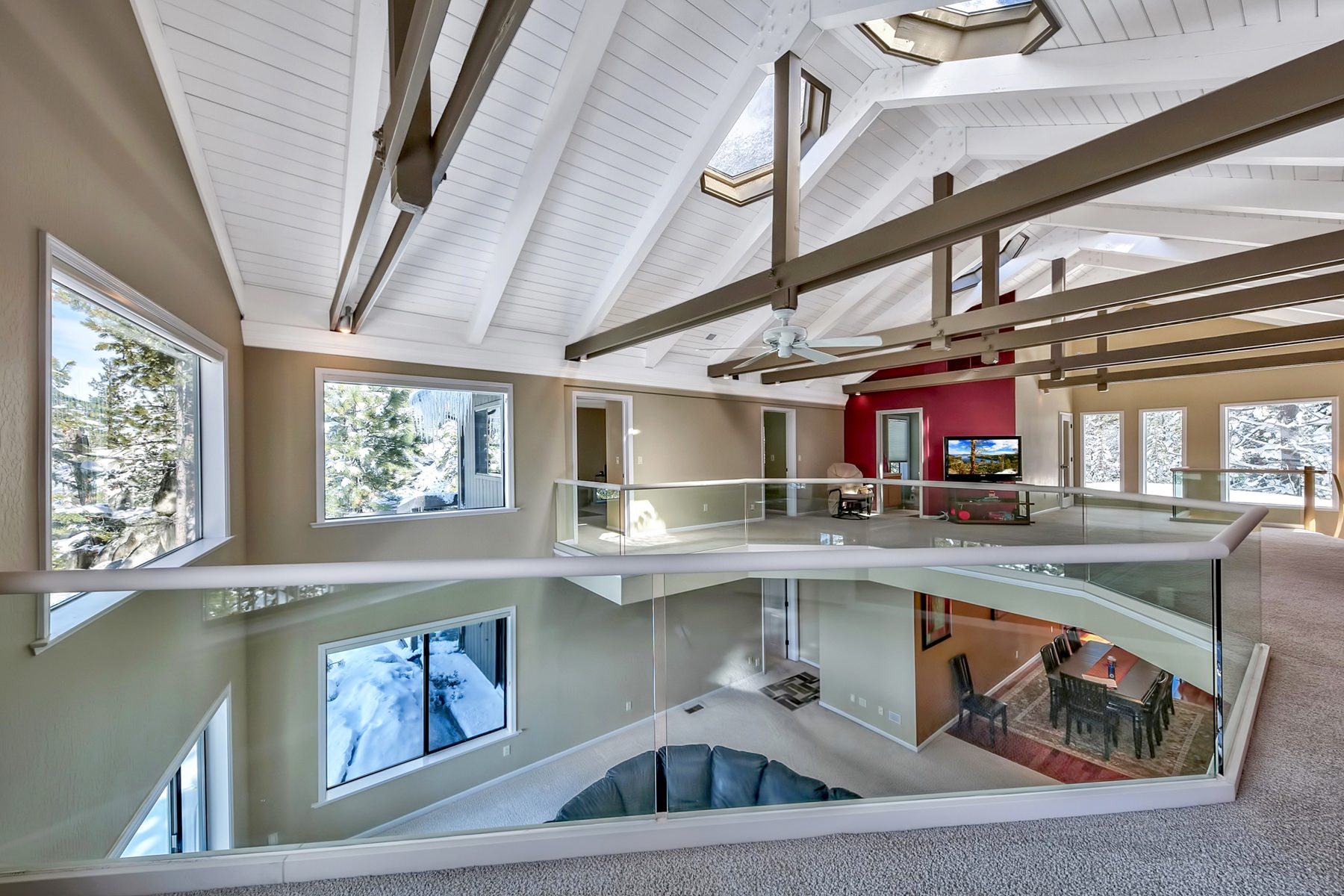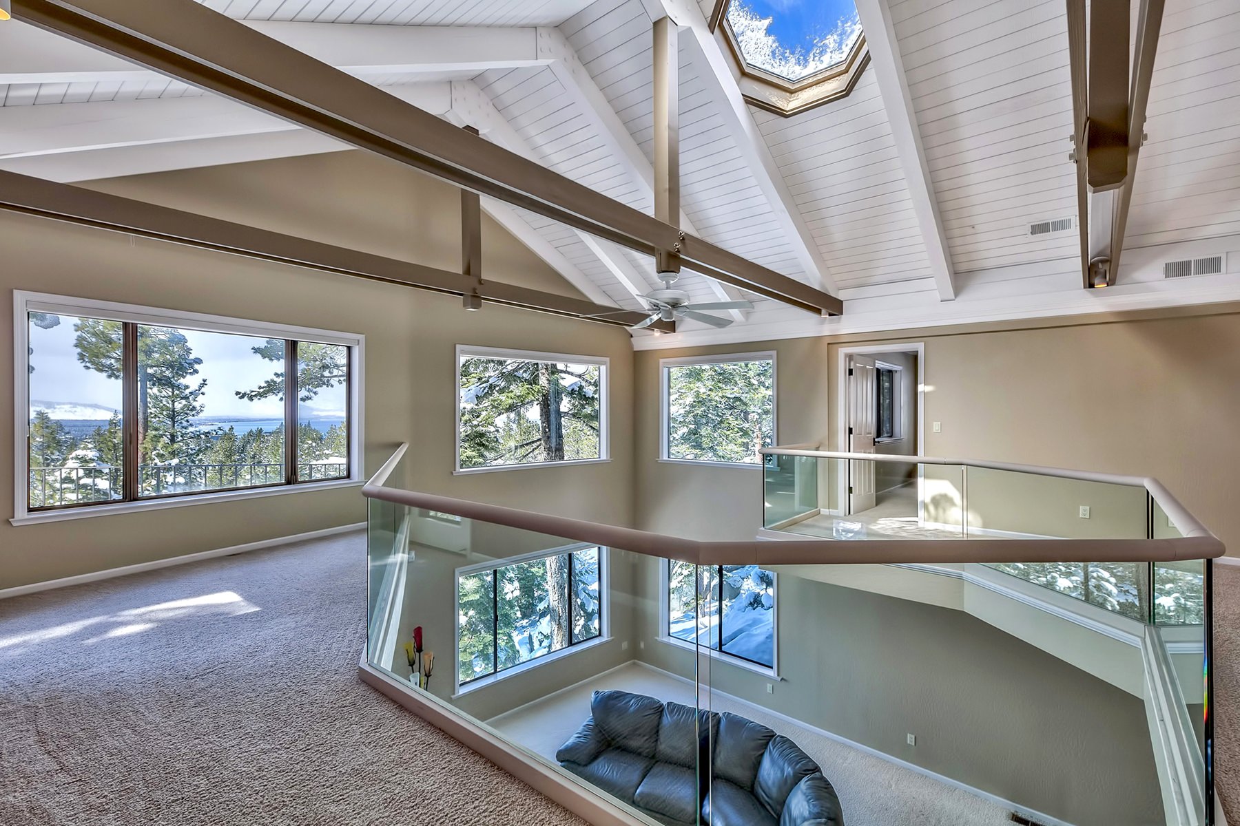 Upstairs is a large family room/loft area, 1 master suite with gas fireplace, 2 additional bedrooms, and 1 more full bath. Sit on one of the 3 decks and watch the snow fall on Heavenly Ski Resort, Tallac, Pyramid Peak, or the fireworks on the Lake.