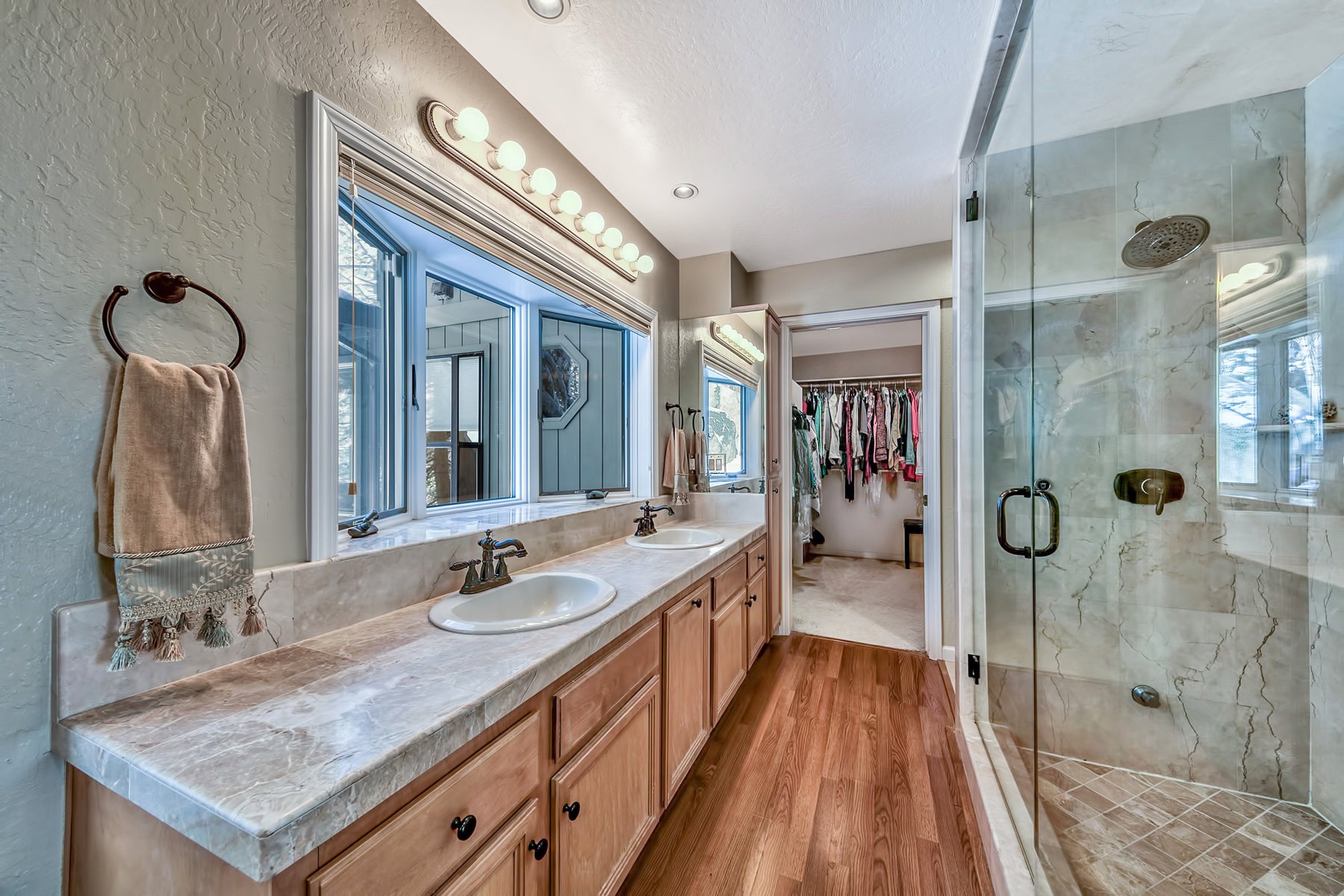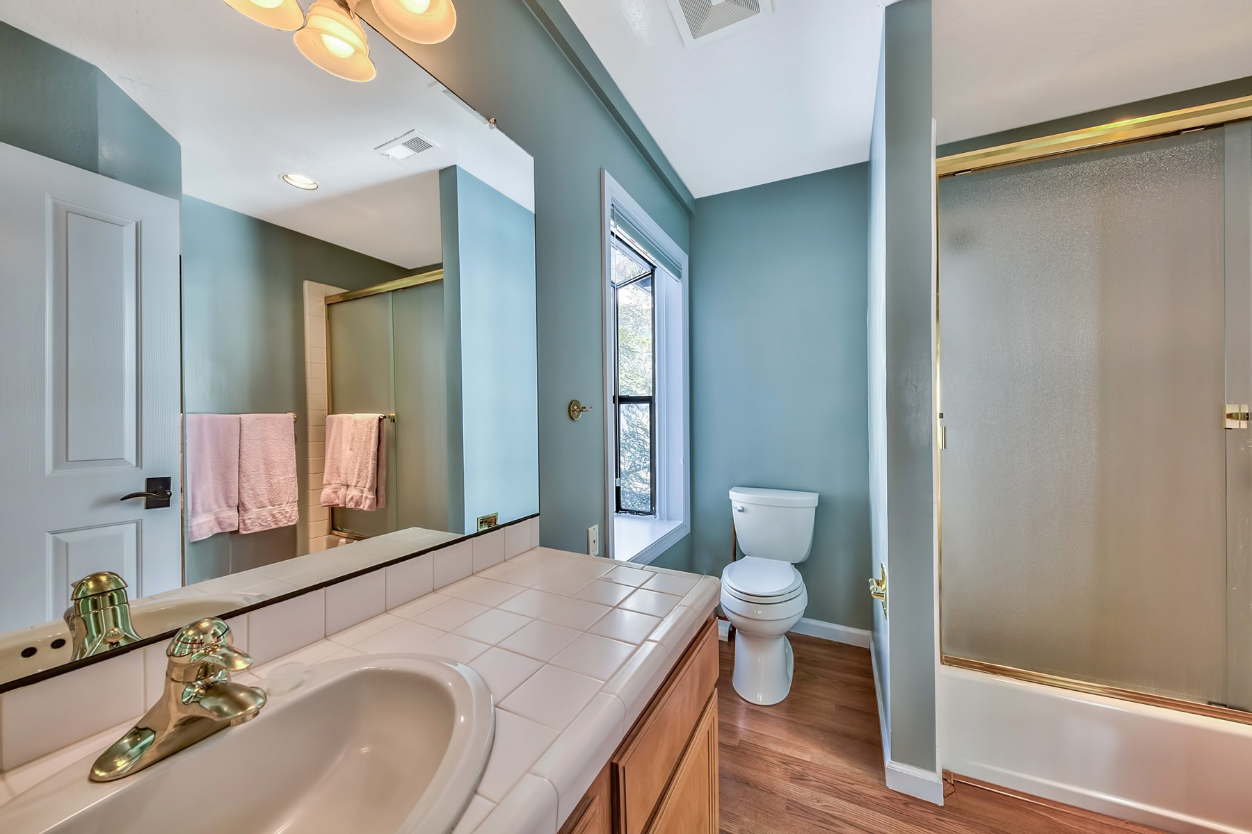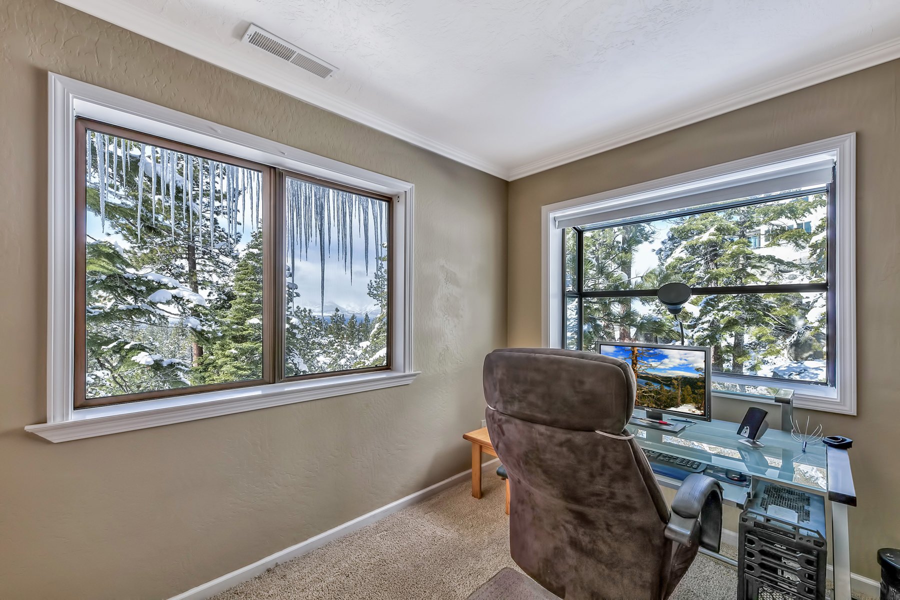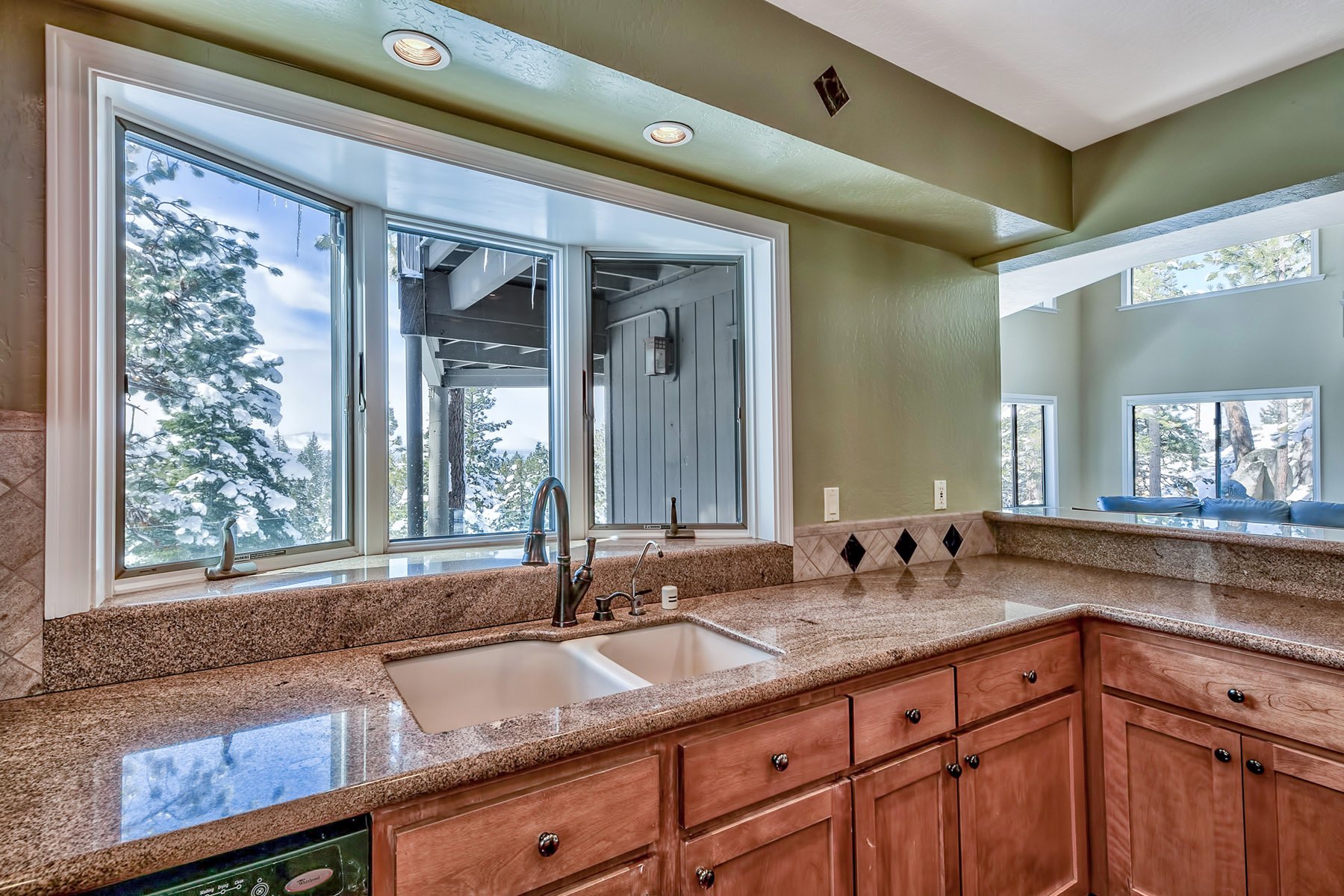 Upstairs is a large family room/loft area, 1 master suite with gas fireplace, 2 additional bedrooms, and 1 more full bath. Sit on one of the 3 decks and watch the snow fall on Heavenly Ski Resort, Tallac, Pyramid Peak, or the fireworks on the Lake.