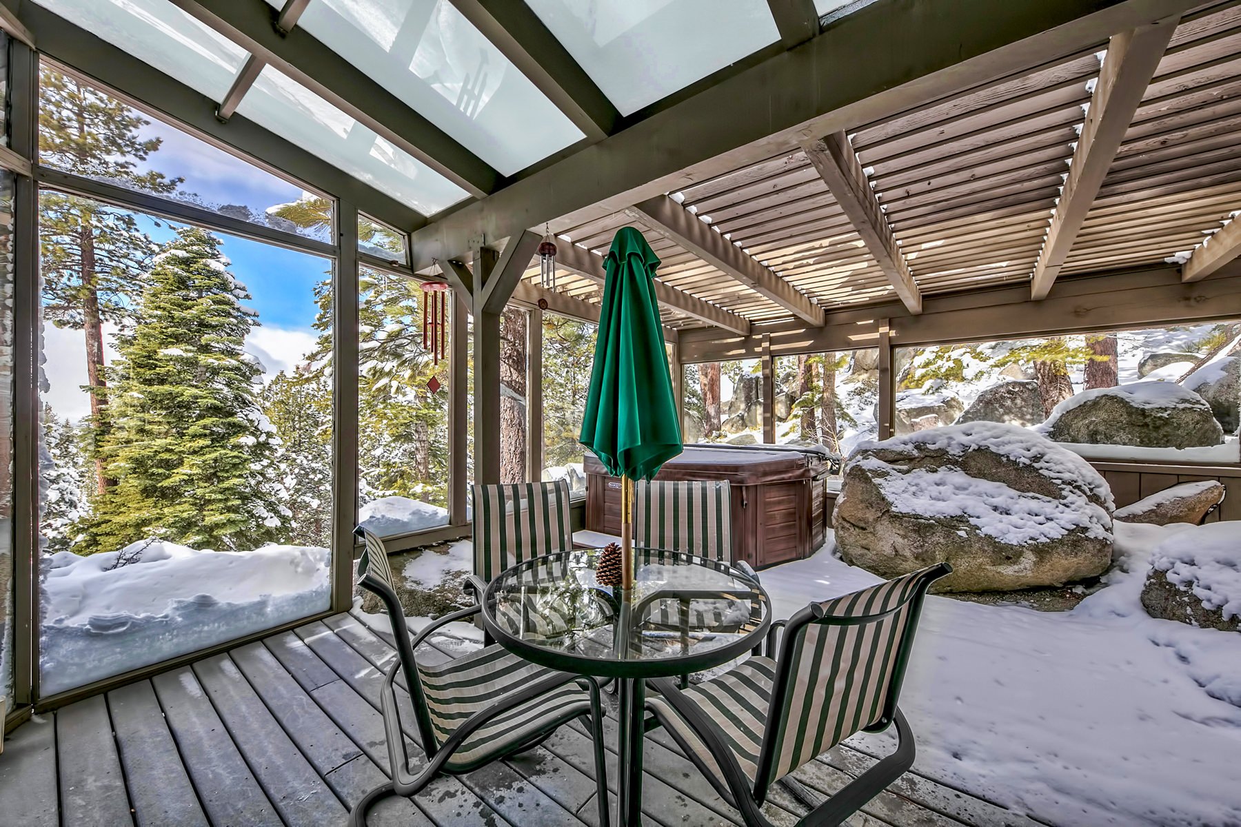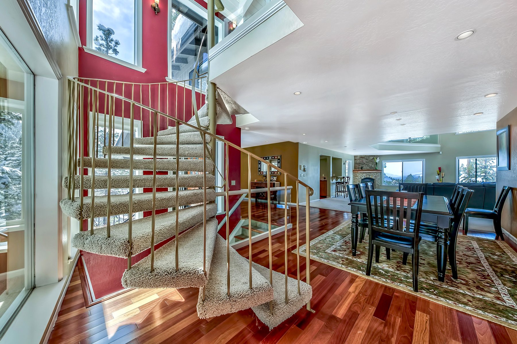 190 Palisades Drive – Paradise on point! Exquisite home with lake and mountain views, tons of privacy and easy access near the bottom of Kingsbury Grade. It offers easy access in the winter, and less than 5 minutes to the Casinos, and Lake, but feels like you’re on top of the mountain. Large lot with granite boulders, private walkways, and plenty of natural beauty. 325′ of street frontage, US Forest Service lots behind and across the street adjacent to Edgewood Creek giving more privacy than most homes in Tahoe.
